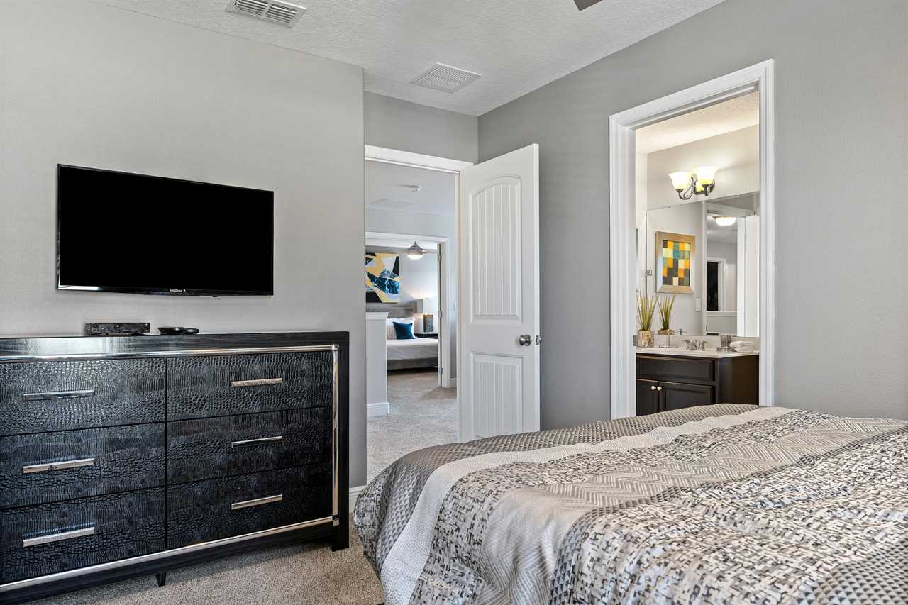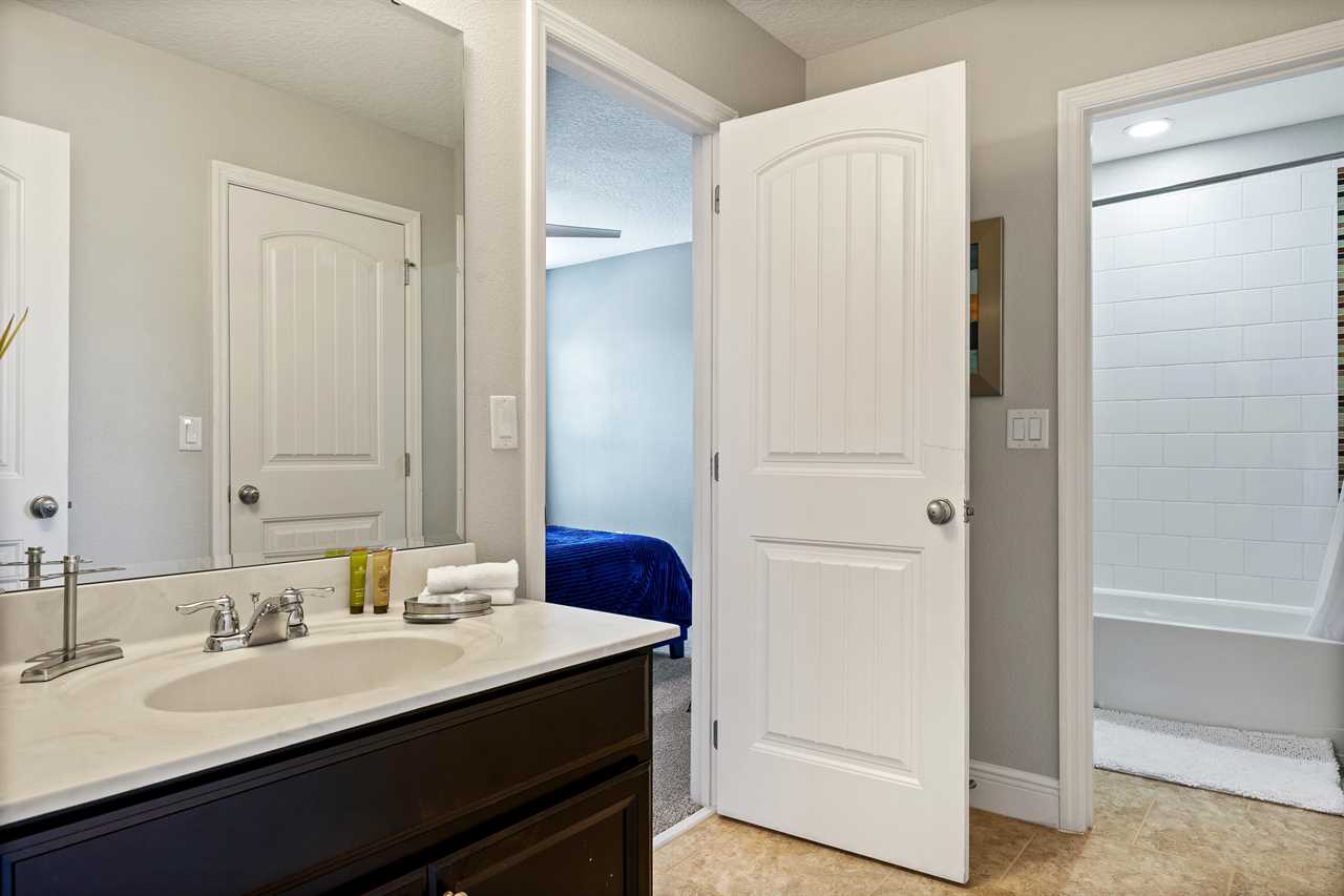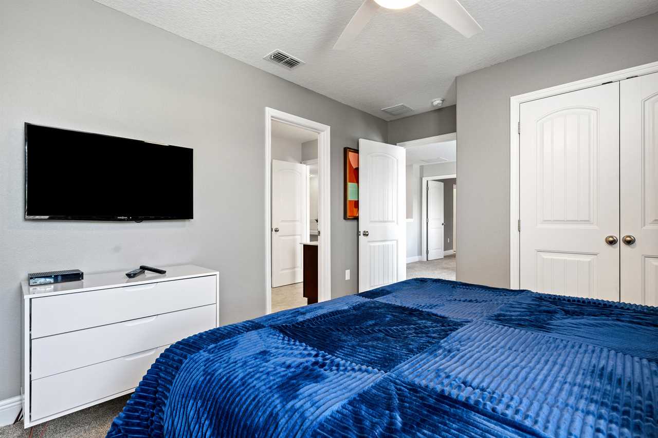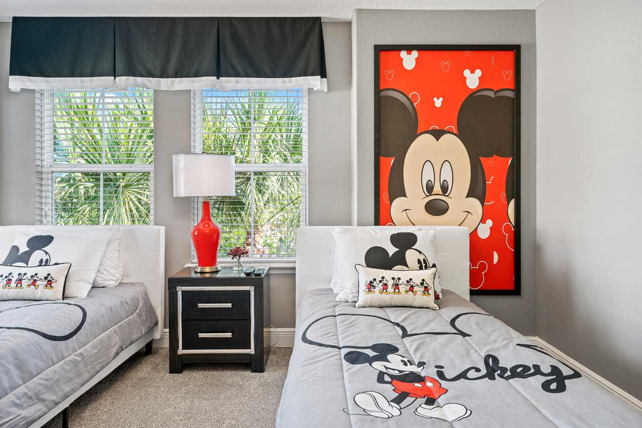 Every bedroom has its own TV so you can retire to your own favorite movie at the end of the day. The kids will love the themed bedrooms, each with two twin-sized beds. One bedroom has a space décor and the other is themed with a couple of our favorite cartoon characters. Special lighting in the space room projects the stars and constellations on the ceiling for an intergalactic effect.