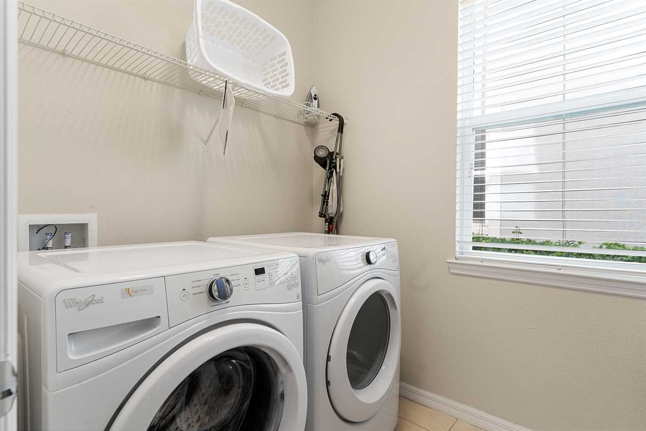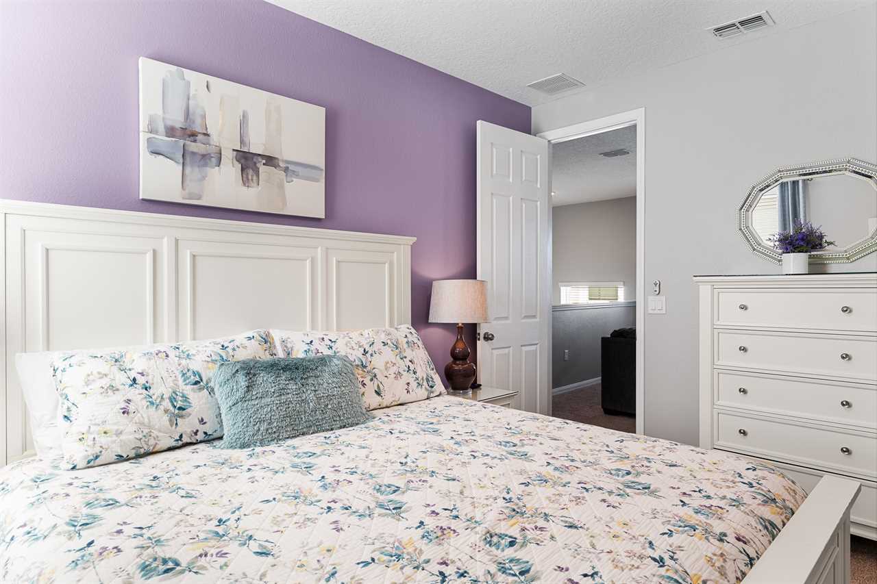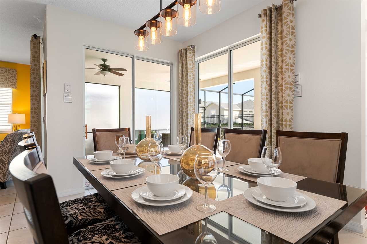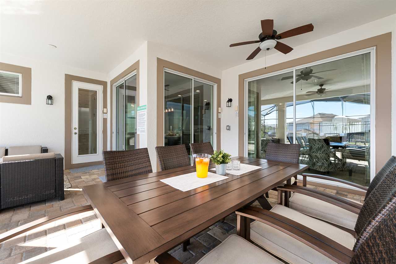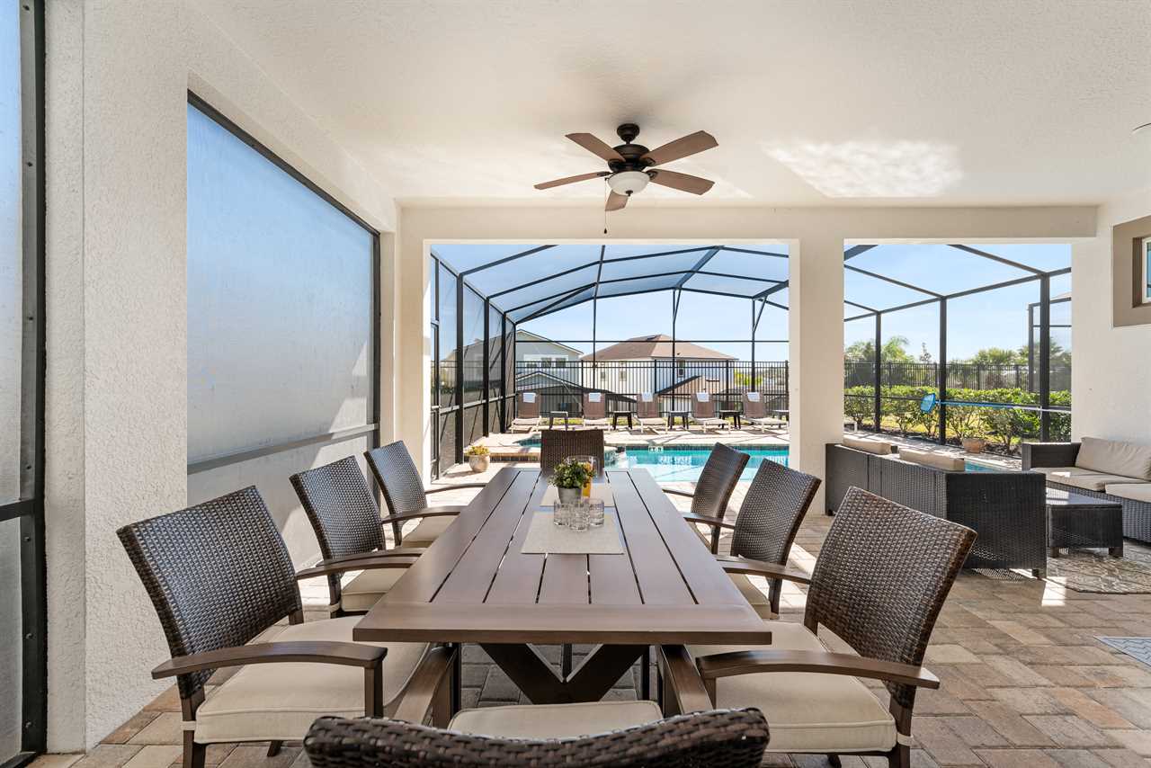 If you love spending time poolside, this is the home for you! The entire lanai and oversized pool deck area are screened in to let the sun in while keeping bugs out. There are plenty of sun loungers to go around, and if you prefer the shade, there is a lounge area in the lanai with plenty of seating. There is also a dining table for 8 where you can enjoy meals al fresco. The spillover spa is a perfect place to relax in the cool evening after adventuring the Orlando theme parks.