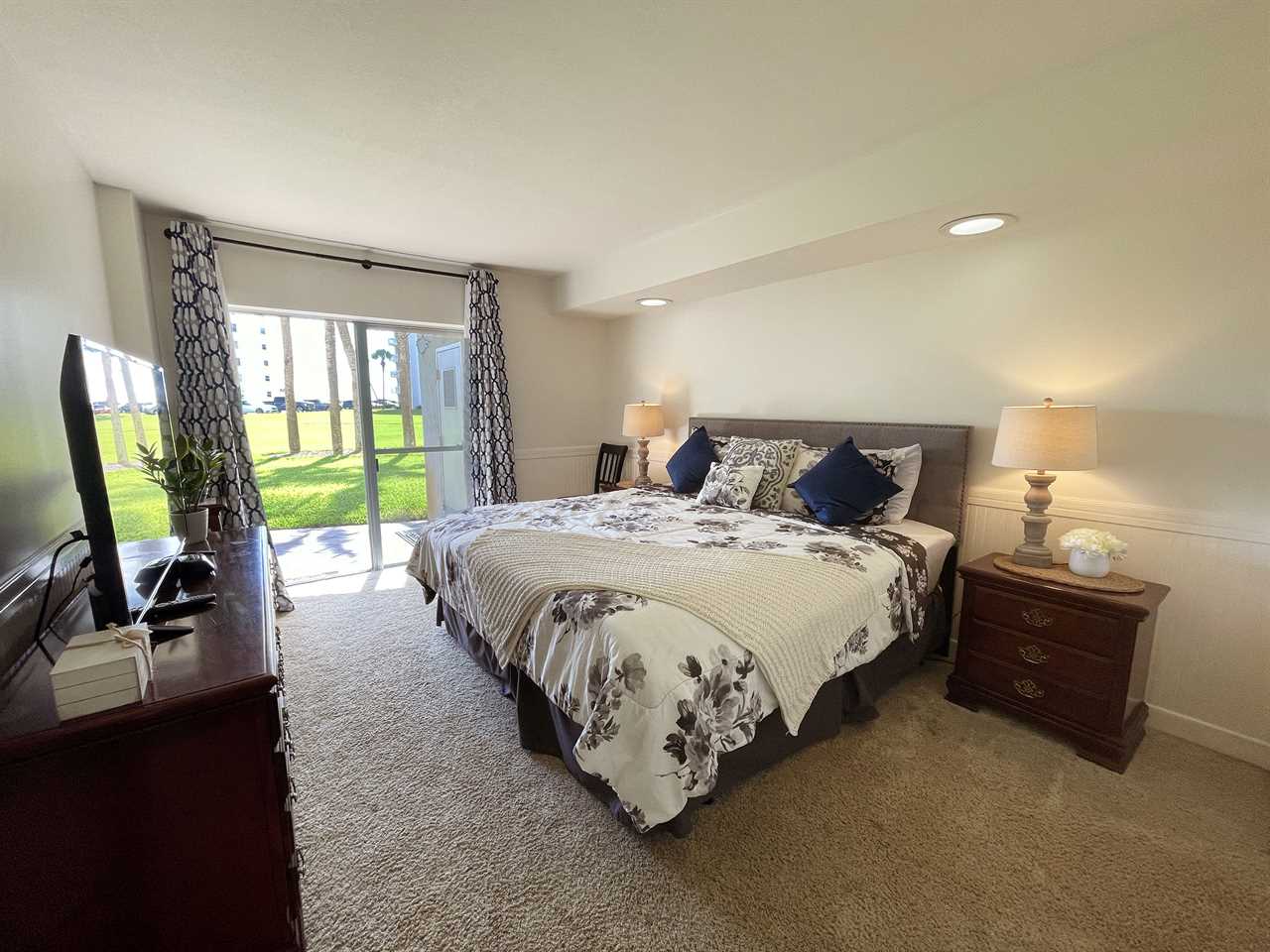 Great first floor unit in building one. This one bedroom unit is centrally located between all the great amenities El Matador has to offer. Patio looks out over the large grassy area of El Matador and is just a very short walk to the beach. Unit is fully furnished with everything you need to enjoy your vacation at the beach. Kitchen is fully furnished enabling you to create a great meal when you don't feel like eating out. Bedroom has a king size bed with access to the patio and a stand up shower in the bathroom.