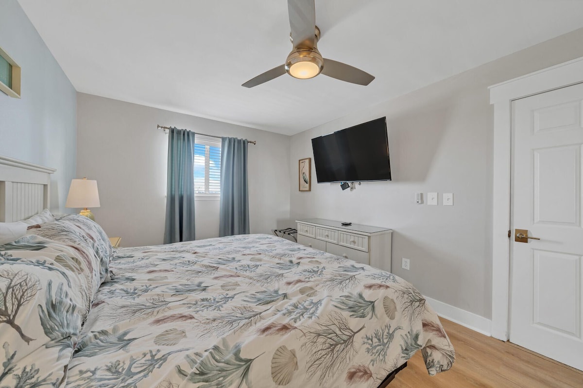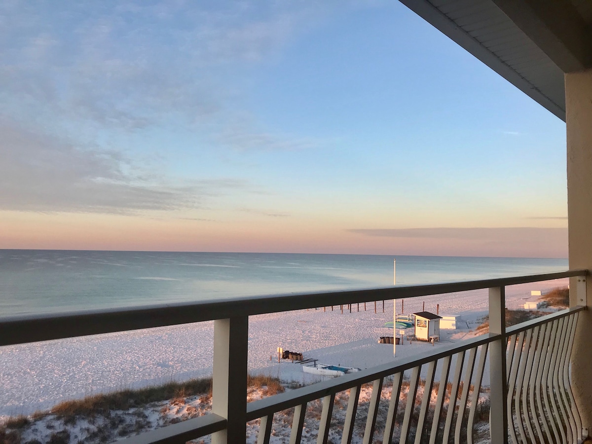 1072 sqft Crystal Sands Condo 309B is one of the largest units with its loft in the complex. No streets to cross, you're right on the beach with free parking, heated pool and free beach service (March-October). Enjoy the beach and the pool during the day, followed by a nice walk in the Beautiful Crystal Beach area on Scenic-98 with sidewalks! Walk to Camille for coffee and more. This beachfront condo sleeps 8 on 2 King size beds plus 2 Twin Trundle beds !