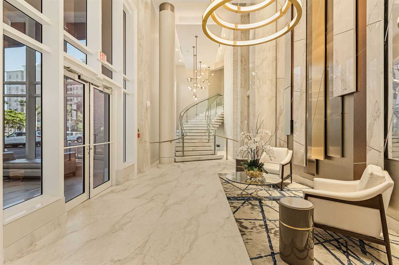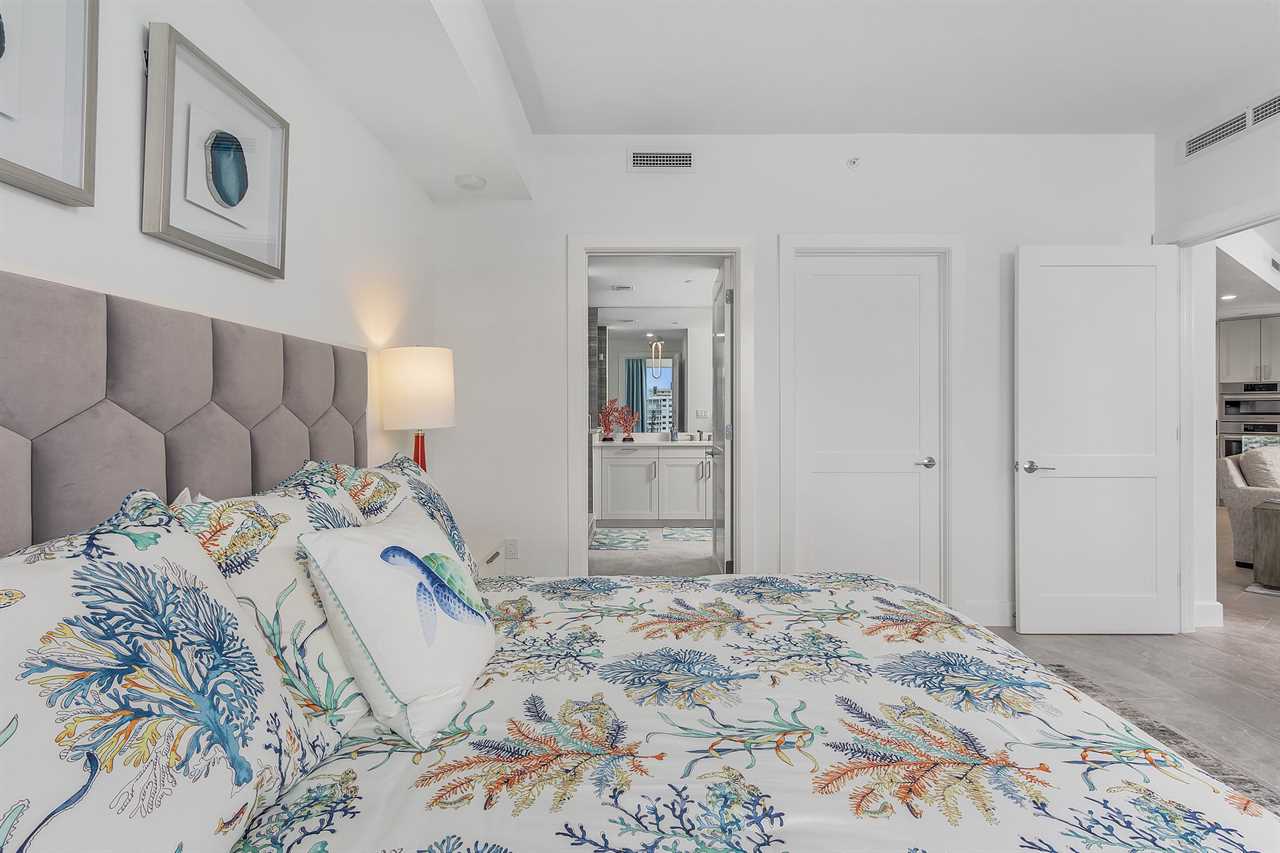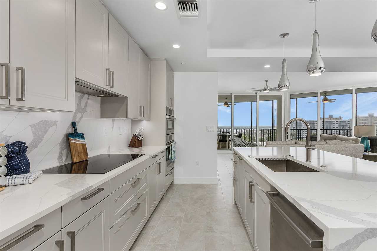 Upon entering the unit, guests are greeted by a kitchen that is both functional and aesthetically pleasing. Adorned with beautiful marble countertops and a spacious island, the kitchen is a chef's delight. Equipped with brand-new appliances, it offers a seamless blend of style and functionality. The adjacent living room is a haven of comfort, featuring plush furnishings and an inviting ambiance. The living area opens up to a private balcony, providing a front-row seat to breathtaking views of the bay.