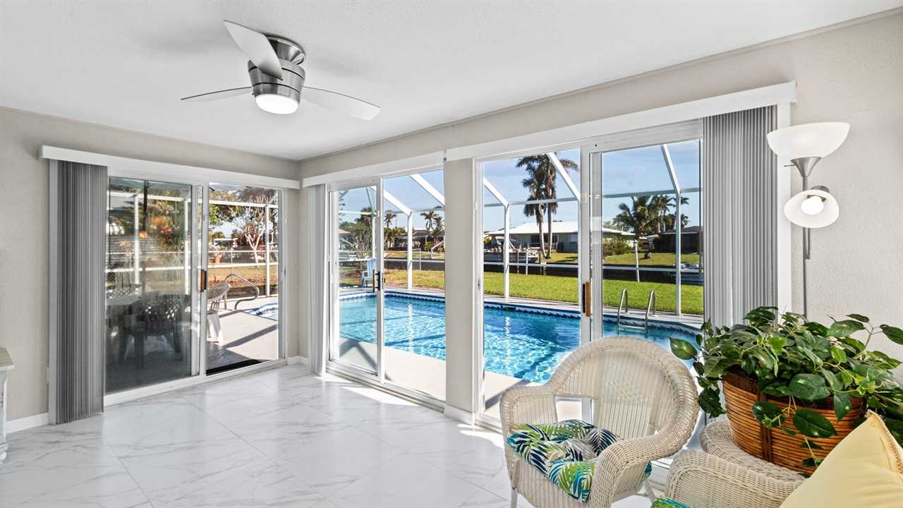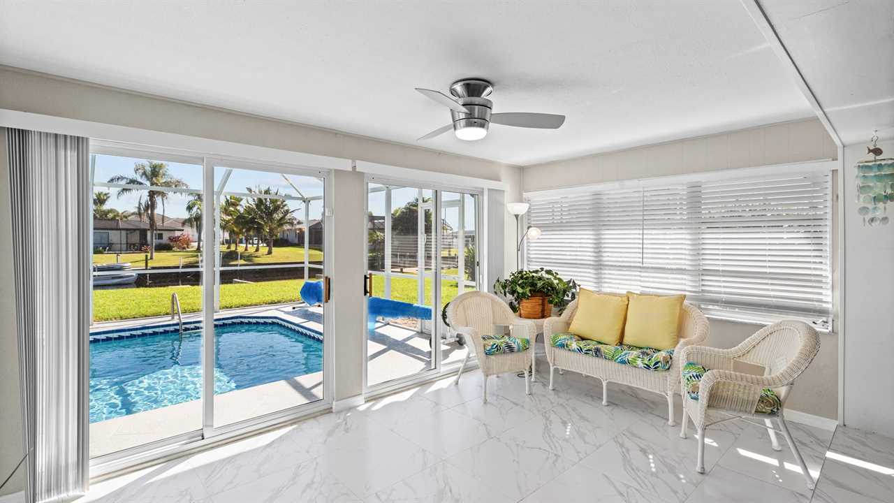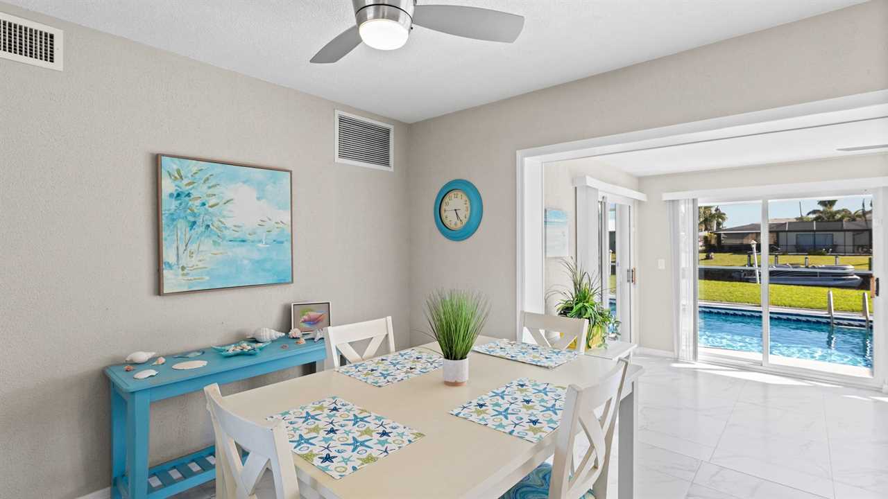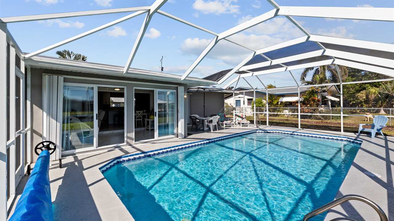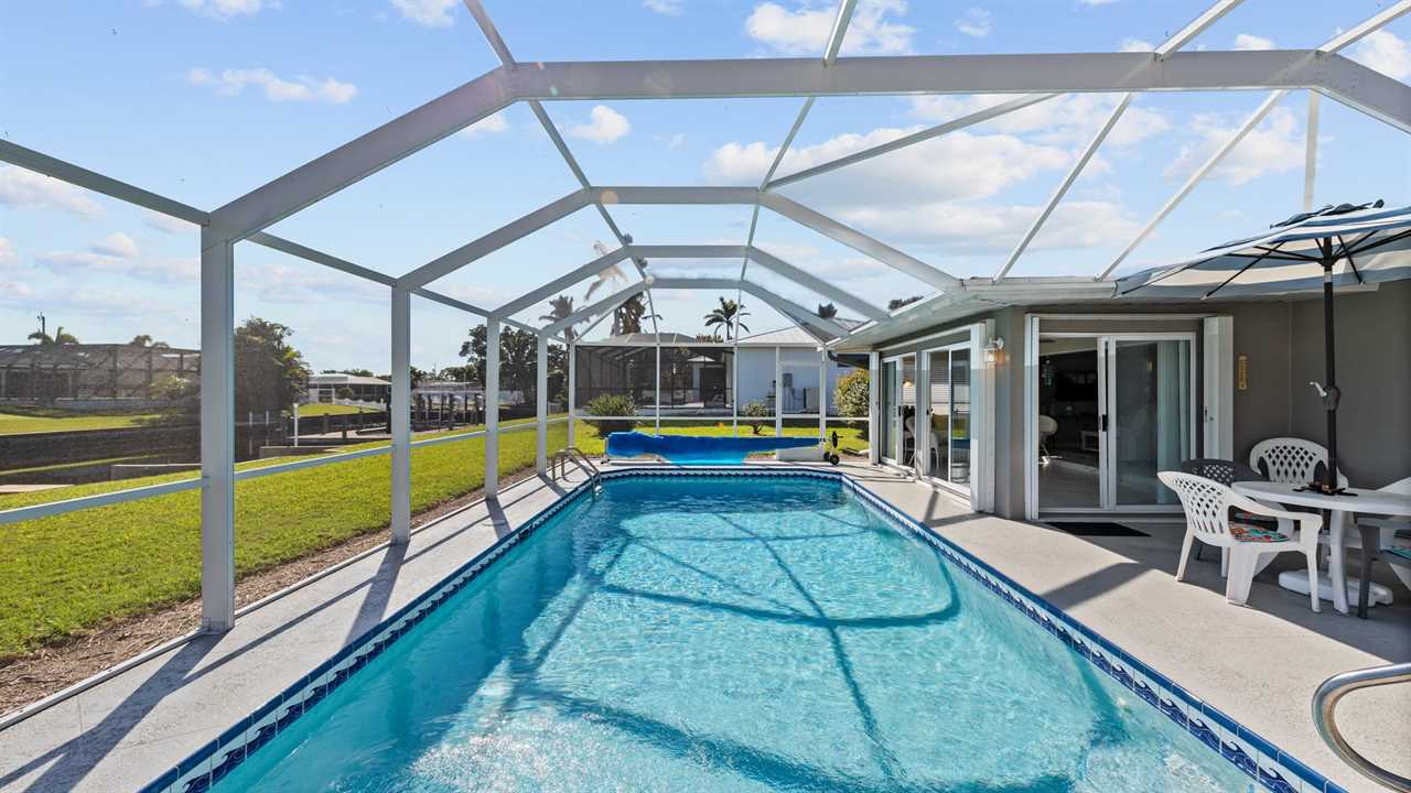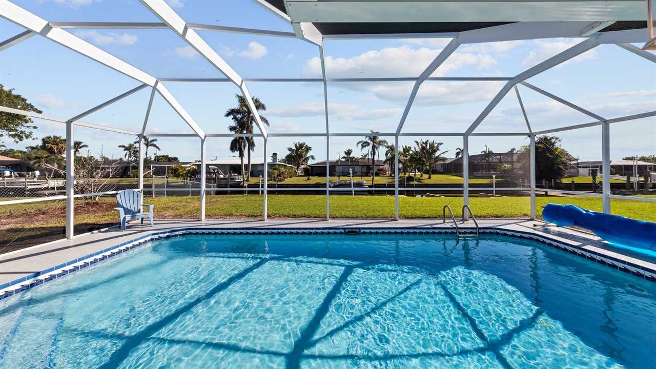 Welcome to Casa Clara, a beautifully remodeled Florida-style home perfectly situated in Southeast Cape Coral. Just a short bike ride from the popular Yacht Club Beach area, this charming property offers serene saltwater canal views and a private electric-heated pool with desirable eastern exposure—ideal for enjoying tranquil Florida mornings.
