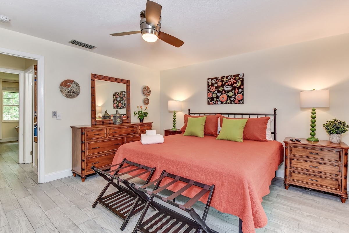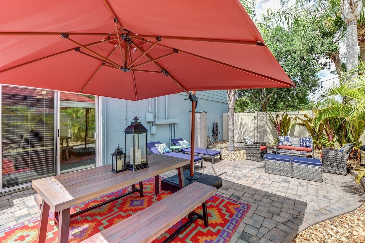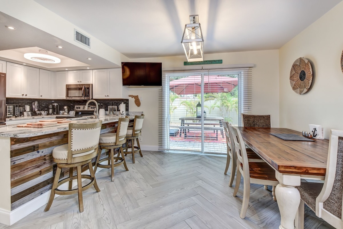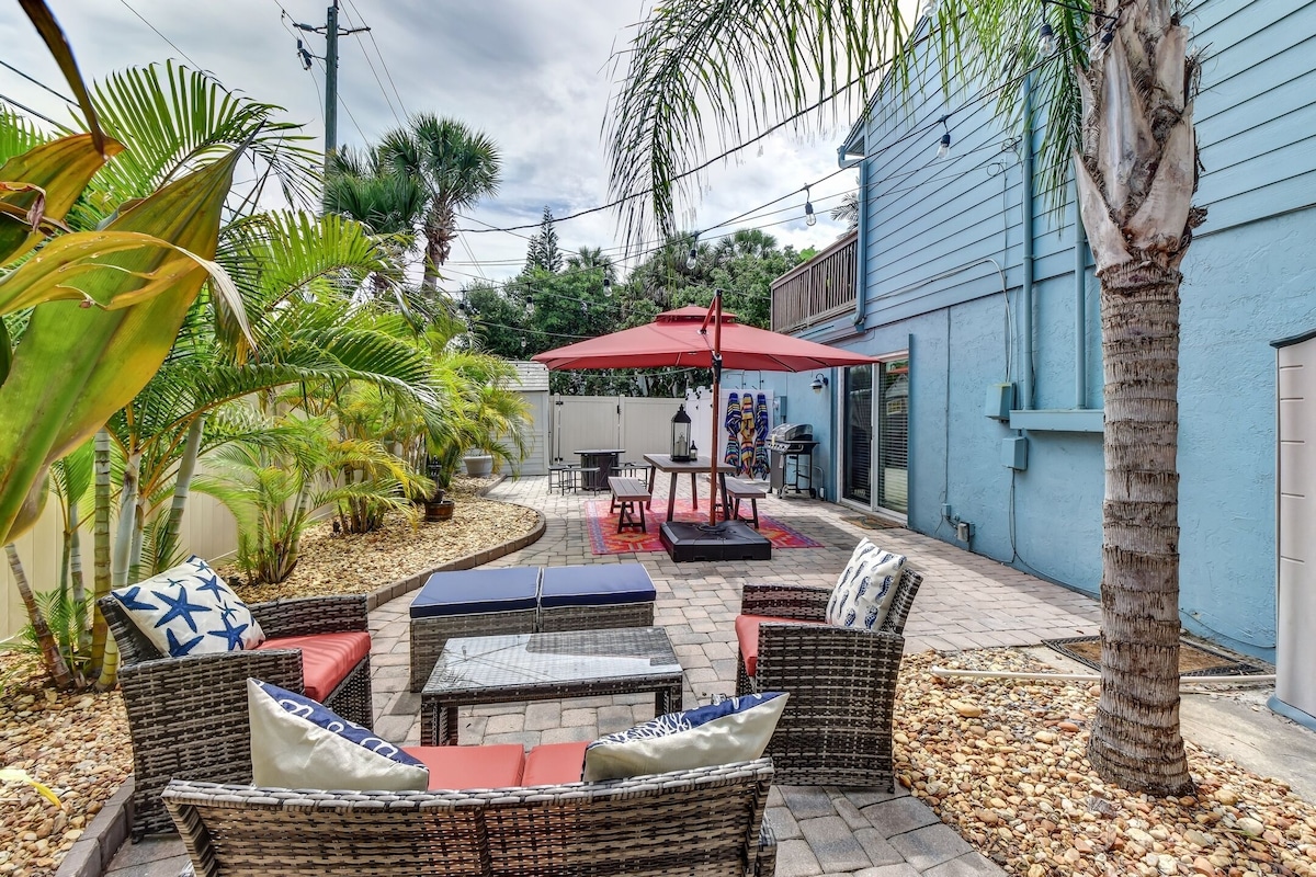 This spacious Flagler Avenue-adjacent home offers relaxing digs with authentic NSB charm in the absolute BEST location in town! Reside within immediate walking proximity to unique shops, trendy bars, and top-rated restaurants along Flagler Avenue or stroll 5 minutes to the beach! Recreate your favorite meals in the fully-equipped kitchen and make lifetime memories in the fabulous fully-fenced string-lit yard with outdoor dining and fire pit for the perfect treat following a day at the beach!