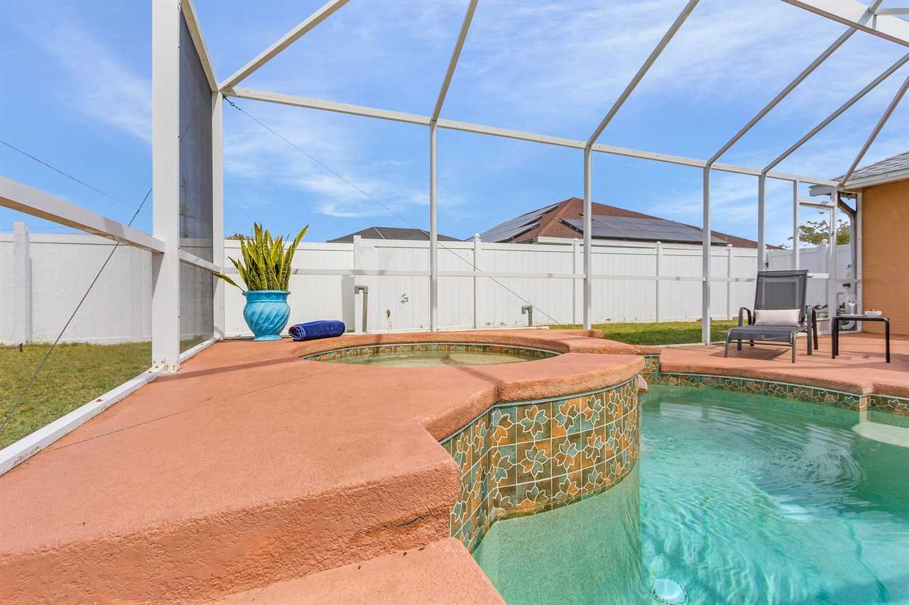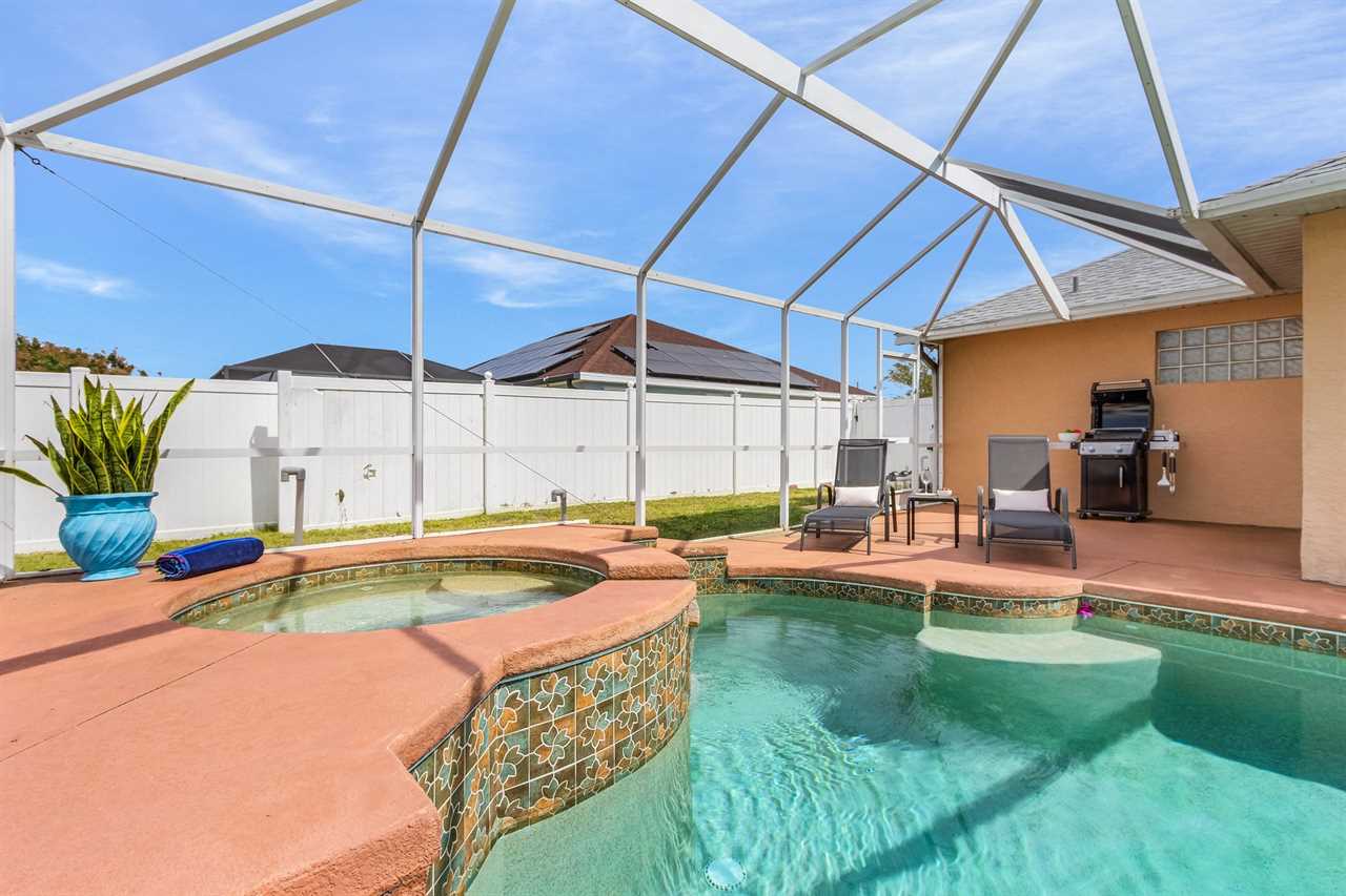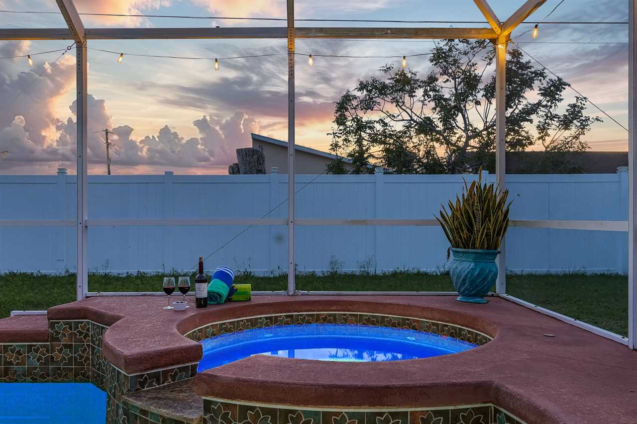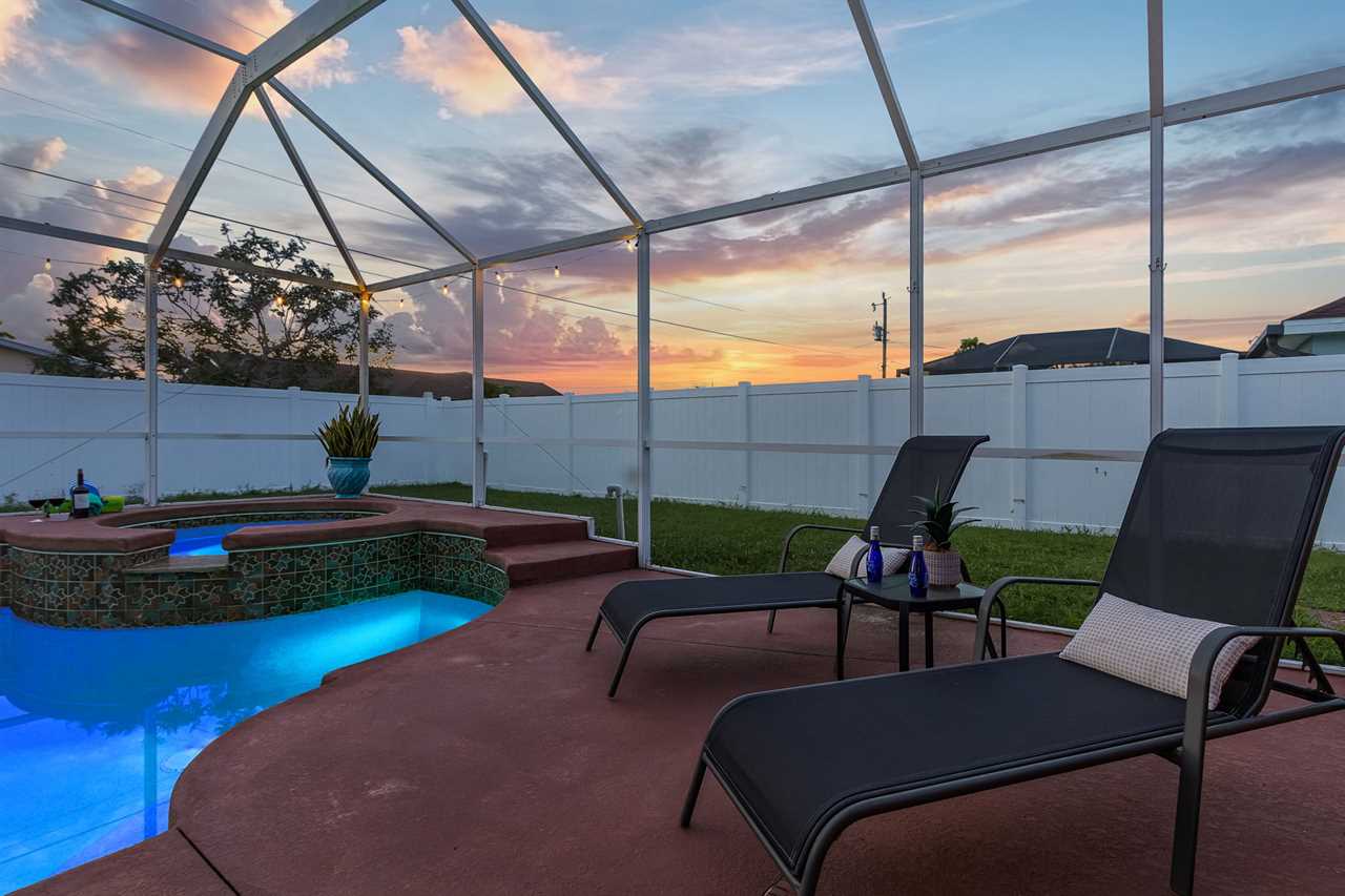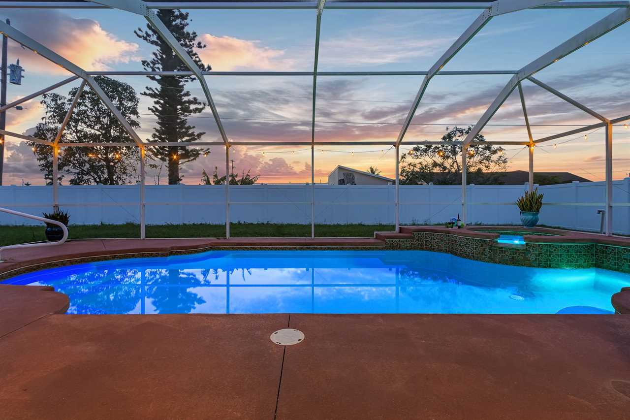 Step outside to your private screened-in lanai with a sparkling heated pool and bubbling spa. Relax, float, or soak your cares away while enjoying Florida's year-round sunshine. The lanai provides ample space for sunbathing, reading, or enjoying cocktails and alfresco dining under the stars—perfect for creating lasting memories with family and friends.