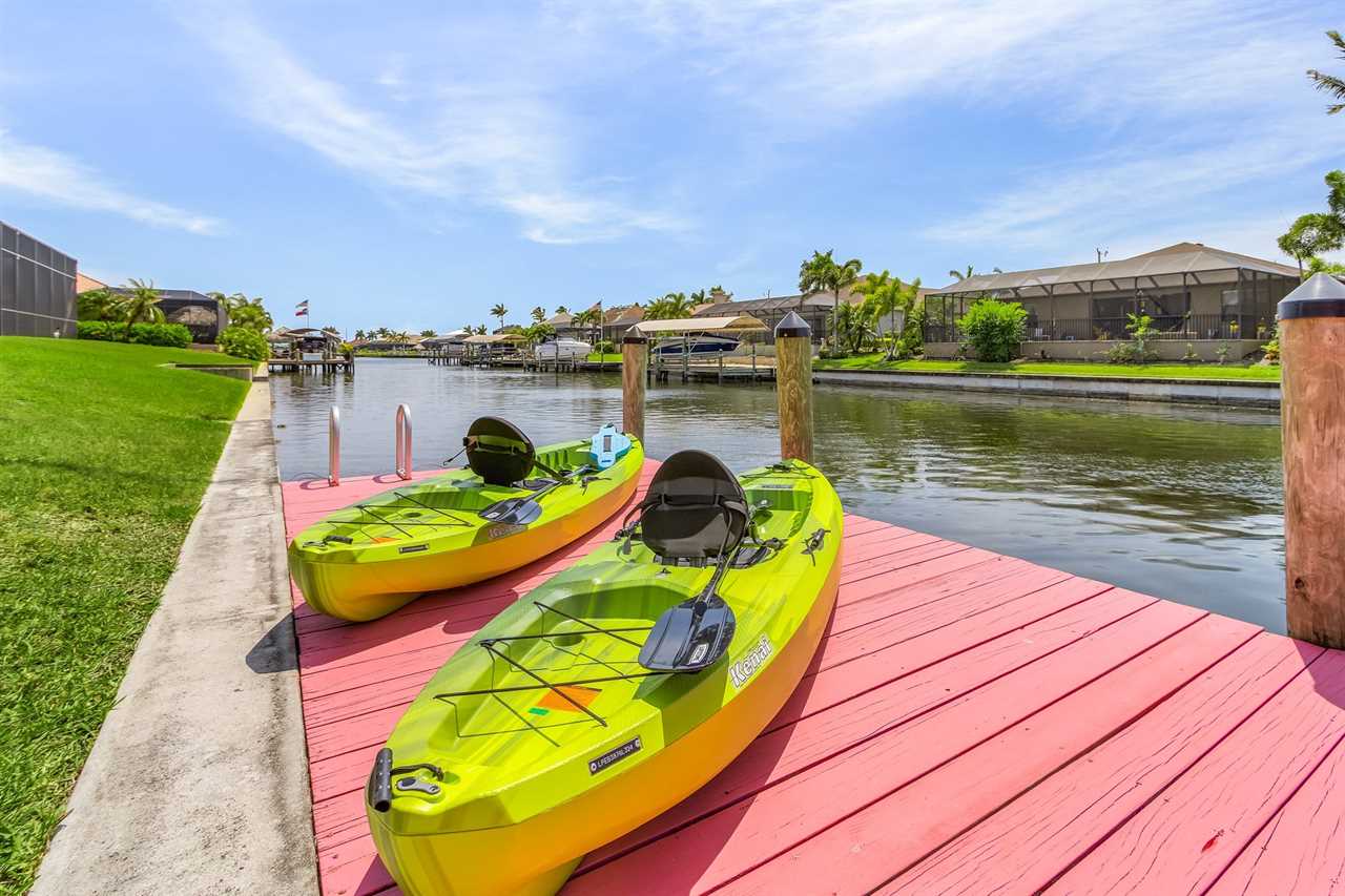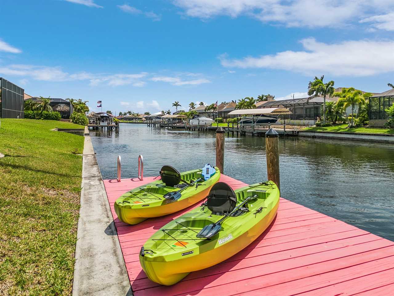 Paddle your way through Cape Coral s scenic waterways with complimentary kayaks provided for guest use. Explore, relax, and experience Southwest Florida from a unique, peaceful perspective.