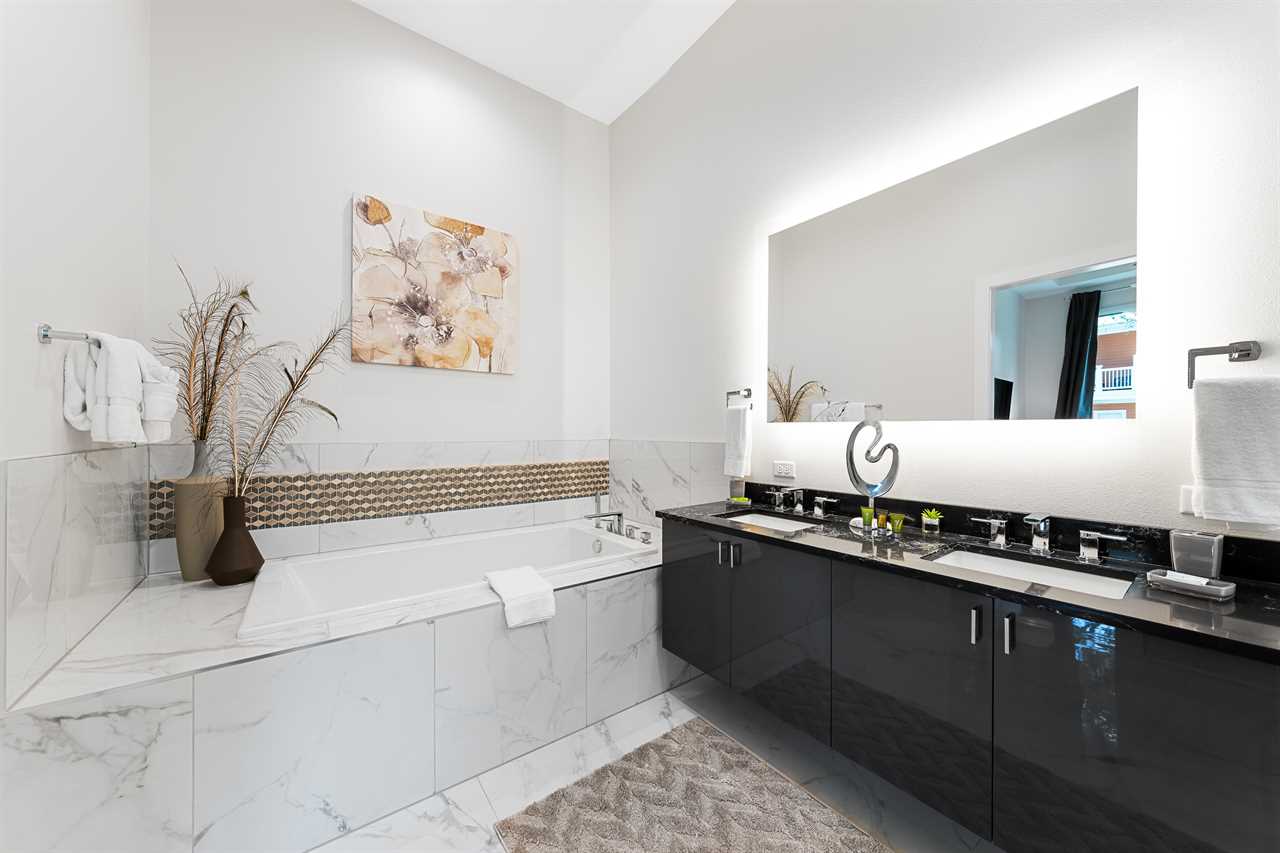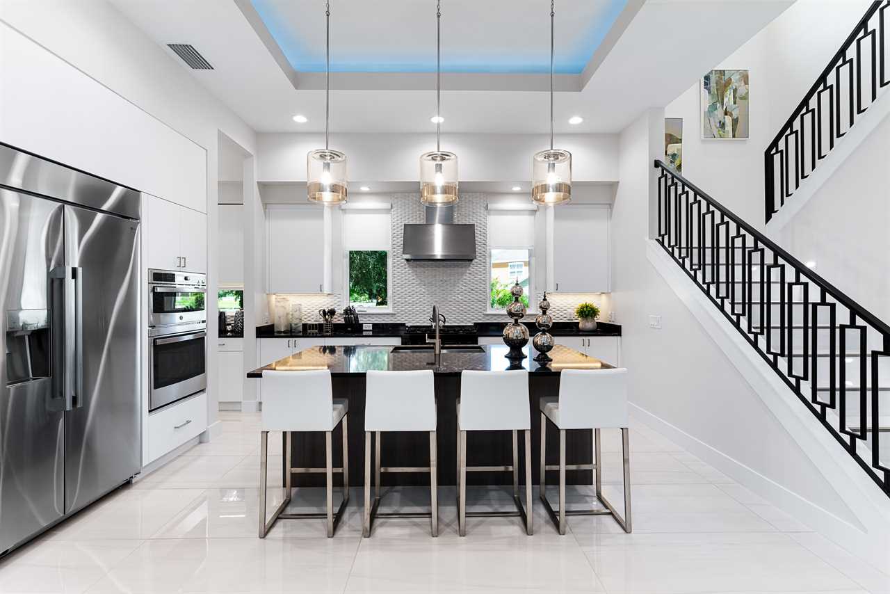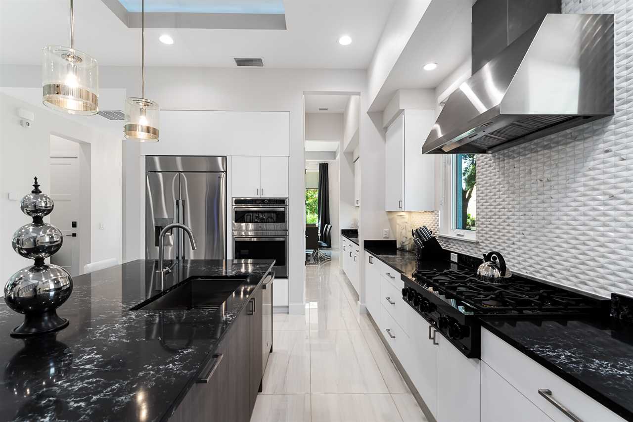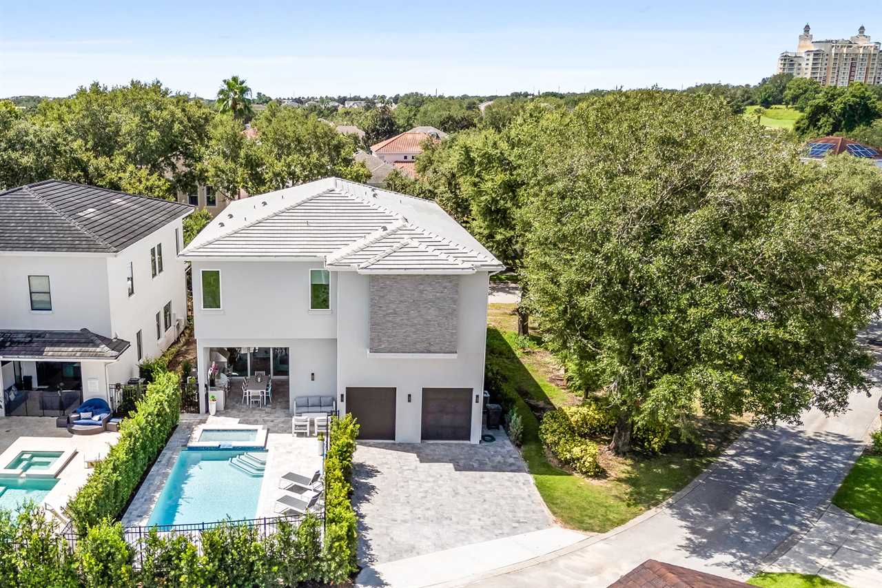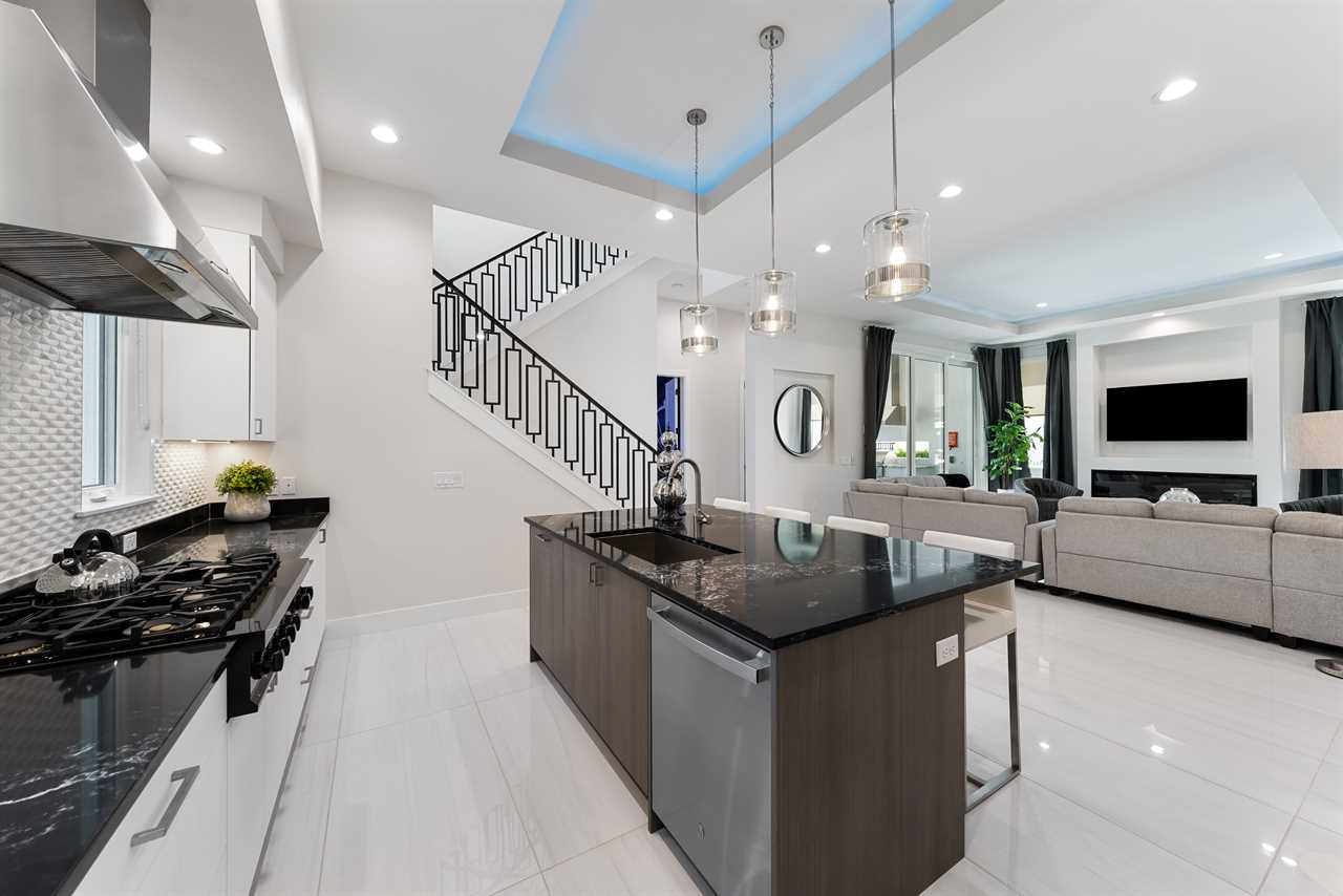 This house located in Homestead within Reunion Resort offers a luxurious and spacious experience. The living room features a large smart TV and an electric fireplace, perfect for cozy gatherings. The kitchen is equipped with granite countertops and a convenient island for cooking and socializing.