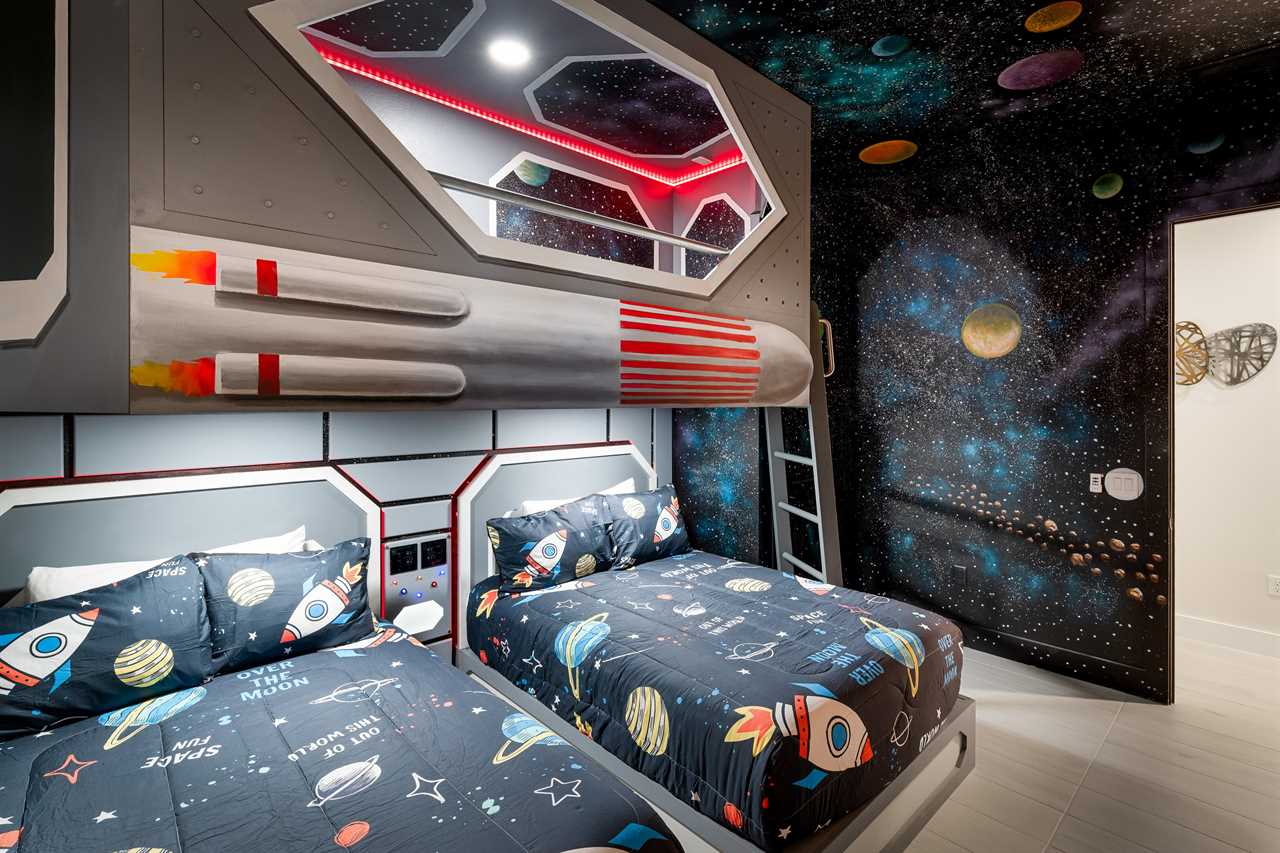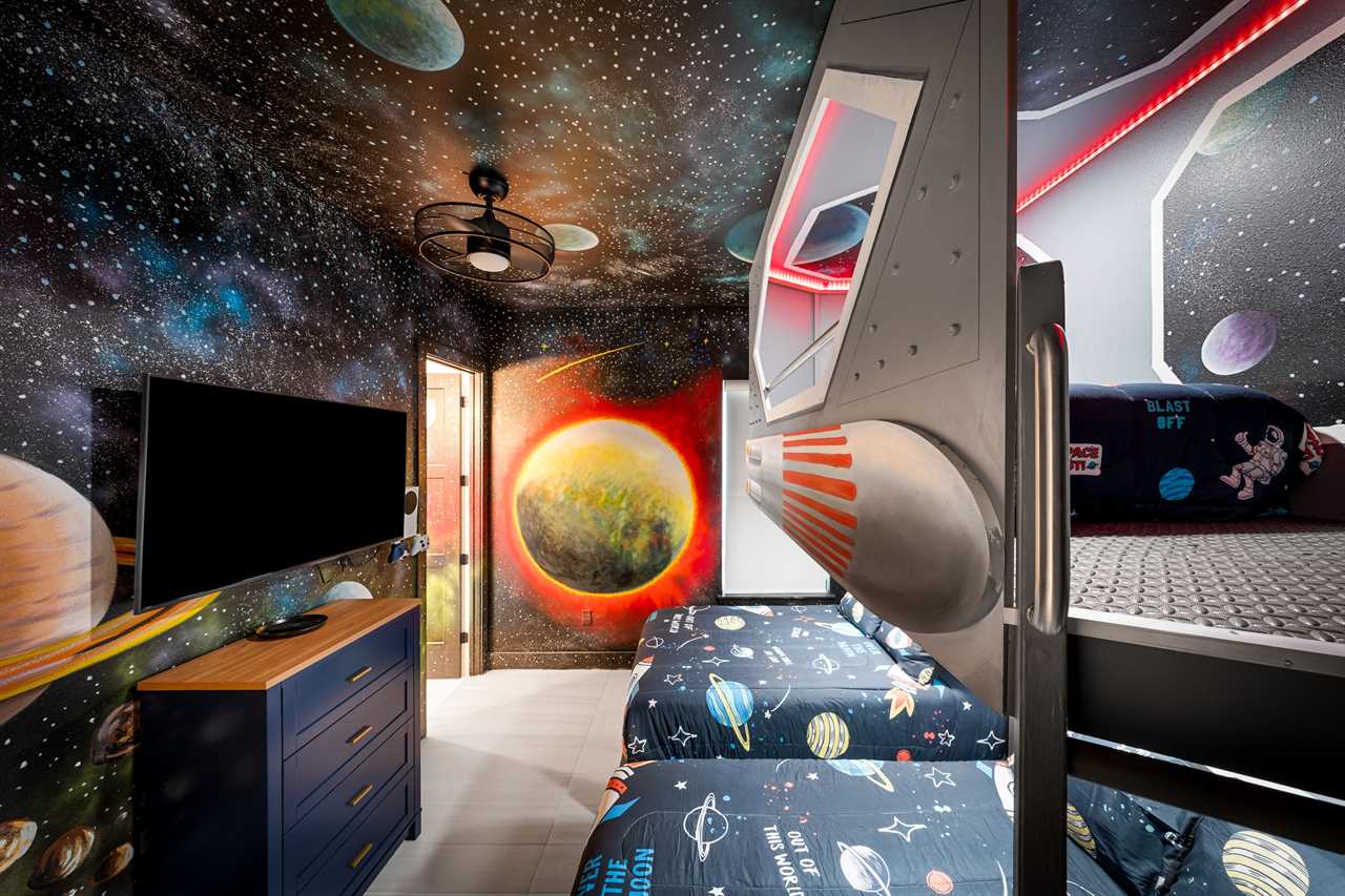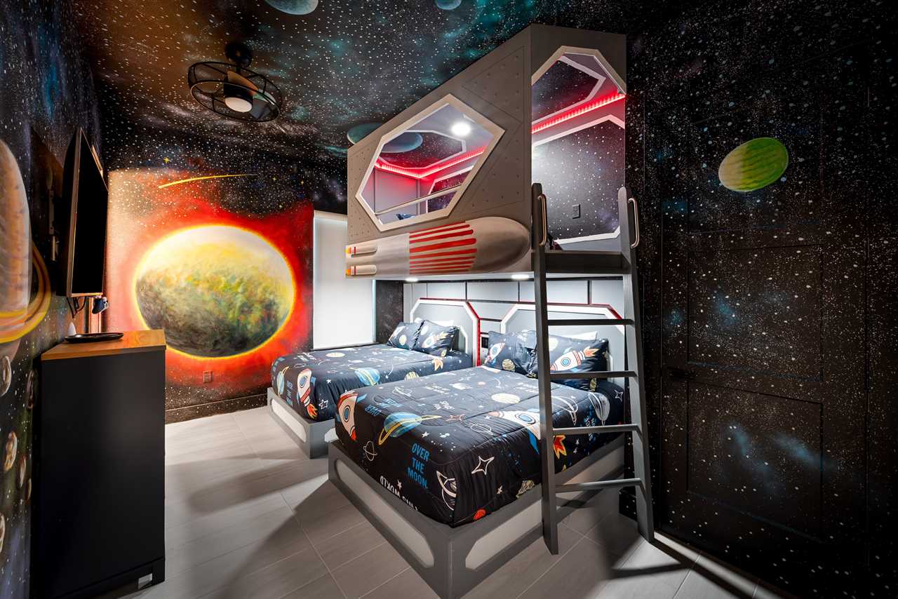 Bedroom #6 - Space-themed Bunk (2 full / 1 twin) (Upstairs)