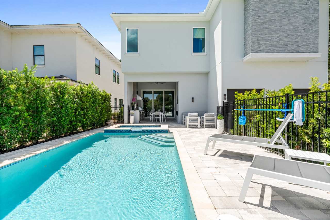 This home has an outdoor pool without a screen enclosure that is cleaned and serviced once a week. Please be aware that in between the weekly clean all outdoor pools are susceptible to some minor debris such as mulch or leaves being blown into the pool. Especially during periods of heavy rain. A skimmer net is provided to remove any debris in between the weekly cleans.