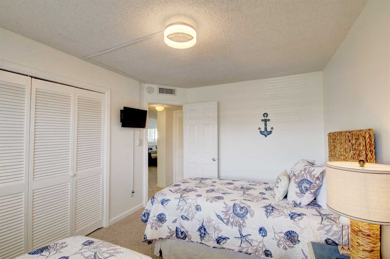 This light and airy unit has beautiful views of the pool and Gulf of Mexico. The kitchen is fully furnished with everything you need to prepare meals. The spacious living room opens out onto the balcony were you can enjoy a great meal or some cocktails while watching the waves hit the sand. The primary bedroom has a king size bed with a full tub/shower combination bathroom. The guest bedroom has two twin size beds and a tub/shower combo.
