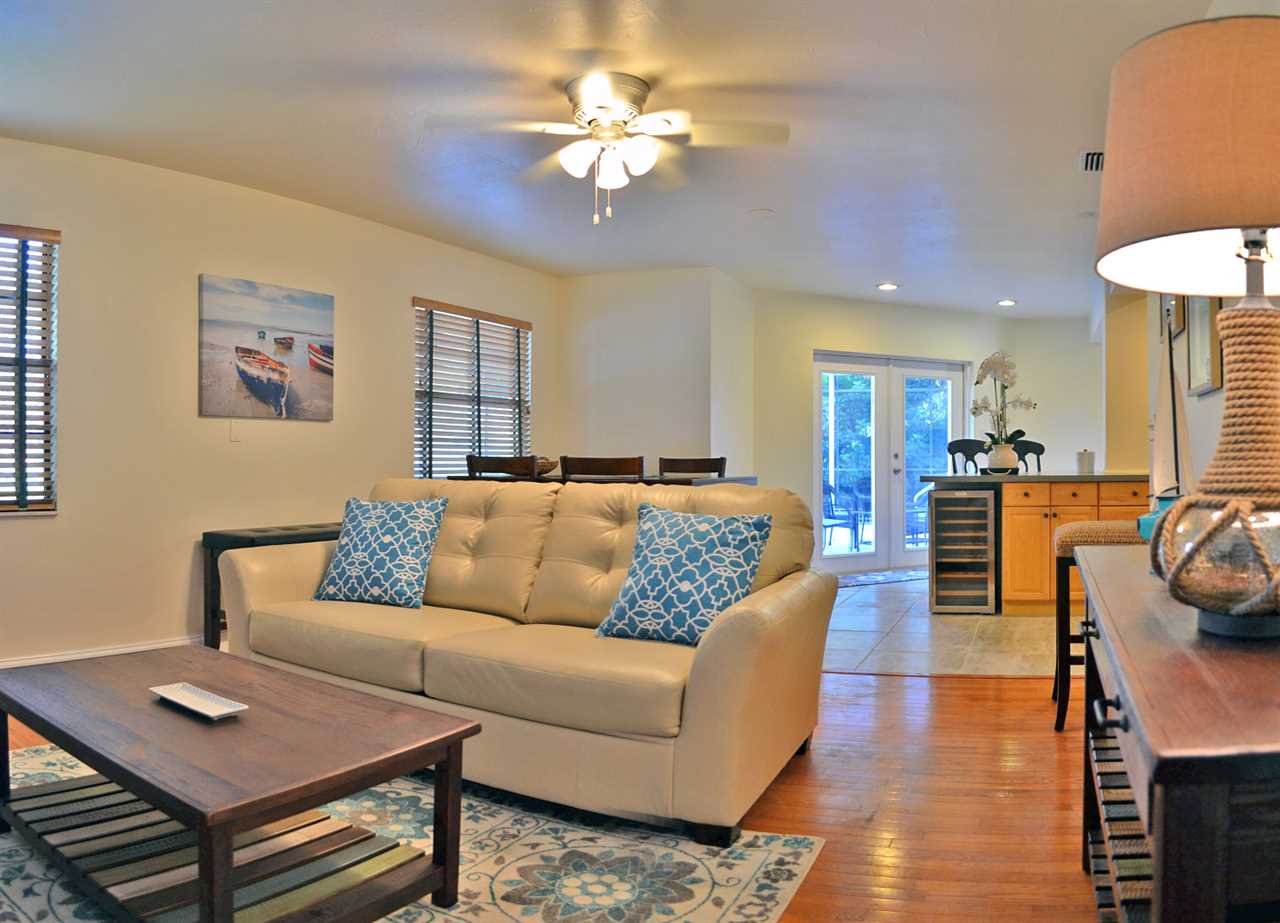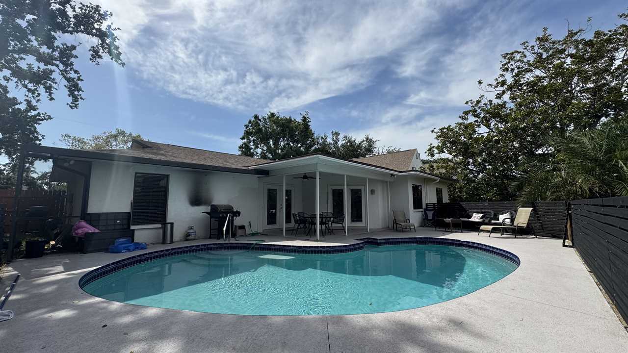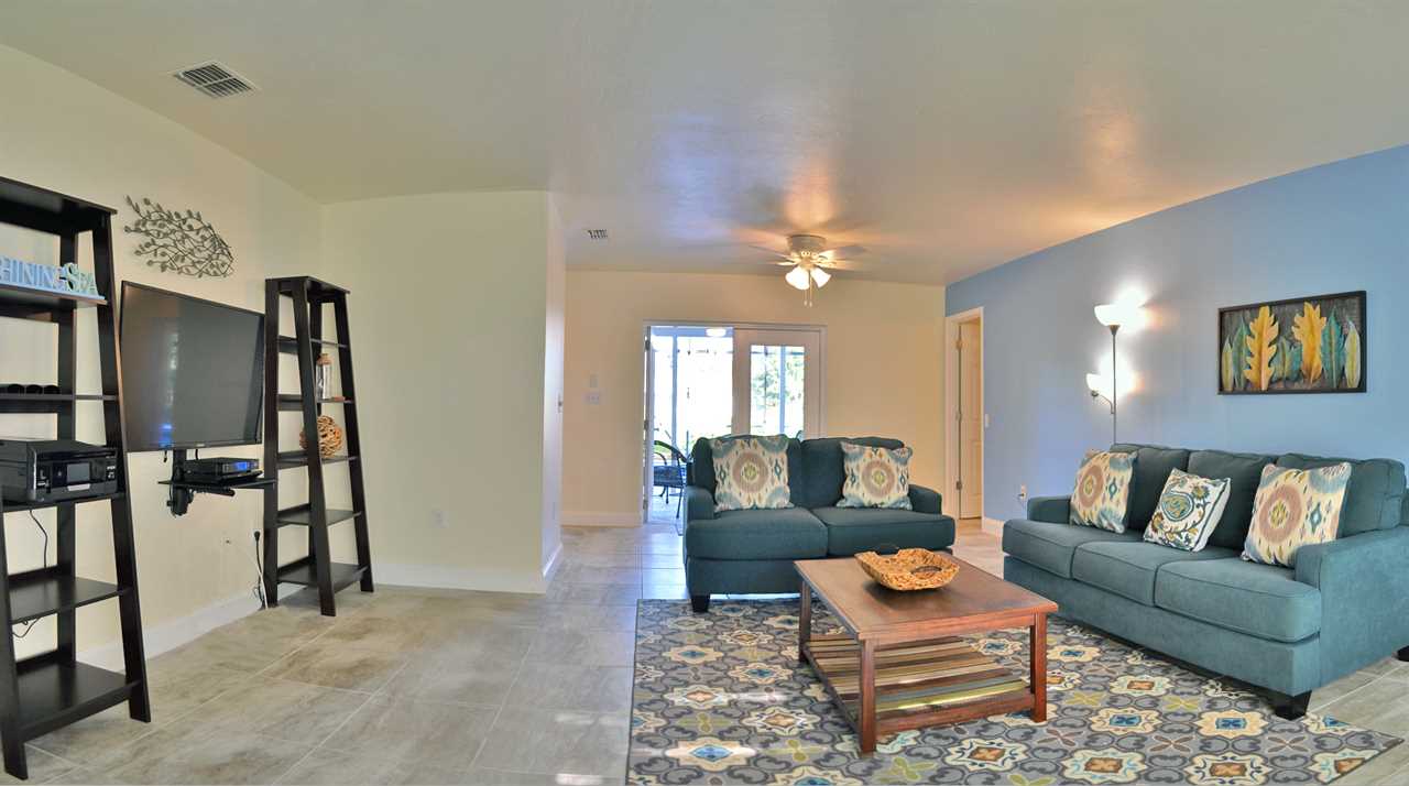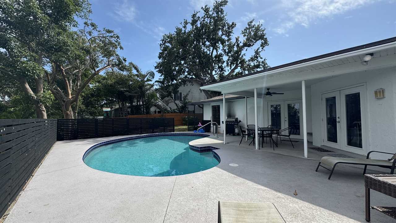 This beautiful home has recently been renovated inside and out. Located just a 10 minute drive to Holmes Beach on Anna Maria Island and 15 minutes to Downtown Bradenton puts this home right in the middle of unlimited shops, restaurants, and activities. As you enter the home you are welcomed by an open floor plan with family room, kitchen, and living room which all open out to a large screened patio and pool through french doors. All three bedrooms are very large furnished with 1 king bed in the master, 1 queen and 2 twin-size beds in the guest bedrooms. These two guest bedrooms share a beautifully remodeled bathroom with soaking tub. The master en-suite bath has a large walk-in shower and closet. The spacious kitchen with breakfast bar opens out to the patio via french doors and is equipped for all your cooking needs. Enjoy a serene and quiet atmosphere out by the pool overlooking the lake or try some fishing off the dock.