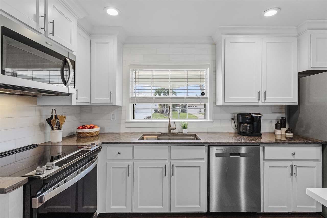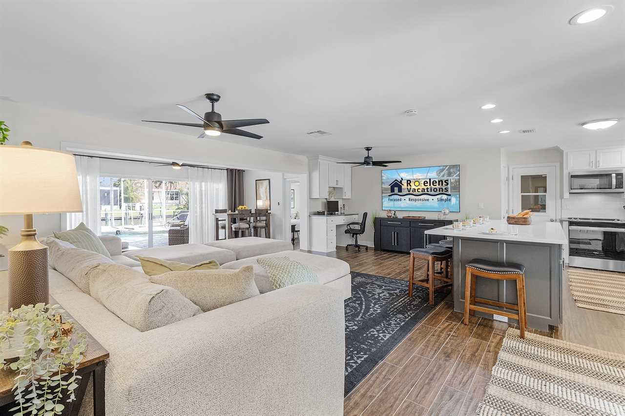 Open Floor Plan: This freshly remodeled home features an open and inviting space with modern furniture that fosters a relaxing atmosphere for entertaining friends and family or unwinding in style. The stunning updated kitchen boasts sleek stainless steel appliances and ample counter space, allowing your inner gourmet to shine.