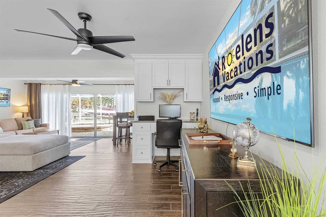 Dedicated work space: Conveniently located off the kitchen, a small desk area awaits, perfect for tackling a quick "to-do" list so you can swiftly get back to enjoying your vacation.