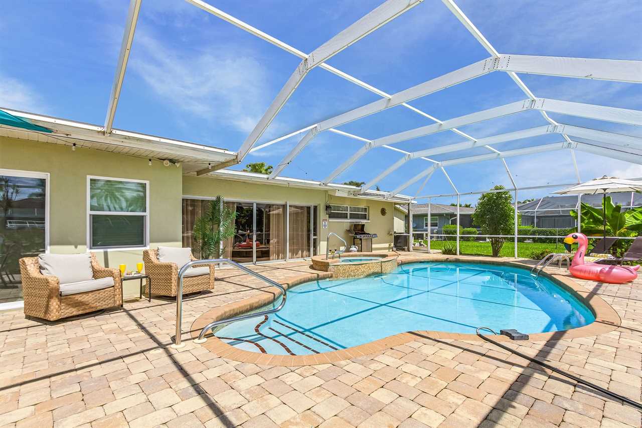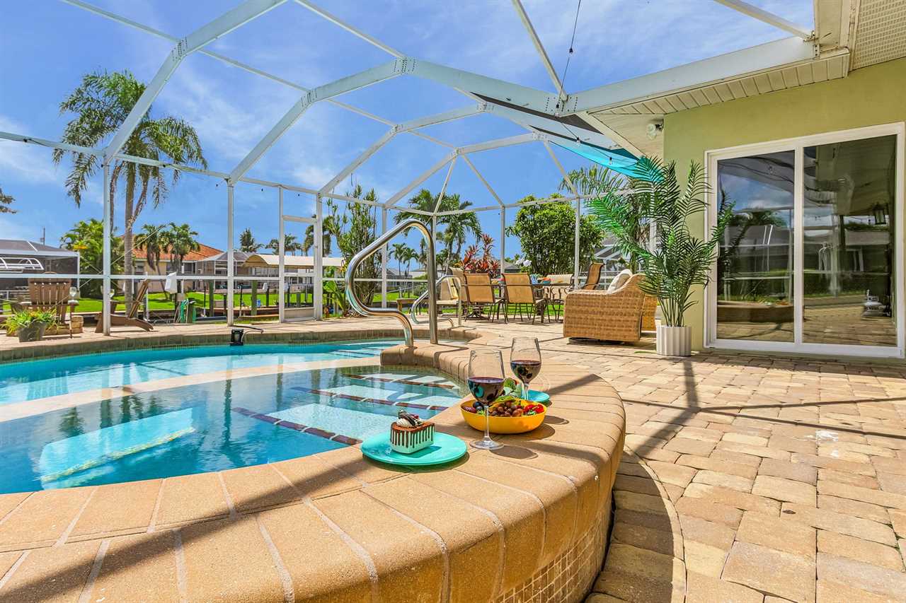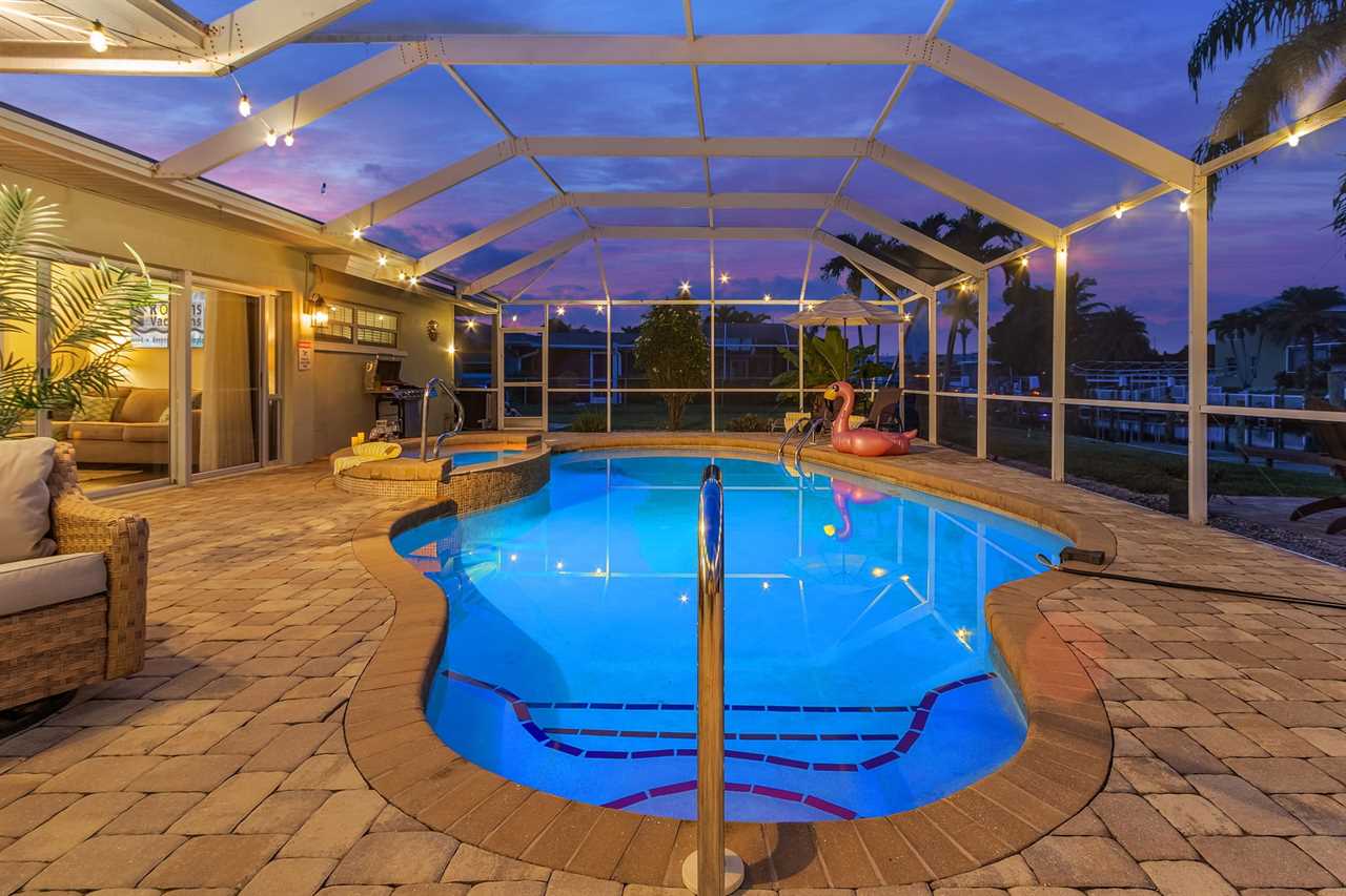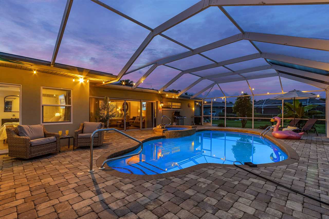 Lanai with Loungers and Grill: Relax on the spacious pool deck, where loungers await your presence, perfect for enjoying a good book under the sun. As the weather invites you outdoors, sizzle up something special on the grill and relish al fresco dining against a breathtaking backdrop.