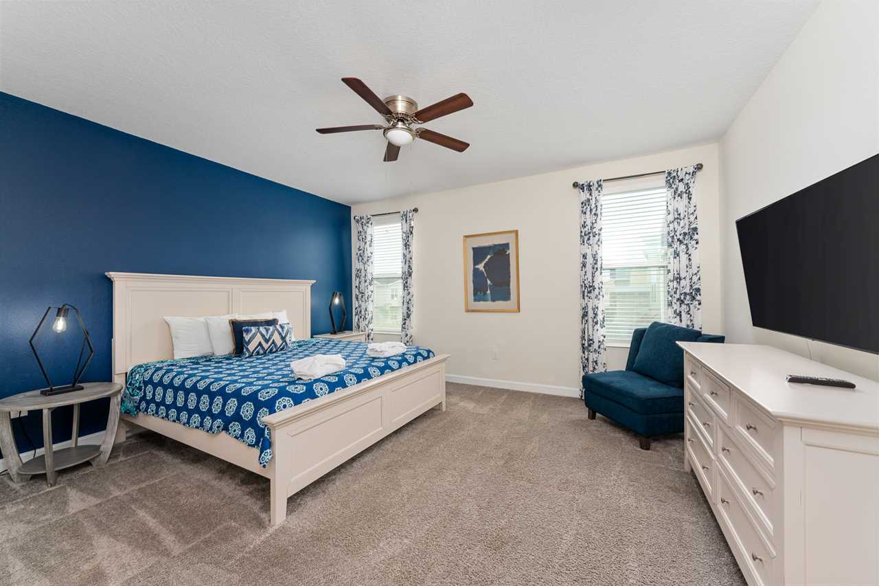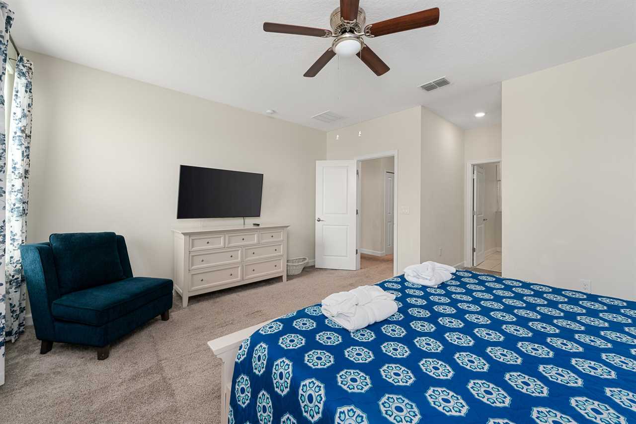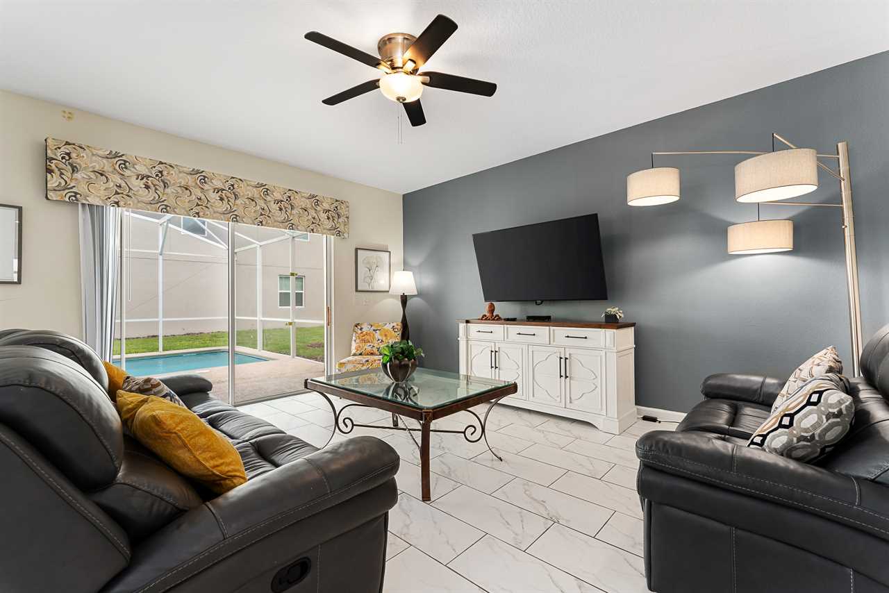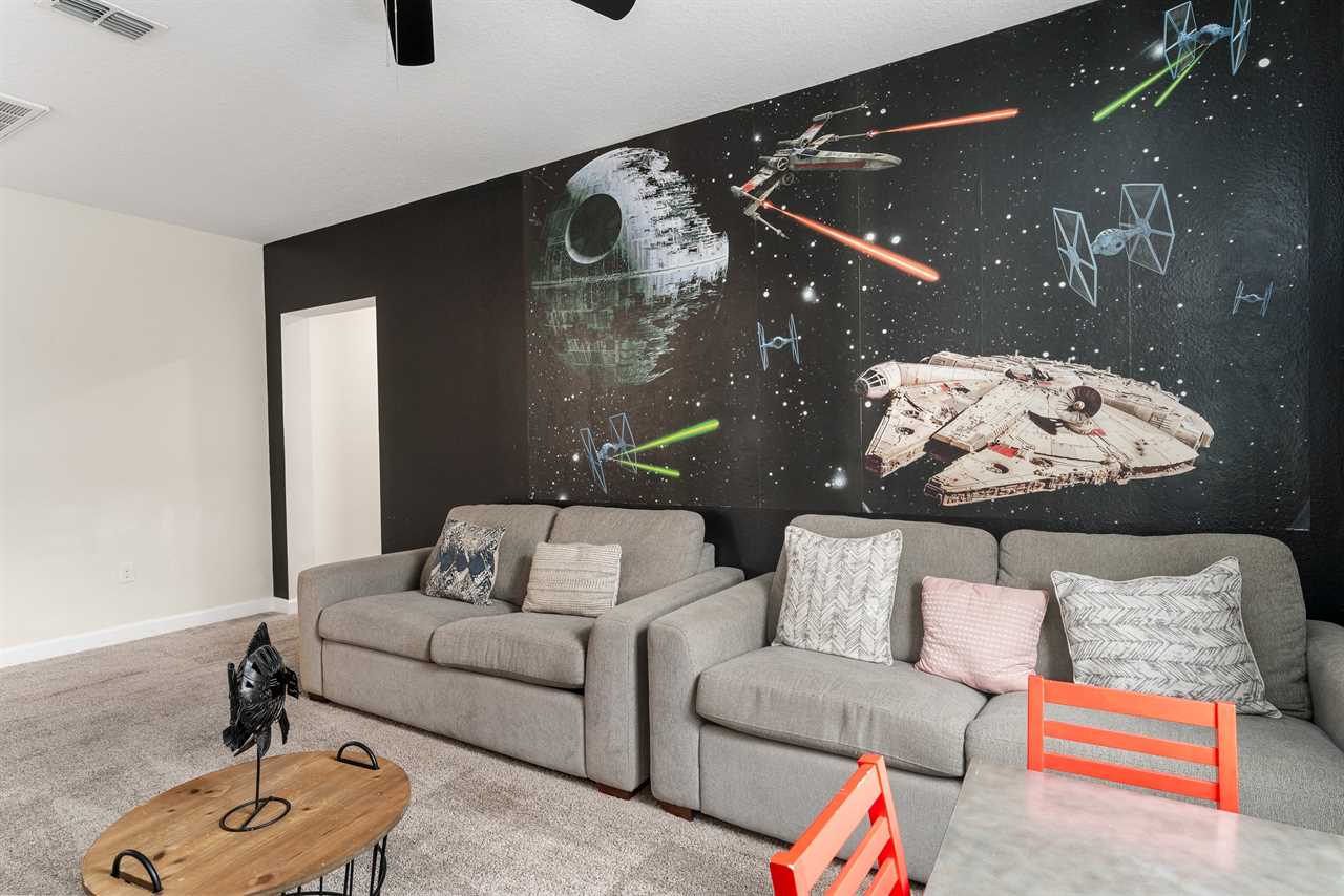 Property Reference: #TR_612BR This beautiful home in The Retreat at Champions Gate is located on a desirable corner lot, offering ample space and privacy. Inside, the open-concept living space is designed for comfort and relaxation. The kitchen features a large island with bar seating for five, making it a perfect spot for casual dining or entertaining. Adjacent, the dining area comfortably seats eight, providing a more formal setting for meals. The living room is furnished with two cozy sofas equipped with recliners, centered around a large wall-mounted smart TV. A ceiling fan adds comfort, creating an inviting space for family and friends to gather. The outdoor area is a private oasis with a screened-in pool and spillover spa, perfect for cooling off or unwinding. The patio includes an outdoor dining table for six and additional seating, making it an ideal setting for alfresco dining or simply enjoying the Florida sunshine. Entertainment options abound in this home, with a games room that features both an air hockey table and foosball, providing fun for guests of all ages. The loft upstairs offers additional living space, complete with two sofas, a kids' seating area, and a large wall-mounted smart TV, all kept cool with a ceiling fan. The home includes six bedrooms, each thoughtfully designed for comfort and style. Downstairs, there is a queen bedroom with a wall-mounted TV and ceiling fan, offering a cozy retreat. Upstairs, the back king master suite features a wall-mounted smart TV and a ceiling fan, along with a private master bath equipped with a double vanity and a spacious shower. The upstairs also features a twin/twin bunk room, complete with a wall-mounted smart TV, and a super hero-themed twin/twin bunk room, which also includes a wall-mounted TV. Conveniently located outside the themed bunk room is a full bath with a tub/shower combo. Additional sleeping arrangements include a queen bedroom with a wall-mounted smart TV and ceiling fan, and another king master suite that boasts a wall-mounted smart TV and a luxurious en-suite bathroom with a double vanity, tub, and shower. This property offers complimentary high-speed wireless internet, ensuring you stay connected throughout your stay. The smoke-free and pet-free environment guarantees a pristine atmosphere for your comfort. Towels and linens are provided, allowing you to travel light and stress-free. The fully equipped kitchen, washer, and dryer add to the convenience, while keyless entry ensures a seamless arrival and departure experience. With its blend of comfort, entertainment, and stylish design, this home at The Retreat at Champions Gate offers a perfect escape for families and groups seeking both relaxation and fun. Property Summary General Complimentary high-speed wireless internet Smoke-free and pet-free for your comfort Towels and linens are provided Fully equipped kitchen Keyless entry Bedroom / Bed Sizes Bedroom 1 - Queen (Downstairs) Bedroom 2 - King (Upstairs) Bedroom 3 - Twin/Twin Bunk (Upstairs) Bedroom 4 - Twin/Twin Bunk (Upstairs) Bedroom 5 - Queen (Upstairs) Bedroom 6 - King (Upstairs) Games Area Air hockey Foosball Pool Area Private screened-in pool Spillover spa Outside furniture Sun loungers Children Equipment Pack n play High chair Stroller Laundry Room Full-size washer and dryer Ironing board & Iron Why book this rental? Professionally managed to offer you a superior, personalized service No hassle with key pick-up! Drive straight to your vacation rental! Detailed guest information guide provided within each property Terms and Conditions Check-in time is 4:00 pm Check-out time is 10:00 am All properties are non-smoking and no pets are allowed An Accidental Damage Protection (ADP) fee will be required to cover any reported accidental damage to this property and its contents There is a one-time departure cleaning fee for all stays Final payment due 45 days prior to your arrival The guest making the reservation must be 25 years of age or older. Bookings made within 30 days of the arrival date must check-in during office hours before the access information is released. The credit/debit card used for payment must be shown along with a valid driving license or passport in the same name as the card. As well as a utility bill with the same address as the card billing address. Pre-Paid cards are not accepted. Vacation rentals may not be used for events or group gatherings that exceed the maximum occupancy. A rental agreement must be signed by the lead guest making the reservation, along with a full list of guest names that will be staying in the property. We use a third party to verify identification and fraud risk, based on the findings we could cancel the reservation. This property does not include a BBQ, however, we do have them available for rental. Pool heat is available and is recommended from the 31st Oct. to the 31st Mar. If you would like the Spillover Spa to be heated you will need to add pool heat to your reservation. Max of 6 cars per address Third party platforms such as Airbnb may not allow optional fees to be displayed in the check-out cart of their website. Optional fees can include items such as early check-in, late check-out, mid stay cleans and pool heat. These items can be added directly with Florida Vacation Homes after the reservation has been made.