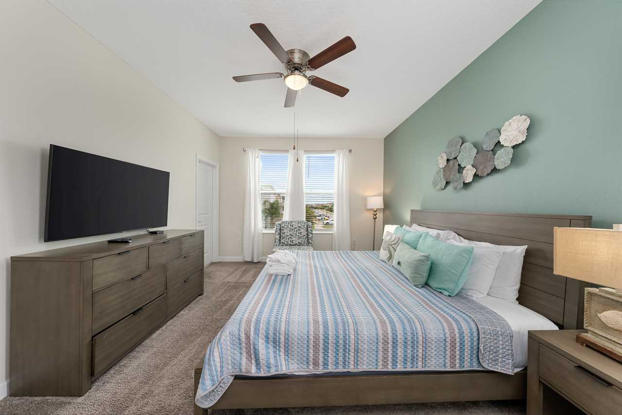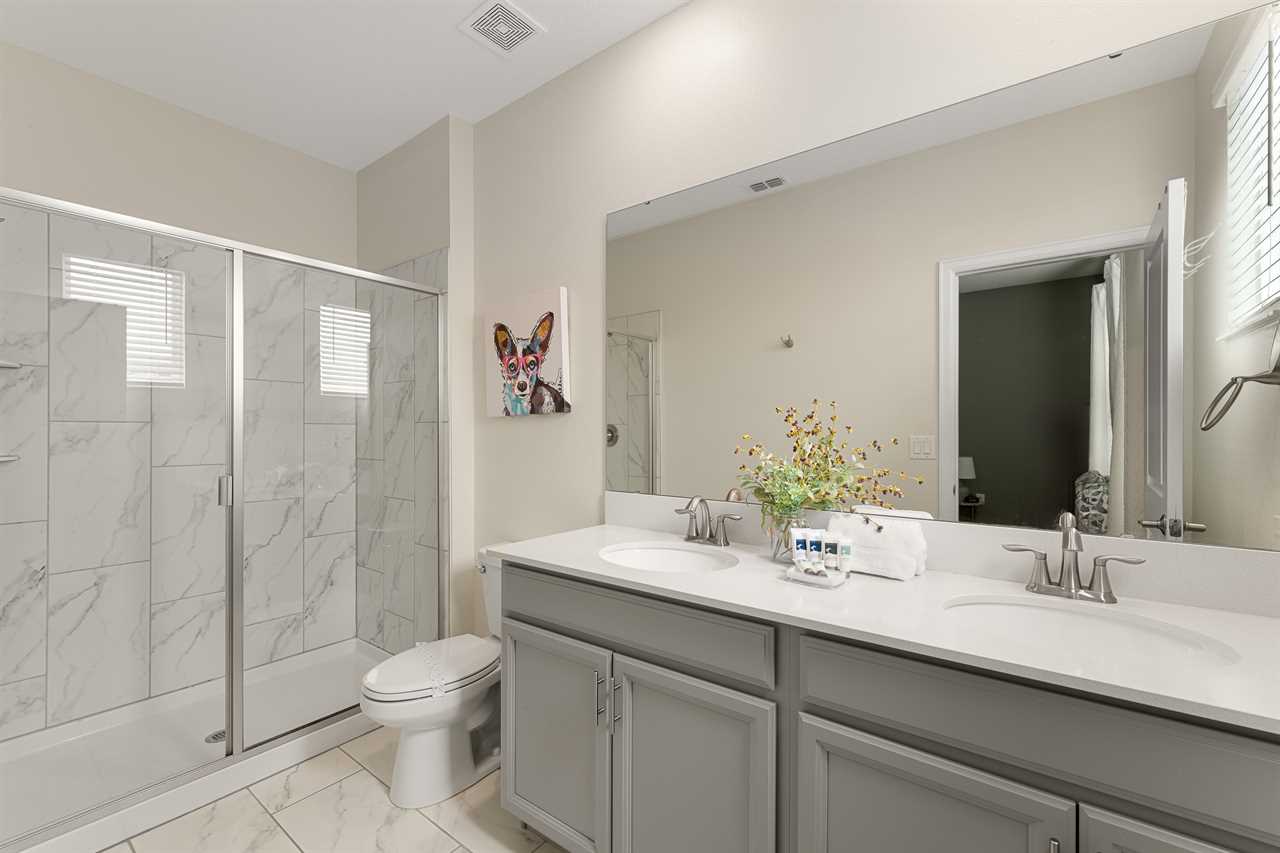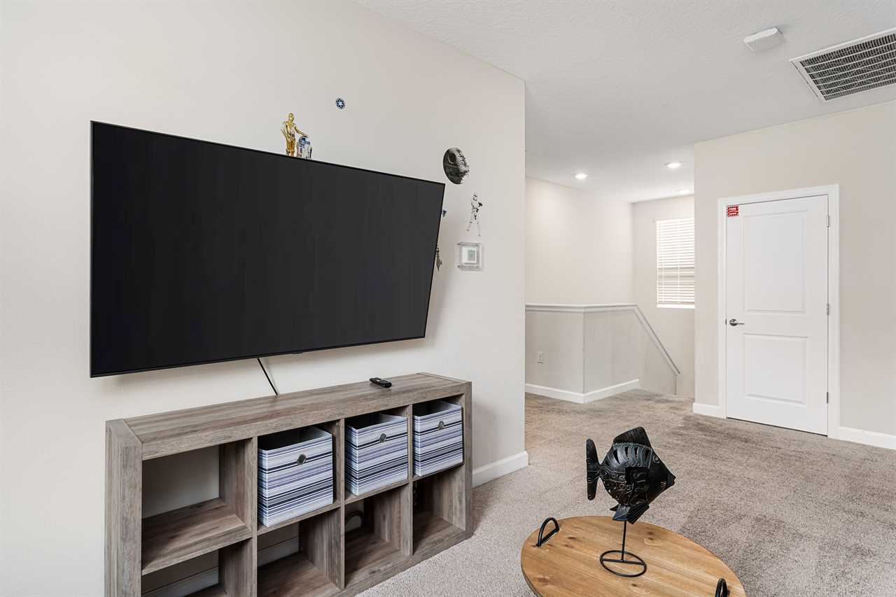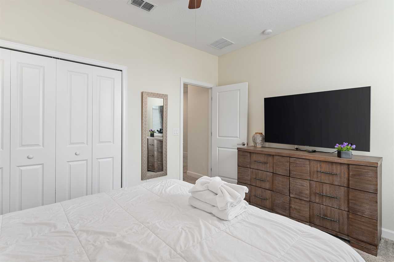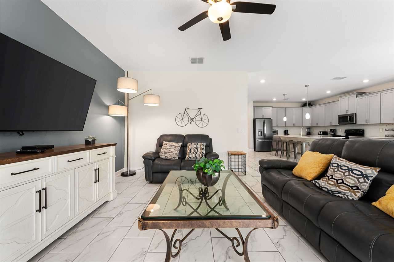 Property Reference: #TR_612BR This beautiful home in The Retreat at Champions Gate is located on a desirable corner lot, offering ample space and privacy. Inside, the open-concept living space is designed for comfort and relaxation. The kitchen features a large island with bar seating for five, making it a perfect spot for casual dining or entertaining. Adjacent, the dining area comfortably seats eight, providing a more formal setting for meals. The living room is furnished with two cozy sofas equipped with recliners, centered around a large wall-mounted smart TV. A ceiling fan adds comfort, creating an inviting space for family and friends to gather. The outdoor area is a private oasis with a screened-in pool and spillover spa, perfect for cooling off or unwinding. The patio includes an outdoor dining table for six and additional seating, making it an ideal setting for alfresco dining or simply enjoying the Florida sunshine. Entertainment options abound in this home, with a games room that features both an air hockey table and foosball, providing fun for guests of all ages. The loft upstairs offers additional living space, complete with two sofas, a kids' seating area, and a large wall-mounted smart TV, all kept cool with a ceiling fan. The home includes six bedrooms, each thoughtfully designed for comfort and style. Downstairs, there is a queen bedroom with a wall-mounted TV and ceiling fan, offering a cozy retreat. Upstairs, the back king master suite features a wall-mounted smart TV and a ceiling fan, along with a private master bath equipped with a double vanity and a spacious shower. The upstairs also features a twin/twin bunk room, complete with a wall-mounted smart TV, and a super hero-themed twin/twin bunk room, which also includes a wall-mounted TV. Conveniently located outside the themed bunk room is a full bath with a tub/shower combo. Additional sleeping arrangements include a queen bedroom with a wall-mounted smart TV and ceiling fan, and another king master suite that boasts a wall-mounted smart TV and a luxurious en-suite bathroom with a double vanity, tub, and shower. This property offers complimentary high-speed wireless internet, ensuring you stay connected throughout your stay. The smoke-free and pet-free environment guarantees a pristine atmosphere for your comfort. Towels and linens are provided, allowing you to travel light and stress-free. The fully equipped kitchen, washer, and dryer add to the convenience, while keyless entry ensures a seamless arrival and departure experience. With its blend of comfort, entertainment, and stylish design, this home at The Retreat at Champions Gate offers a perfect escape for families and groups seeking both relaxation and fun. Property Summary General Complimentary high-speed wireless internet Smoke-free and pet-free for your comfort Towels and linens are provided Fully equipped kitchen Keyless entry Bedroom / Bed Sizes Bedroom 1 - Queen (Downstairs) Bedroom 2 - King (Upstairs) Bedroom 3 - Twin/Twin Bunk (Upstairs) Bedroom 4 - Twin/Twin Bunk (Upstairs) Bedroom 5 - Queen (Upstairs) Bedroom 6 - King (Upstairs) Games Area Air hockey Foosball Pool Area Private screened-in pool Spillover spa Outside furniture Sun loungers Children Equipment Pack n play High chair Stroller Laundry Room Full-size washer and dryer Ironing board & Iron Why book this rental? Professionally managed to offer you a superior, personalized service No hassle with key pick-up! Drive straight to your vacation rental! Detailed guest information guide provided within each property Terms and Conditions Check-in time is 4:00 pm Check-out time is 10:00 am All properties are non-smoking and no pets are allowed An Accidental Damage Protection (ADP) fee will be required to cover any reported accidental damage to this property and its contents There is a one-time departure cleaning fee for all stays Final payment due 45 days prior to your arrival The guest making the reservation must be 25 years of age or older. Bookings made within 30 days of the arrival date must check-in during office hours before the access information is released. The credit/debit card used for payment must be shown along with a valid driving license or passport in the same name as the card. As well as a utility bill with the same address as the card billing address. Pre-Paid cards are not accepted. Vacation rentals may not be used for events or group gatherings that exceed the maximum occupancy. A rental agreement must be signed by the lead guest making the reservation, along with a full list of guest names that will be staying in the property. We use a third party to verify identification and fraud risk, based on the findings we could cancel the reservation. This property does not include a BBQ, however, we do have them available for rental. Pool heat is available and is recommended from the 31st Oct. to the 31st Mar. If you would like the Spillover Spa to be heated you will need to add pool heat to your reservation. Max of 6 cars per address Third party platforms such as Airbnb may not allow optional fees to be displayed in the check-out cart of their website. Optional fees can include items such as early check-in, late check-out, mid stay cleans and pool heat. These items can be added directly with Florida Vacation Homes after the reservation has been made.