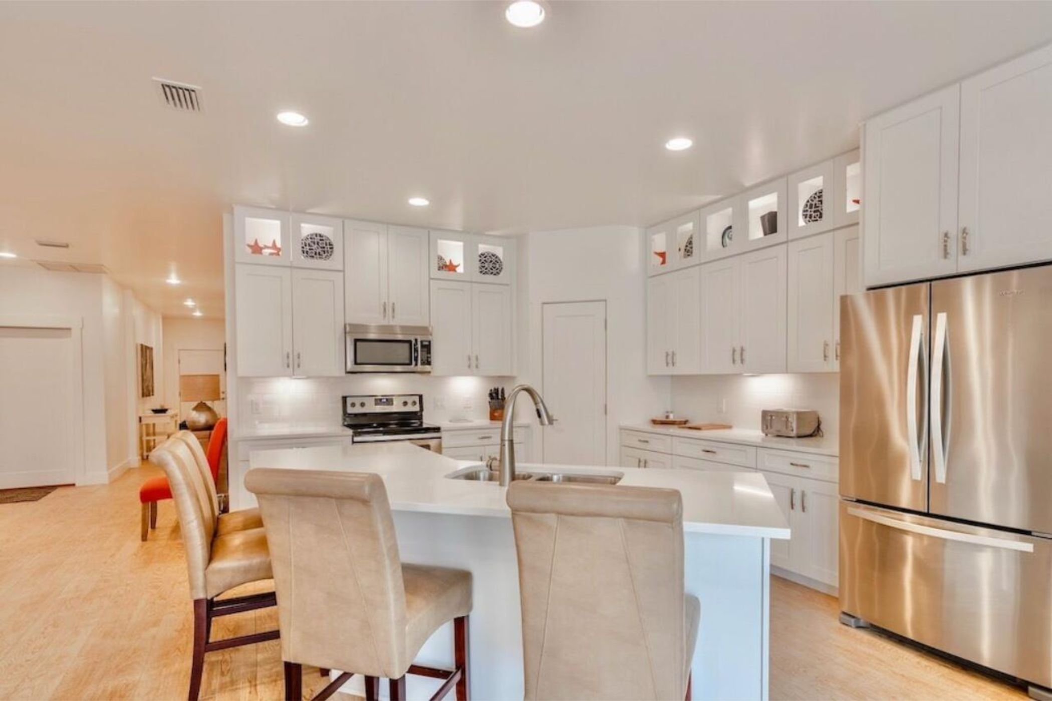 Meals can easily be prepared in the huge kitchen with all the necessities and it is open to the family area so no one feels "left out".