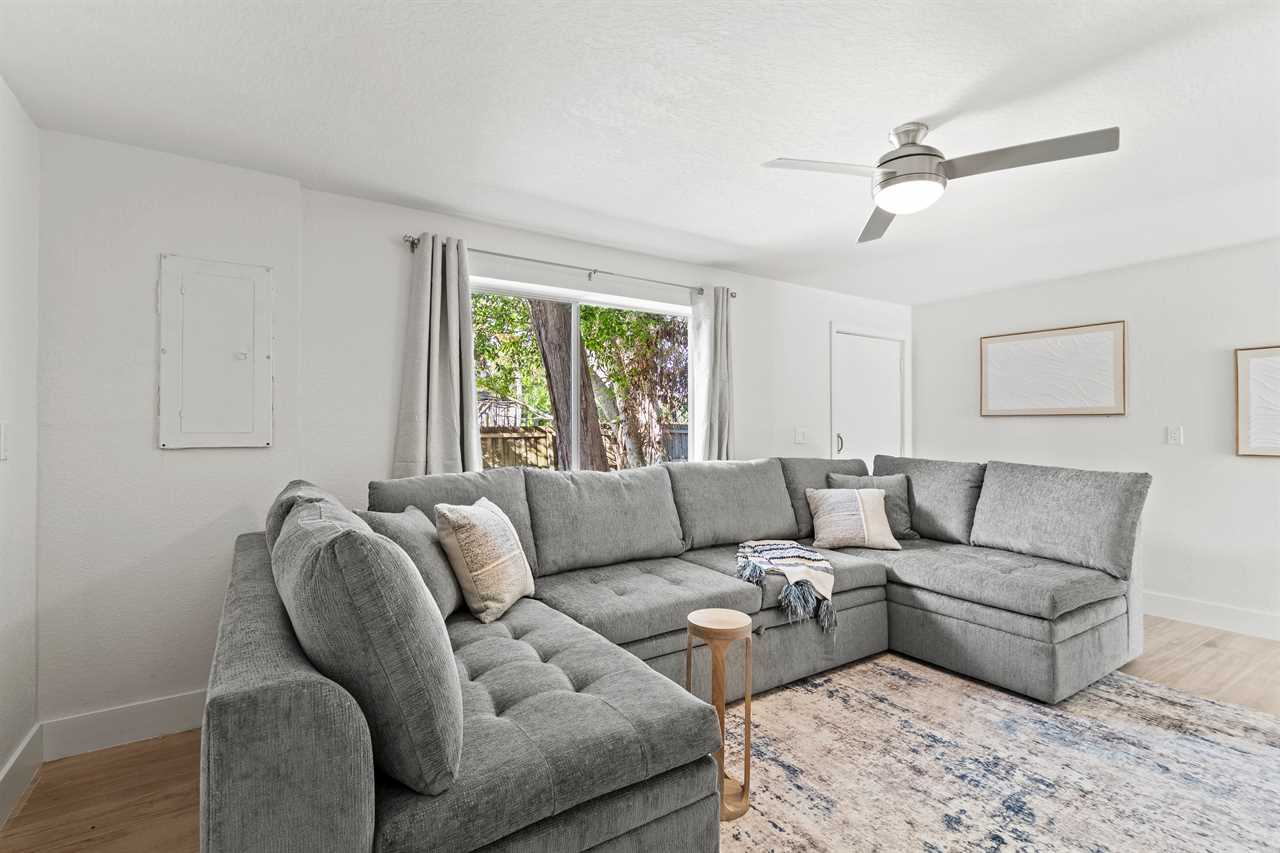 Evenings are best spent under the stars, sharing laughter around the propane fire feature or enjoying a sunset dinner on the covered patio. The backyard seamlessly connects to the interior, offering a true indoor-outdoor living experience.