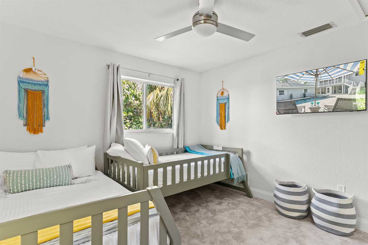 • A fifth bedroom with a twin-over-full bunk setup—ideal for kids or teens.