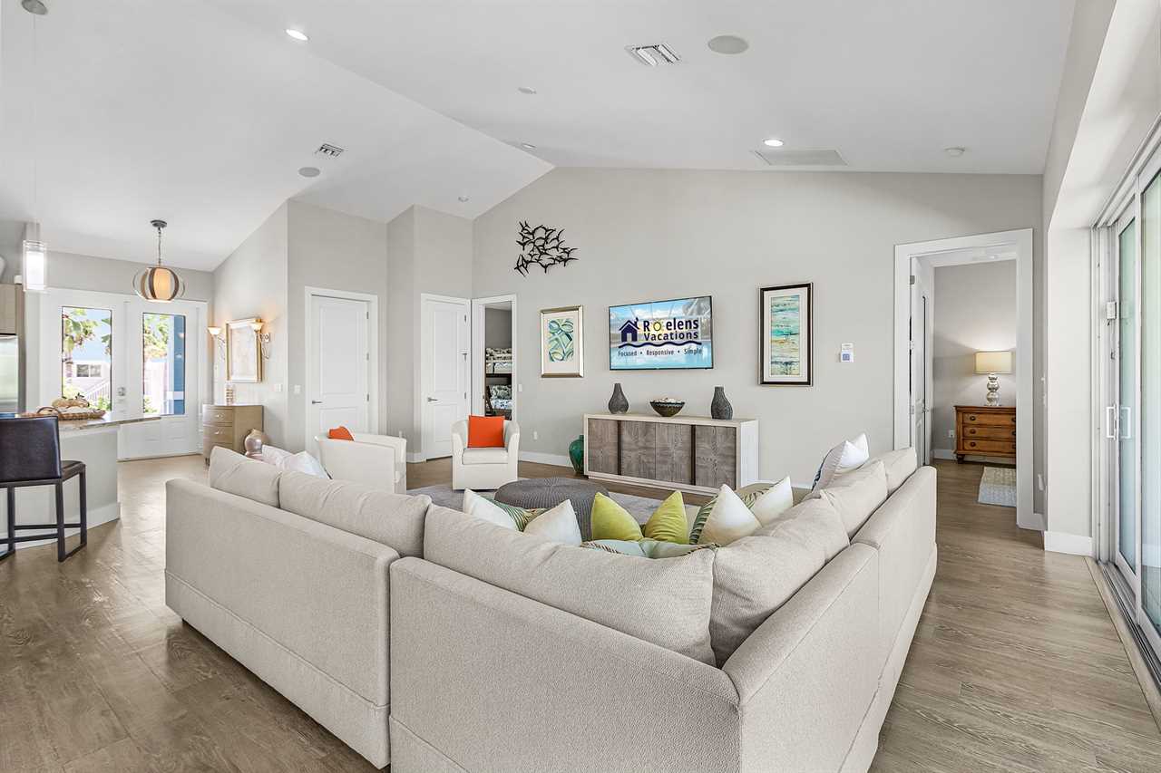 Welcome to Southern Comfort, where coastal elegance meets vacation bliss. Nestled in a serene setting, this spacious and light-filled 4-bedroom, 4-bathroom home is perfect for families or groups seeking a luxurious yet laid-back getaway. With vaulted ceilings, large windows, and an open-concept design, this home effortlessly blends style, comfort, and breathtaking views to create the ultimate retreat. Here's what makes this home so special: