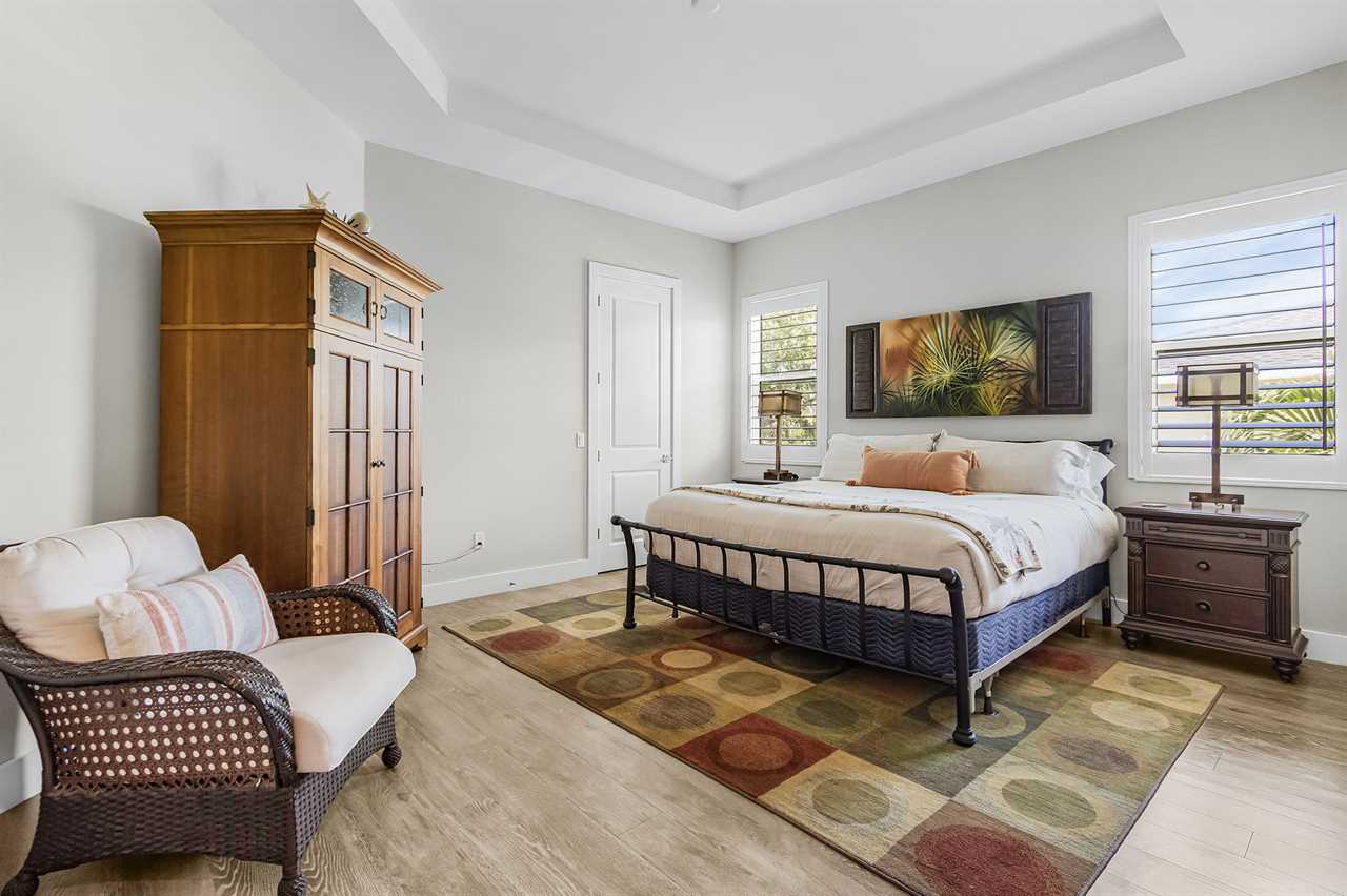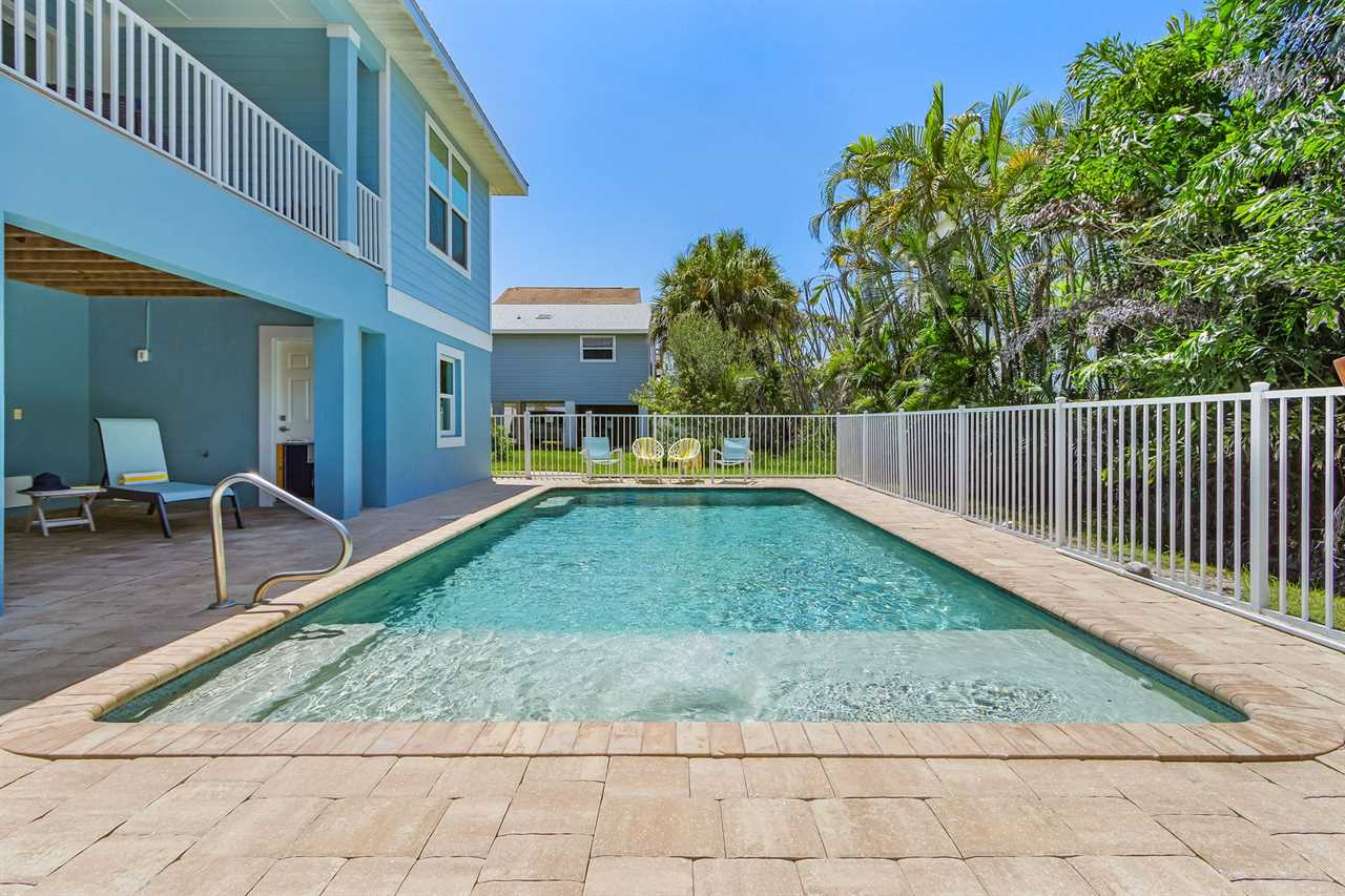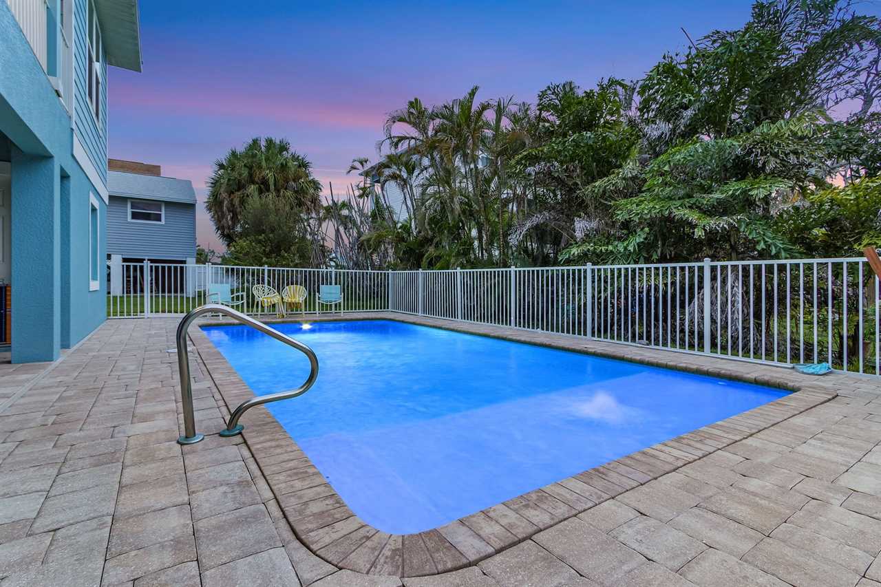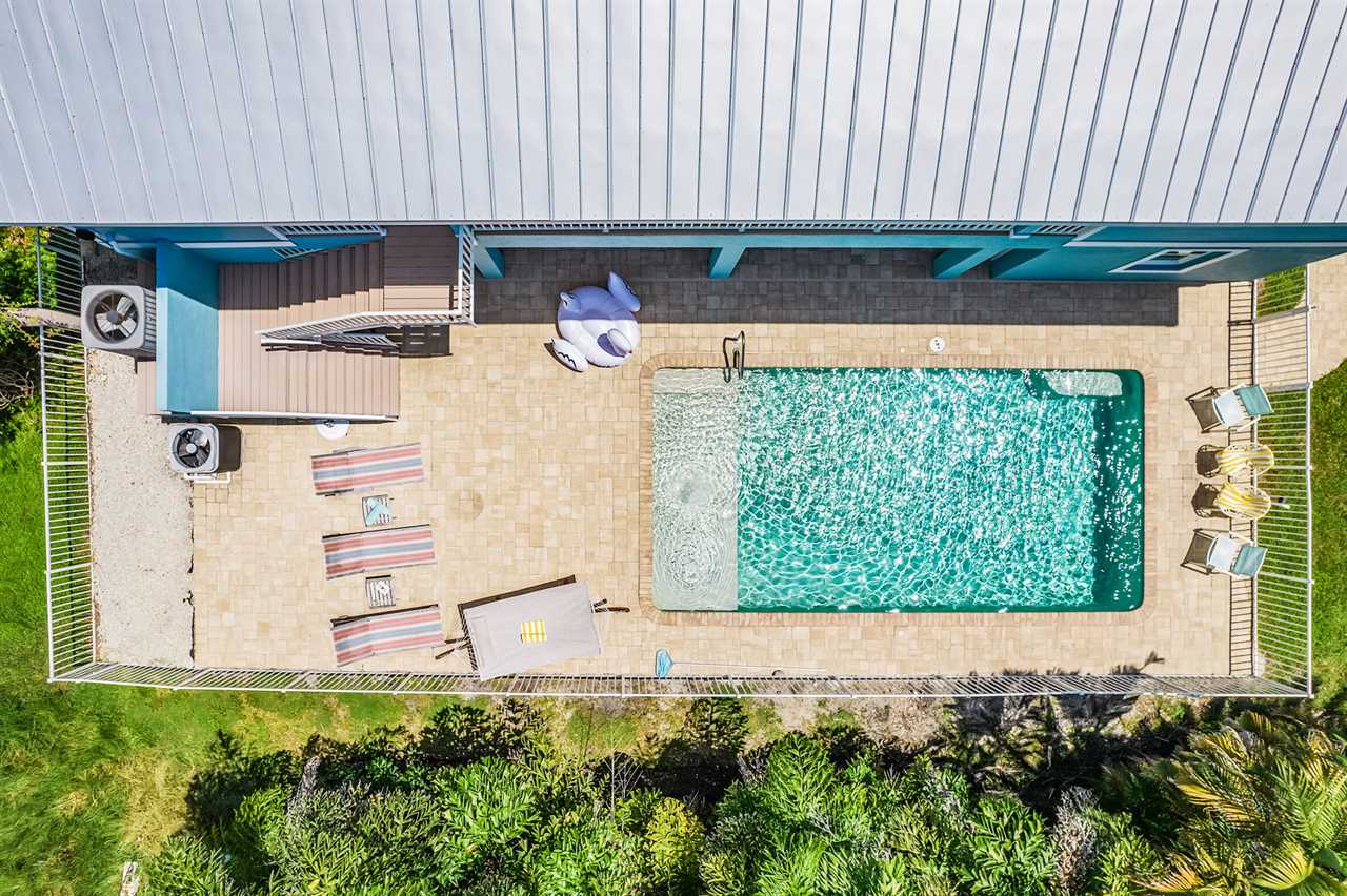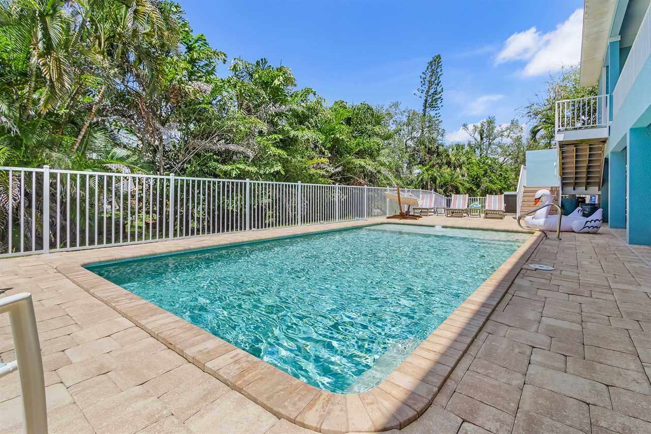 Outdoor Paradise: The lower level boasts a large heated pool surrounded by lush tropical palms, a paver deck with ample loungers, and a grilling area for poolside BBQs. The covered wrap-around porch is perfect for relaxing with a book or enjoying your morning coffee.