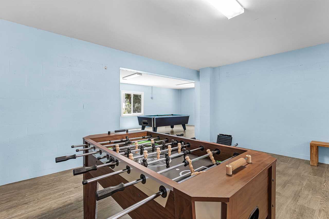 Game Room Fun: Unwind with some friendly competition in the lower-level game room, featuring ping-pong, pool, and foosball tables. A perfect space for guests of all ages to enjoy!