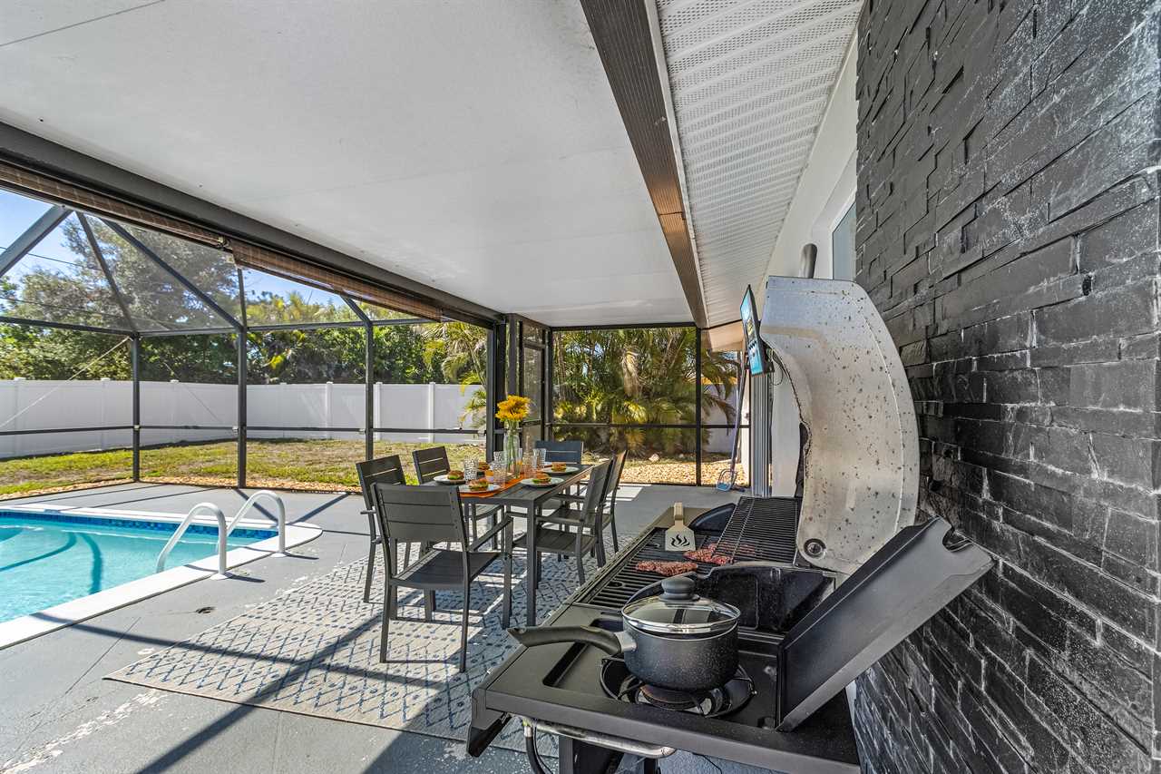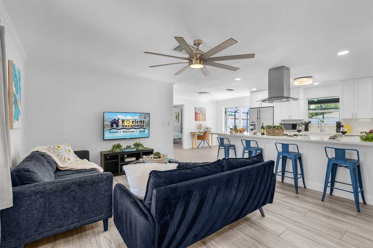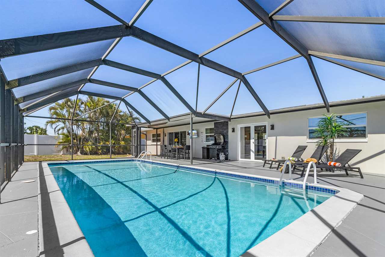 Casa Coronado Welcome to Casa Coronado, your slice of paradise in the heart of Cape Coral. This beautiful retreat is designed to offer the perfect blend of relaxation, modern luxury, and endless opportunities for adventure. Whether you're here to unwind by the pool, explore nearby attractions, or simply soak up the Florida sunshine, Casa Coronado is the ultimate destination for an unforgettable vacation. Here's what makes this home so special: Bedding Arrangement: 3 Bedrooms: 2 Bedrooms, each with a Queen-size bed offering plush bedding and a peaceful ambiance for restful nights. 1 Bedroom with 2 Twin beds perfect for younger guests or flexible sleeping arrangements. Top Features: Sleeps 6 Heated Outdoor Pool: Enjoy a dip year-round in the sparkling heated pool, surrounded by lush landscaping and a private pool cage. Spacious Outdoor Living: Enjoy the private yard, perfect for outdoor dining, grilling, or simply unwinding in the Florida sunshine. Luxurious Interior & Furnishings: Recently renovated, the home features modern furnishings and a welcoming open-concept layout, providing ample space for relaxation and socializing. Fully Equipped Kitchen: The modern kitchen boasts stainless steel appliances, ample storage, and a convenient breakfast bar, making it a chef's delight. Outdoor BBQ & Dining: Utilize the outdoor BBQ grill to prepare delicious meals, and create lasting memories while dining al fresco under the stars. Convenient Location: Located in a tranquil neighborhood, you are just minutes away from local parks, shopping, dining, and entertainment, allowing for easy exploration. Nearby Recreational Activities: Engage in water sports, visit nearby beaches, or explore charming local attractions that Cape Coral has to offer. Escape to Casa Coronado, where cozy accommodations, a friendly atmosphere, and opportunities for adventure await. Whether lounging poolside, enjoying a family BBQ, or heading out to explore Cape Coral's vibrant scene, this home is the ideal setting for your next getaway. Roelens Vacations is proud to partner with the city to promote recycling and make our community more sustainable and greener. Thank you for your cooperation and for being part of a more sustainable future! DISCLAIMERS: This home is pet-friendly for non-aggressive dogs (max 2) up to 50 lbs with a pet fee per pet The home has a minimum age requirement of 25 to book. Smoking is not allowed on the property.