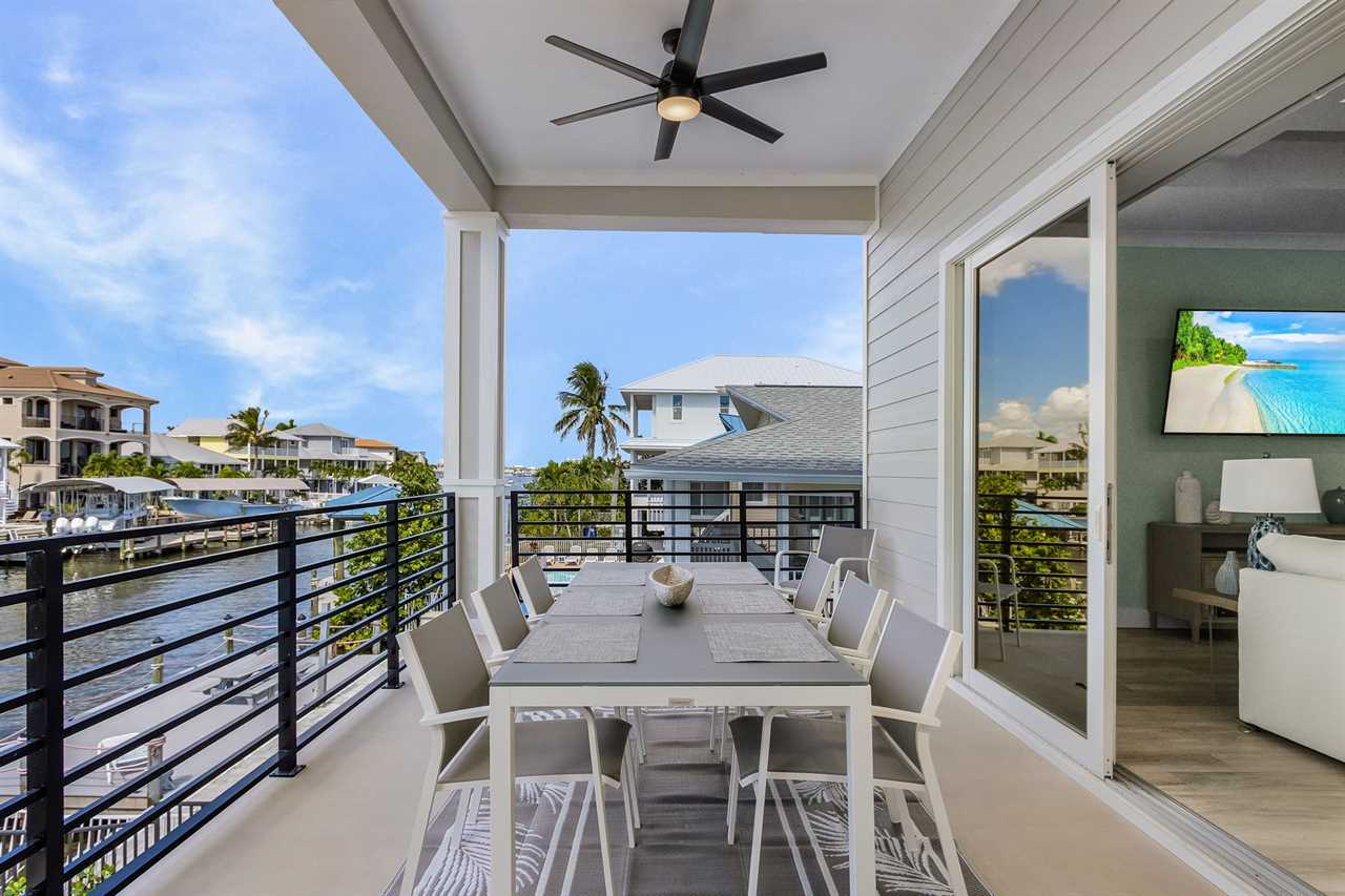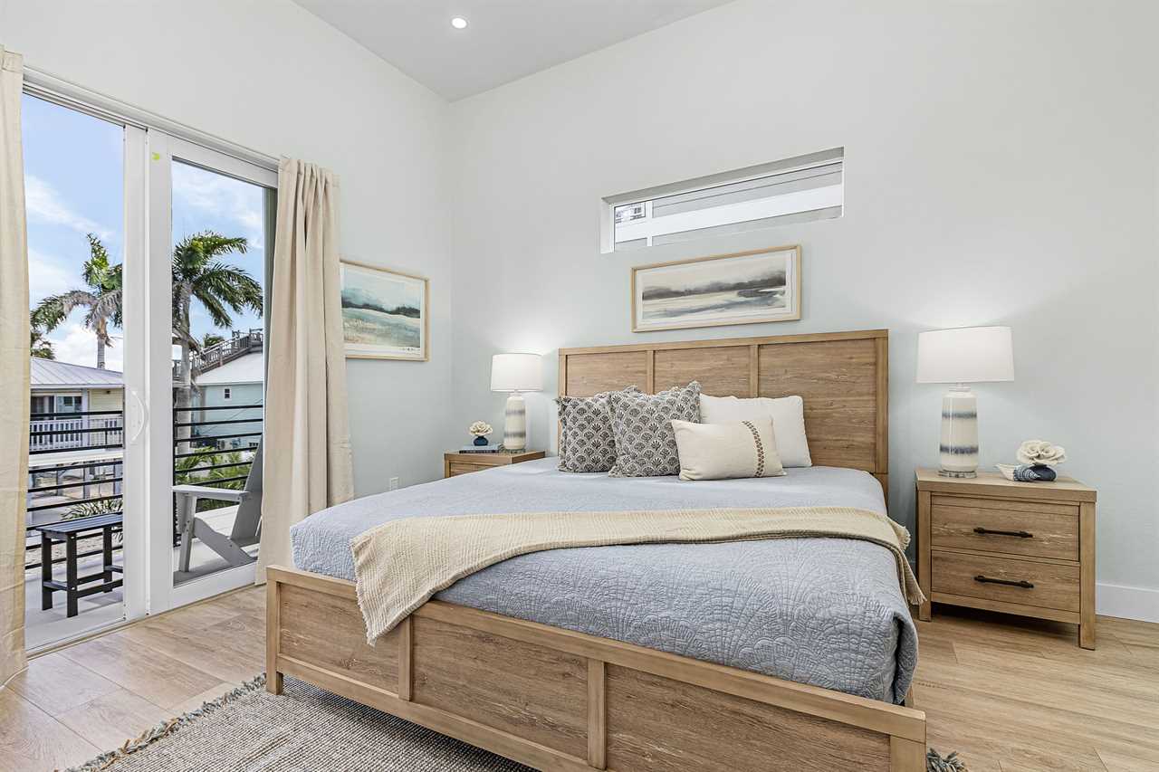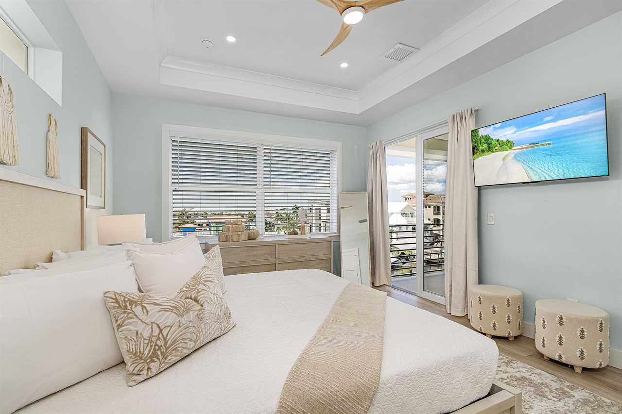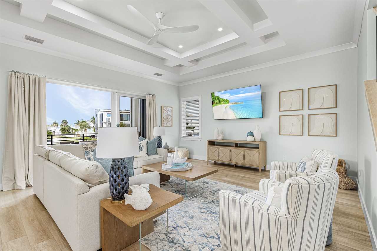 Inside, you'll find an inviting ambiance that blends modern elegance with coastal charm. The property boasts a beautiful canal view, allowing you to unwind while soaking in the serene surroundings. The open-concept living area on the second floor includes a pull-out sleeper sofa, offering extra flexibility for larger groups, while the well-equipped kitchen features a large island, refrigerator, oven, and all the essentials needed to prepare delicious meals. Guests can gather around the dining table or take their meals outdoors to the patio for al fresco dining.