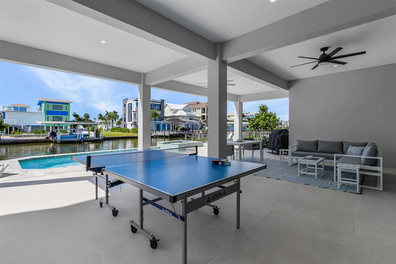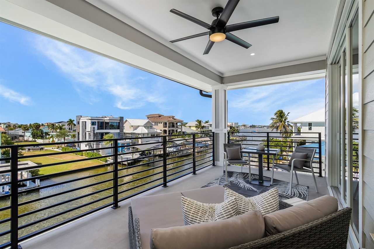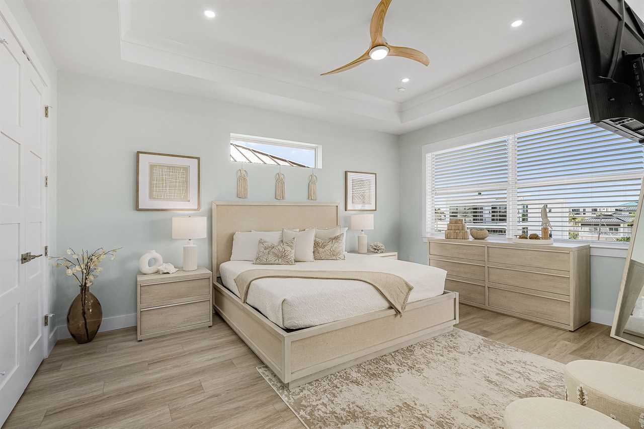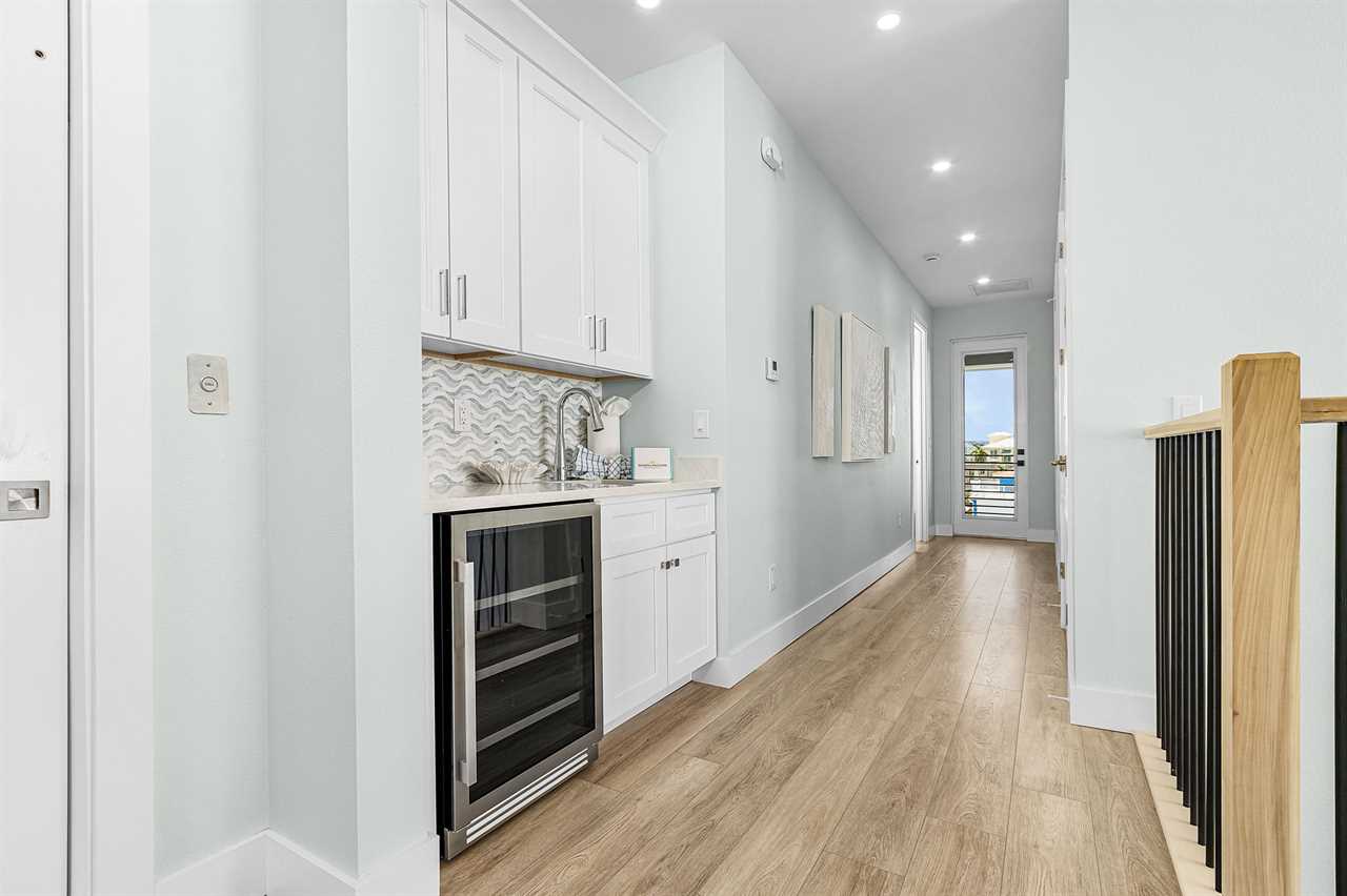 Inside, you'll find an inviting ambiance that blends modern elegance with coastal charm. The property boasts a beautiful canal view, allowing you to unwind while soaking in the serene surroundings. The open-concept living area on the second floor includes a pull-out sleeper sofa, offering extra flexibility for larger groups, while the well-equipped kitchen features a large island, refrigerator, oven, and all the essentials needed to prepare delicious meals. Guests can gather around the dining table or take their meals outdoors to the patio for al fresco dining.