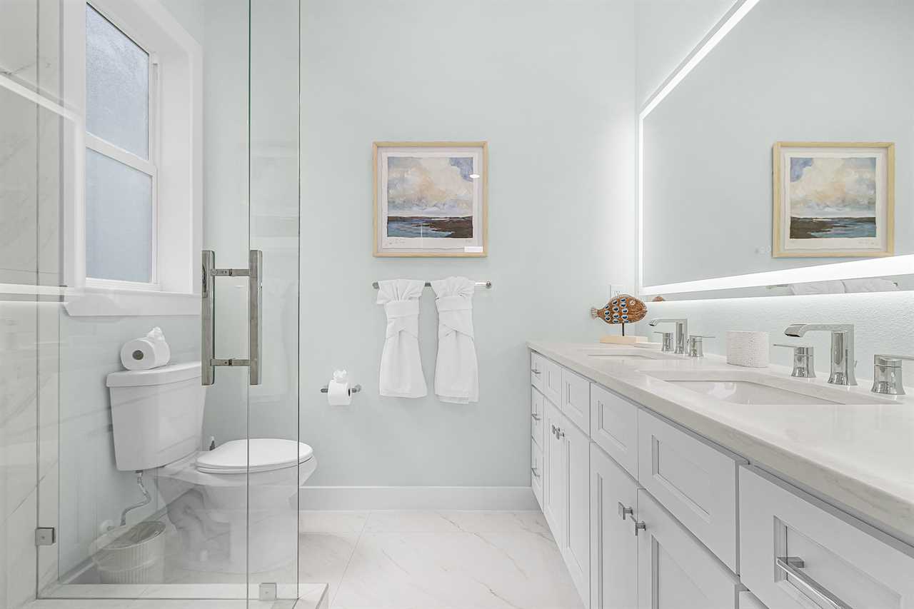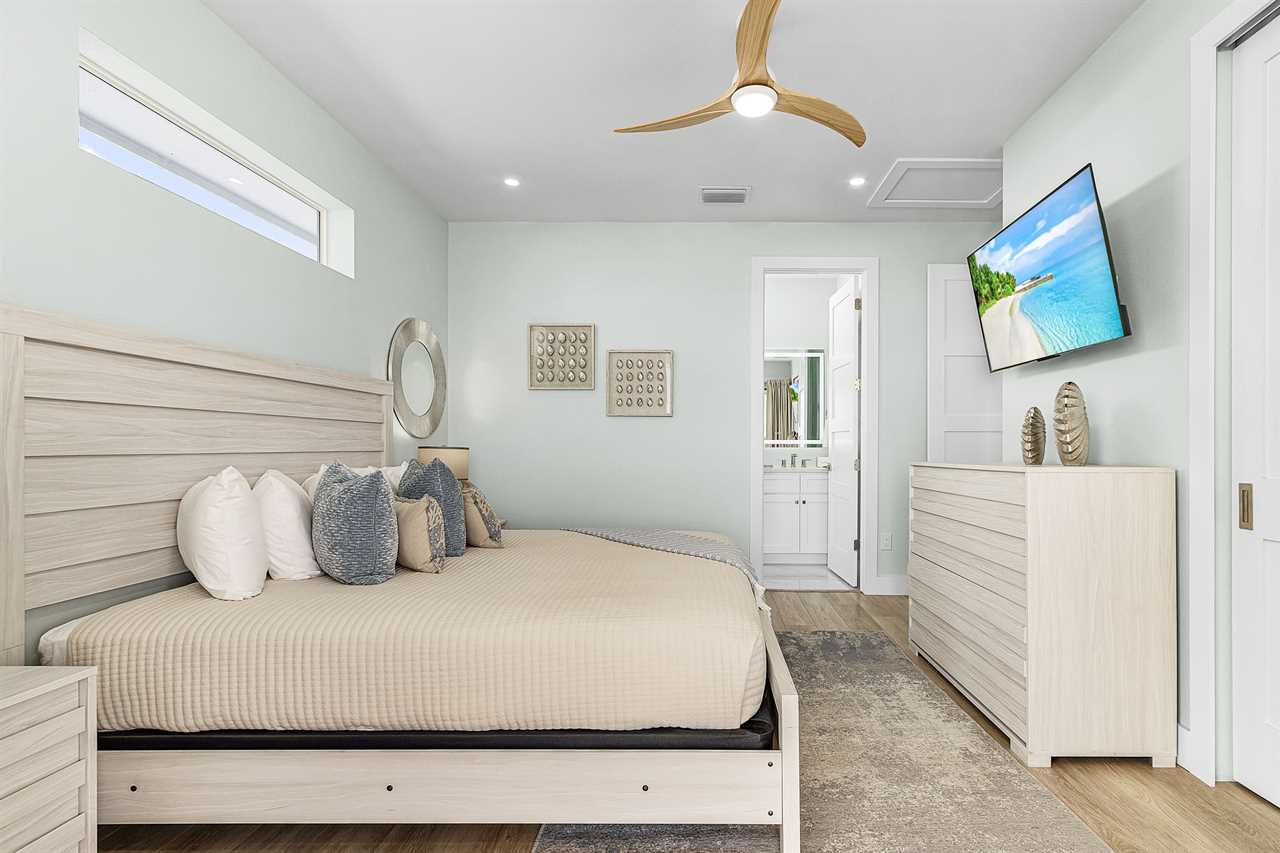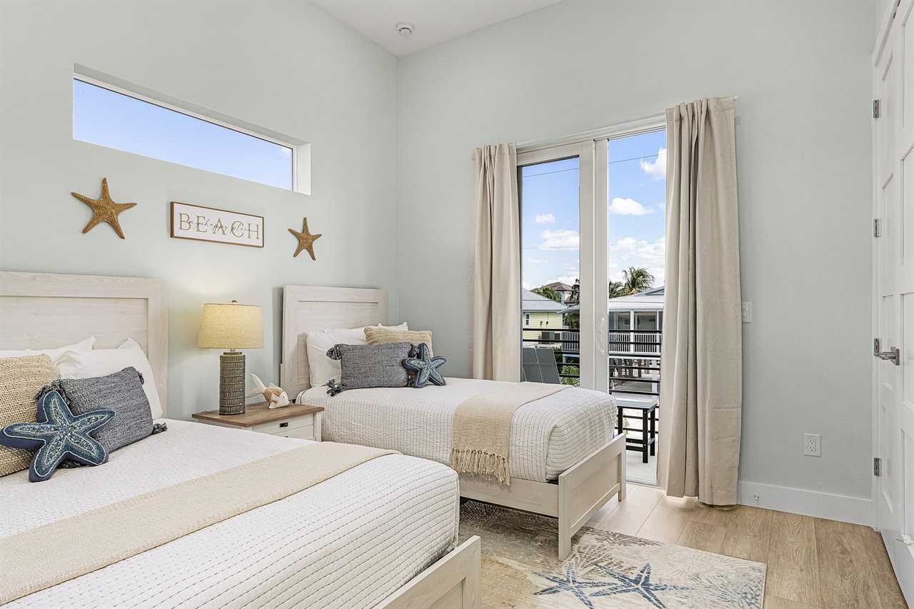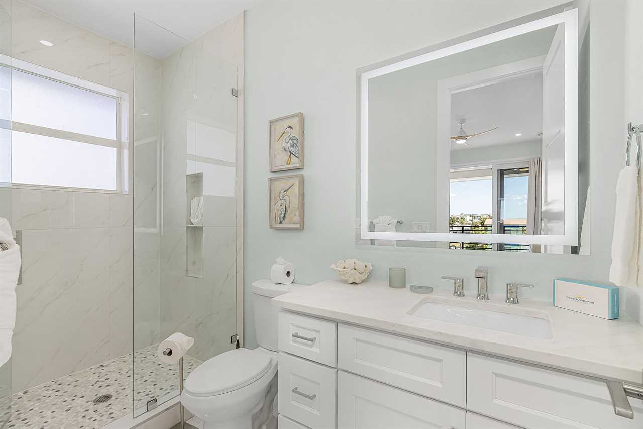 The home's thoughtful layout ensures comfort for everyone. On the second floor, one bedroom offers both a twin and a full bed with an ensuite bathroom featuring a walk-in shower, while another bedroom includes a king bed and ensuite bathroom with a shower/tub combo and dual sink vanity. On the third floor, there are three additional guest bedrooms with king beds—two with ensuite bathrooms that include walk-in showers and one with an ensuite bathroom featuring a shower/tub combo. The third floor also hosts the luxurious primary suite, complete with a king bed, a spa-like bathroom with a soaker tub, and a full walk-in shower room for the ultimate indulgence.