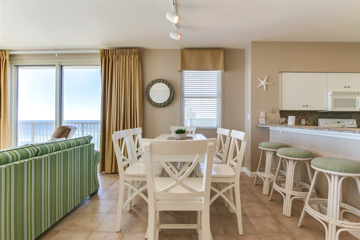 Enjoy home-cooked meals in the fully equipped kitchen, complete with bar seating for 3 and a dining table for 6. The highlight of this condo is the private balcony, where you can take in breathtaking Gulf of Mexico views while sipping your morning coffee or watching the sunset.