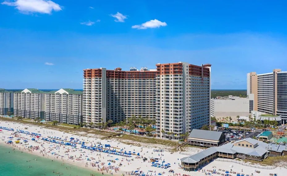 Shores of Panama offers unparalleled resort amenities, including a 14,000-square-foot lagoon-style pool, a heated indoor pool, hot tubs, a fitness center, and direct beach access. A 12-level parking garage provides easy and secure parking during your stay.