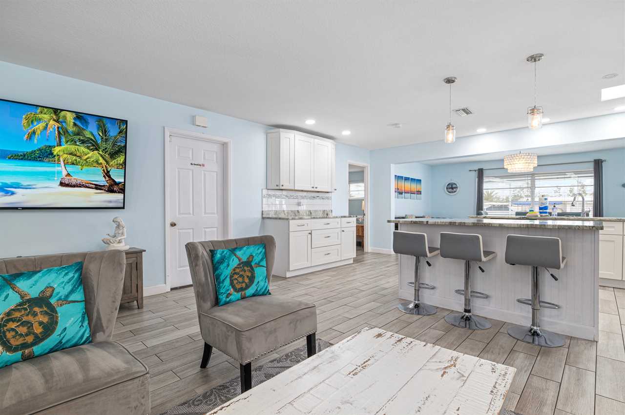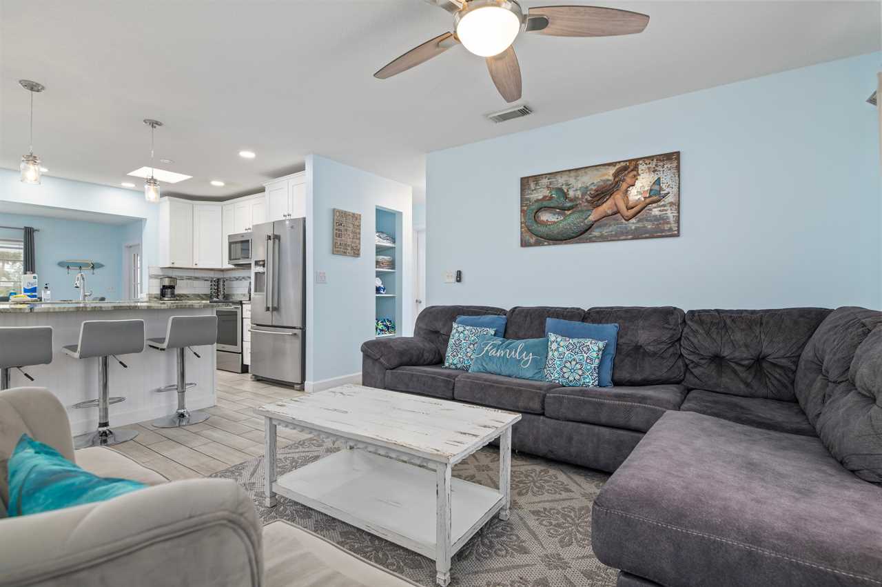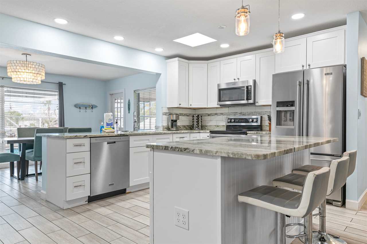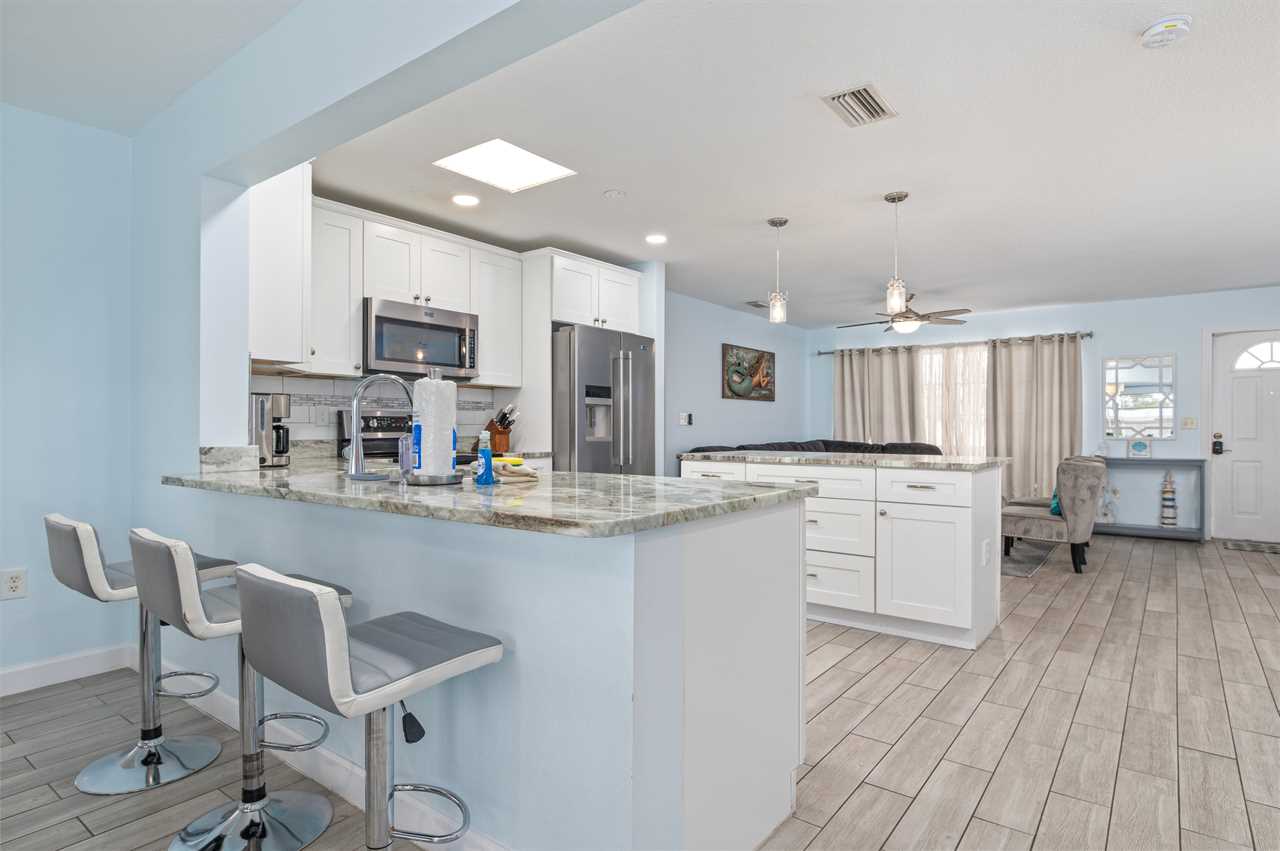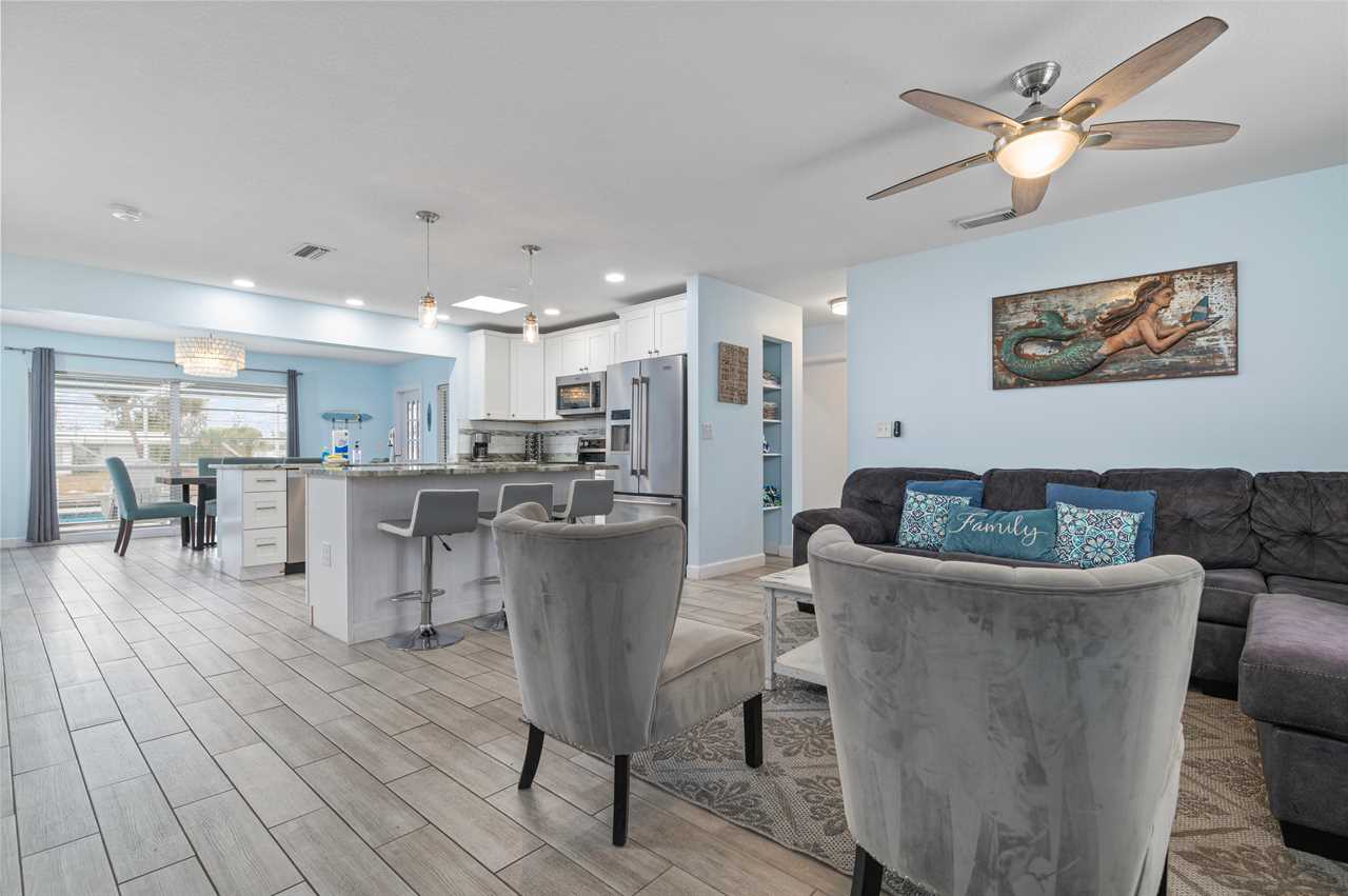 When pulling up to the property you instantly notice the well-manicured exterior and enough space for parking even if you have a trailer! Walking into the front door your eyes are instantly pulled to all the natural light coming off the back of the property overlooking the pool and canal. The main living area has plenty of space for seating and everyone to gather around and play games and enjoy family time! The kitchen comes fully equipped with everything needed to make your favorite home-cooked meals!