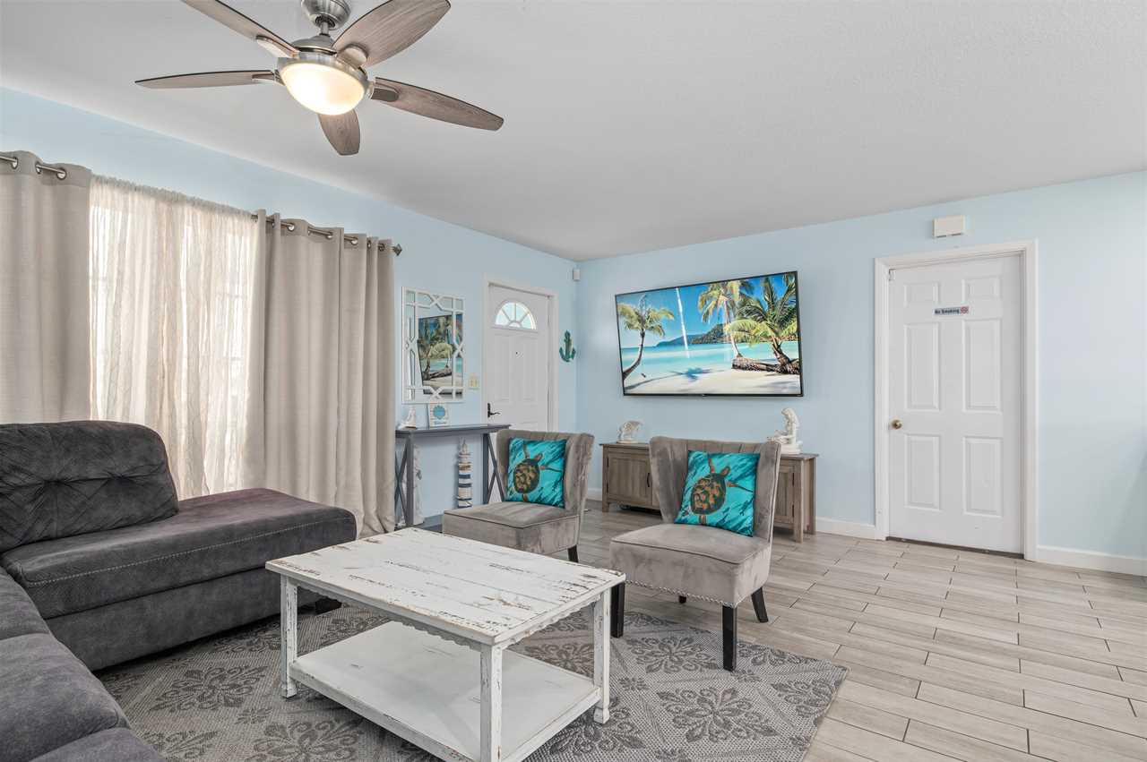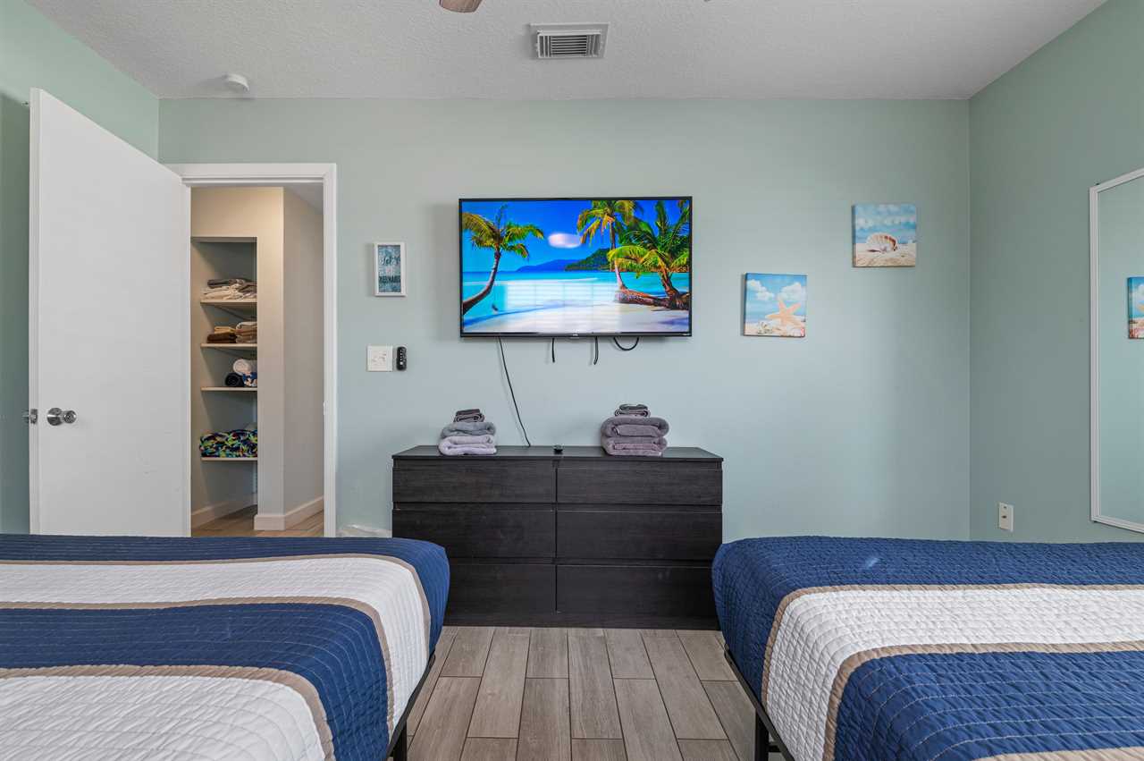 Trying to figure out sleeping arrangements? This property offers a split floor plan with Bedroom 1 on the left side of the property and two additional bedrooms to the right when first walking in the door. Bedroom 1 offers a king-size bed, sleeper sofa for additional sleeping options, a mounted smart tv as well as an ensuite bathroom with a stand-up shower. Bedroom 2 offers a King size bed and Bedroom 3 offers a set of full-sized beds. A shared bathroom is located in this hallway as well with a tub/shower combo. Additional sleeping is offered on the sleeper sofa in the living room that converts to a Full-size bed.