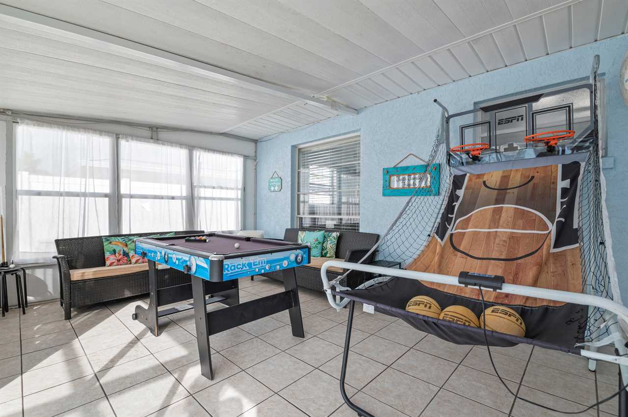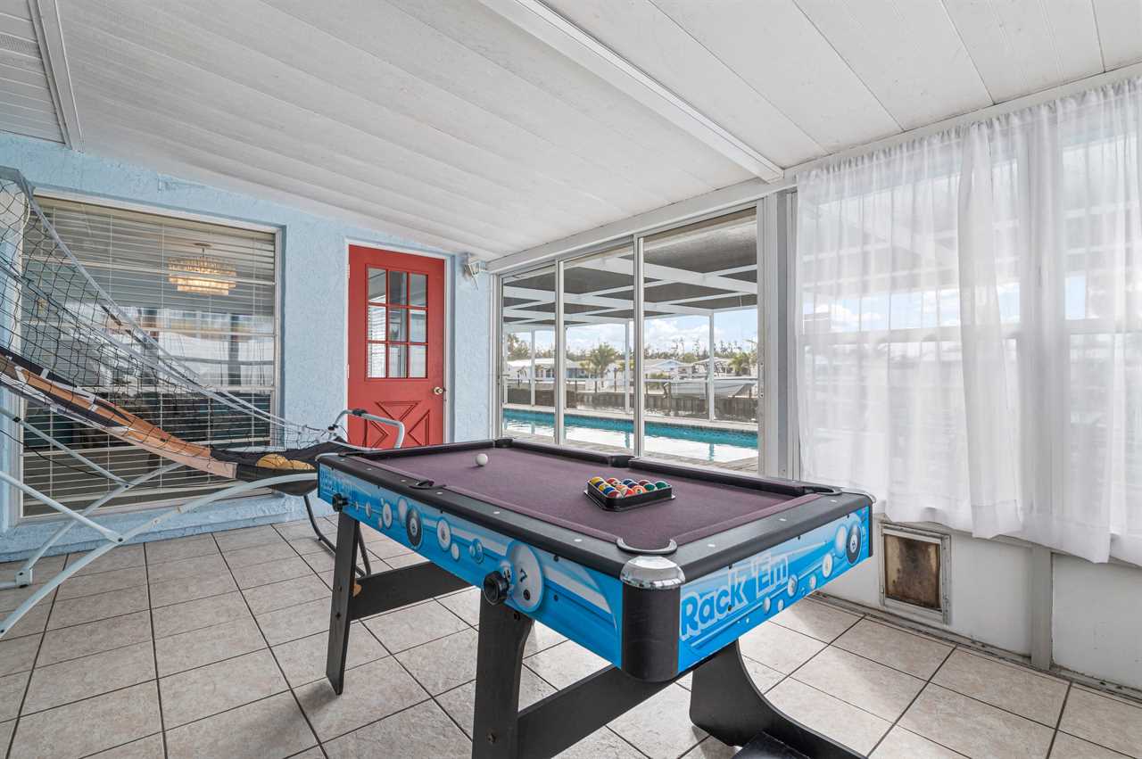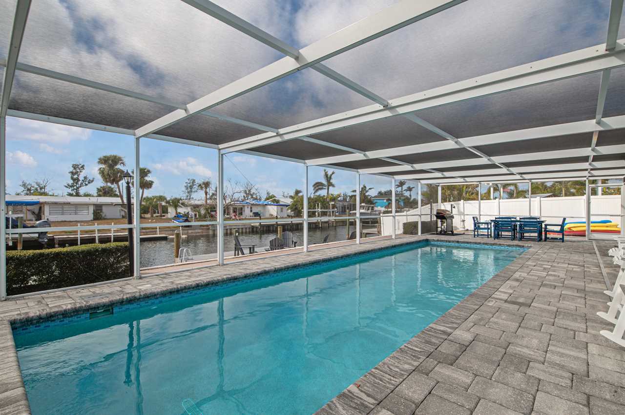 When heading outside this property offers tons of activities for everyone to enjoy! Whether its shooting pool or playing hoops in the Florida room or playing a fun game of "Marco, Polo", you can spend your entire day outside enjoying the amazing weather Florida has to offer! When you are ready to cool off jump in the pool or relax on a chilly night by the fire pit! Do you enjoy fishing? Dock lights provided on the exterior that makes fishing off the back of the property a fun experience when enjoying the local fishery! There is also a dining set outside for dinners by the water or for quick snacks during fun at the pool. This pool faces west so it will be a great place to hang out at the end of the day and catch the beautiful sunsets that Florida has to offer.