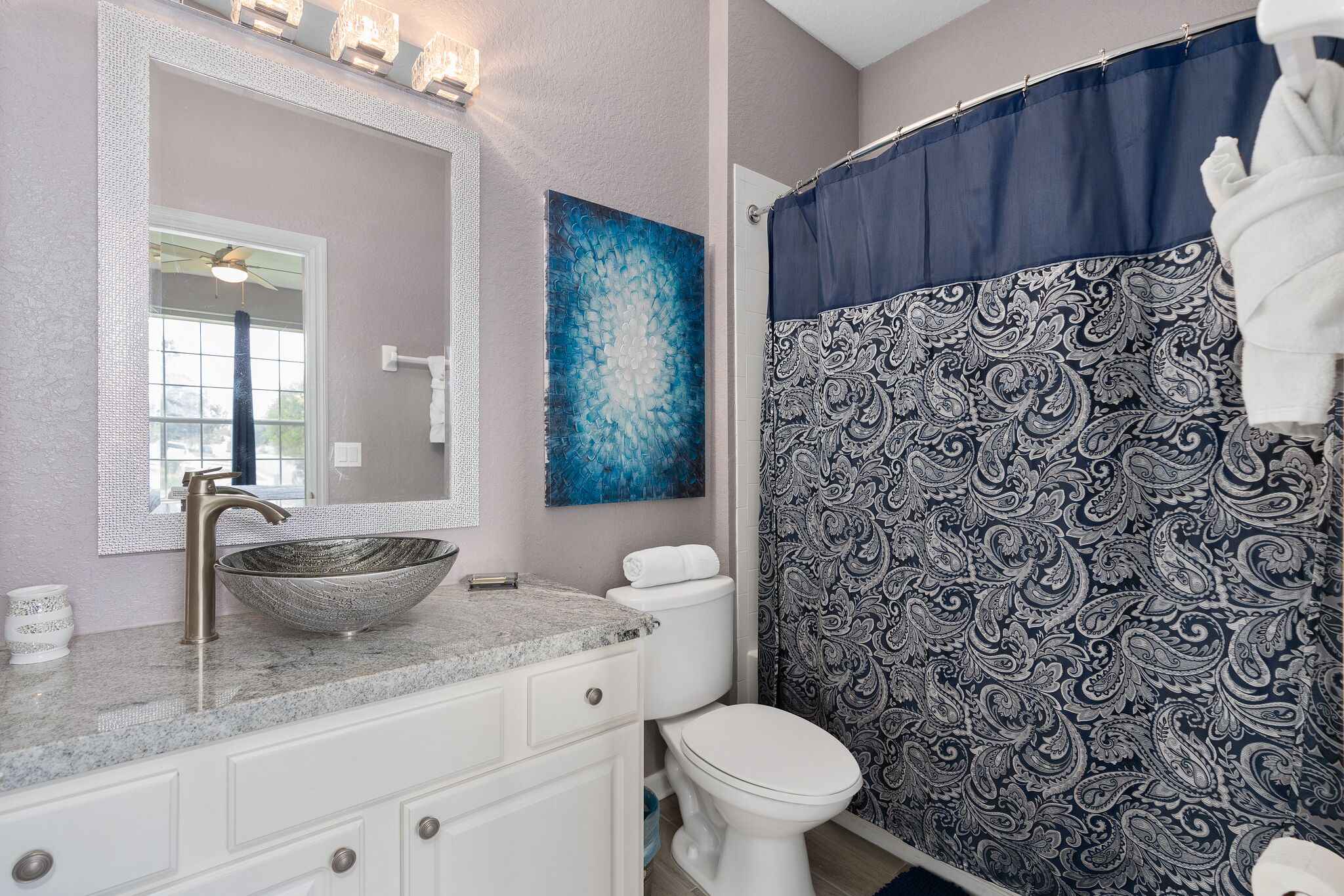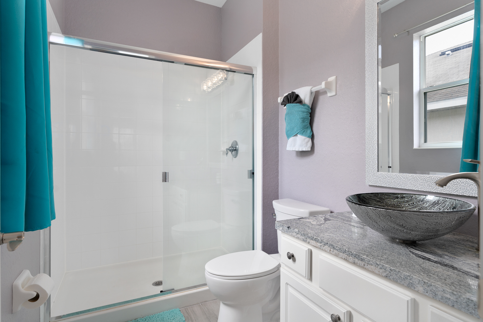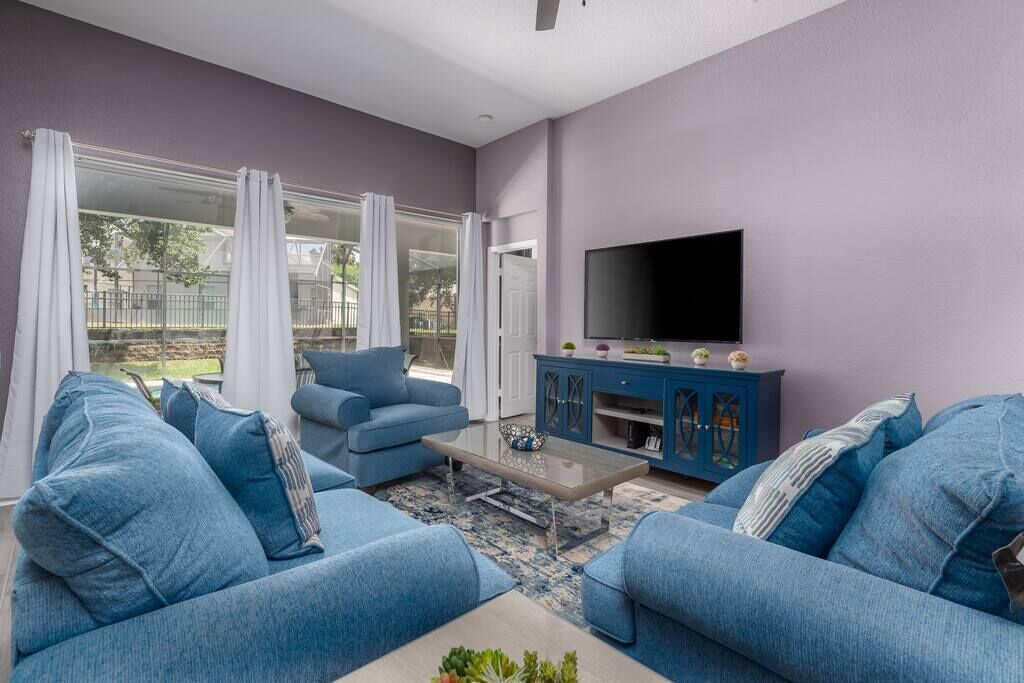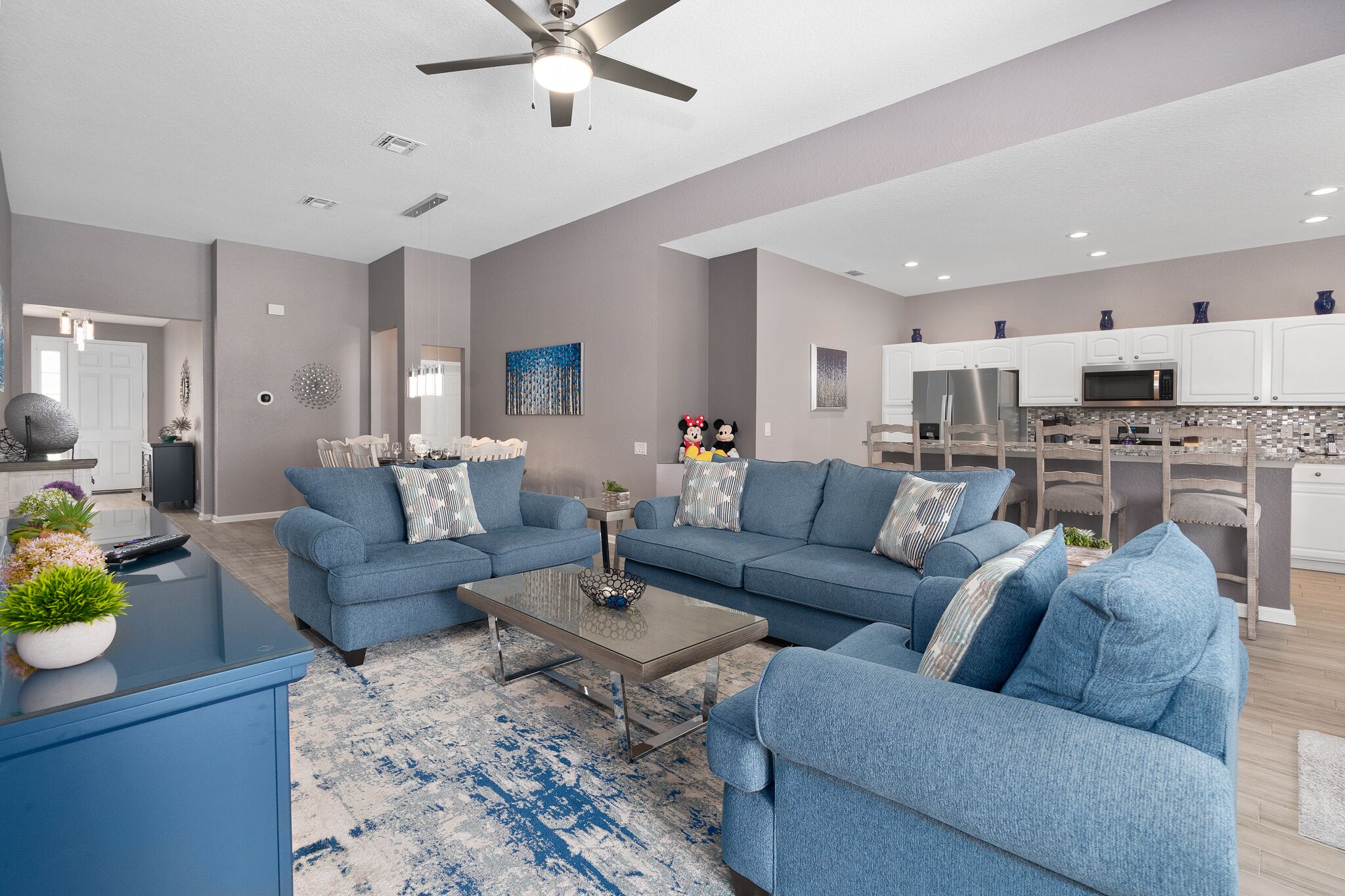 Welcome to Chillax Inn Teascone, a luxurious 4-bed, 4-bath vacation rental in Windsor Hills Resort, just minutes from Disney World! This one-level home features two king master suites and themed bedrooms, perfect for families. Enjoy a private pool, modern kitchen, and resort amenities, including a waterpark, fitness center, and playground. Your perfect family getaway awaits! 7737 Teascone Blvd, Kissimmee, Florida 34747 The Space: LIVING ROOM: Private living room Smart TV with satellite/cable Free Wi-Fi KITCHEN: Fully equipped kitchen with modern appliances Keurig Duo coffee maker Dining table with seating for 8 Kitchen island with seating for 4 BEDROOM #1: King bed with ensuite bathroom Premium linens and bedding BEDROOM #2: King bed with ensuite bathroom Premium linens and bedding BEDROOM #3 (Frozen Themed): Full bed with ensuite bathroom Themed decor BEDROOM #4 (Star Wars Themed): Full/Full bunk bed with ensuite bathroom Themed decor BATHROOMS: 4 full bathrooms, all ensuite Towels and basic toiletries provided OUTSIDE: Private pool (heated upon request for $30 per night) Lanai/Gazebo (covered) Outdoor seating with dining for 6 Sun loungers available RESORT AMENITIES: Communal pool (closed Sept 3-Oct 4, 2024 for resurfacing) Waterpark and children’s pool Fitness room and tennis courts Playground and sidewalks throughout the resort FAMILY FEATURES: Baby gate, Pack N Play/Travel crib Room darkening shades in bedrooms Book your stay and experience a magical vacation near all the Orlando attractions! NEARBY: Disney Magic Kingdom (~5 mi) - Step into a world of fairy tales with iconic attractions, beloved characters, and the enchanting Cinderella Castle. Disney Animal Kingdom (~6 mi) - Explore exotic animals, thrilling rides, and live shows in a lush, immersive environment. Disney Epcot (~8 mi) - Discover global cultures, futuristic technology, and culinary delights in this park that celebrates human achievement. Disney Hollywood Studios (~9 mi) - Step into the world of movies and TV shows with themed rides, entertainment, and attractions. Universal Studios Florida (~16 mi) - Immerse yourself in blockbuster movies and TV shows with thrilling rides and interactive attractions. SeaWorld Orlando (~13 mi) - Dive into marine life exhibits, thrilling rides, and live shows at this famous aquatic theme park. Celebration Golf Club (~8 mi) - Play a round at this beautiful course designed by renowned architects, offering a challenging yet enjoyable experience. Celebration Town Center (~9 mi) - Stroll through this charming community with shops, restaurants, and picturesque scenery. Old Town Kissimmee (~8 mi) - Enjoy classic car shows, shopping, dining, and family-friendly entertainment in this charming venue.