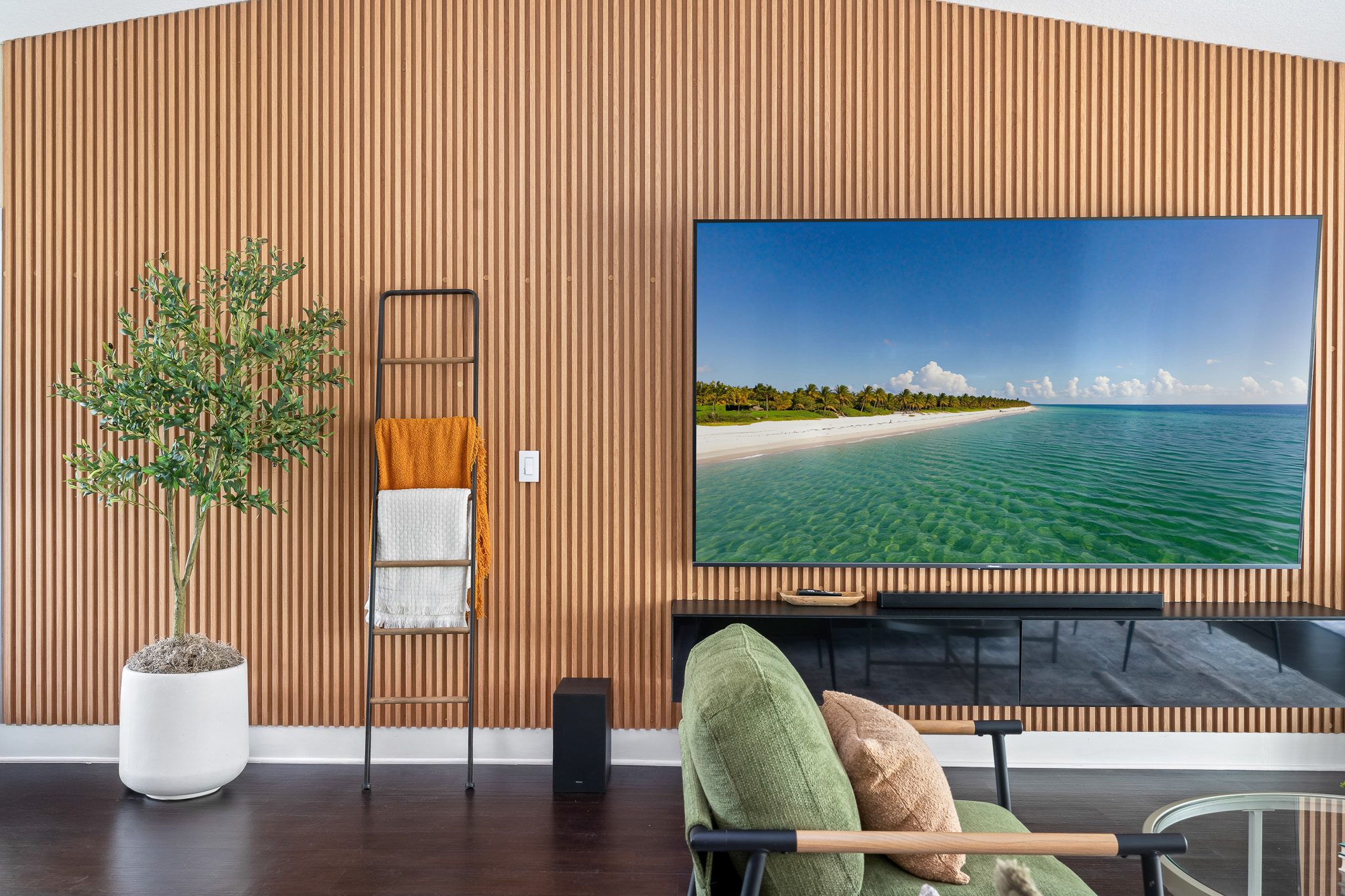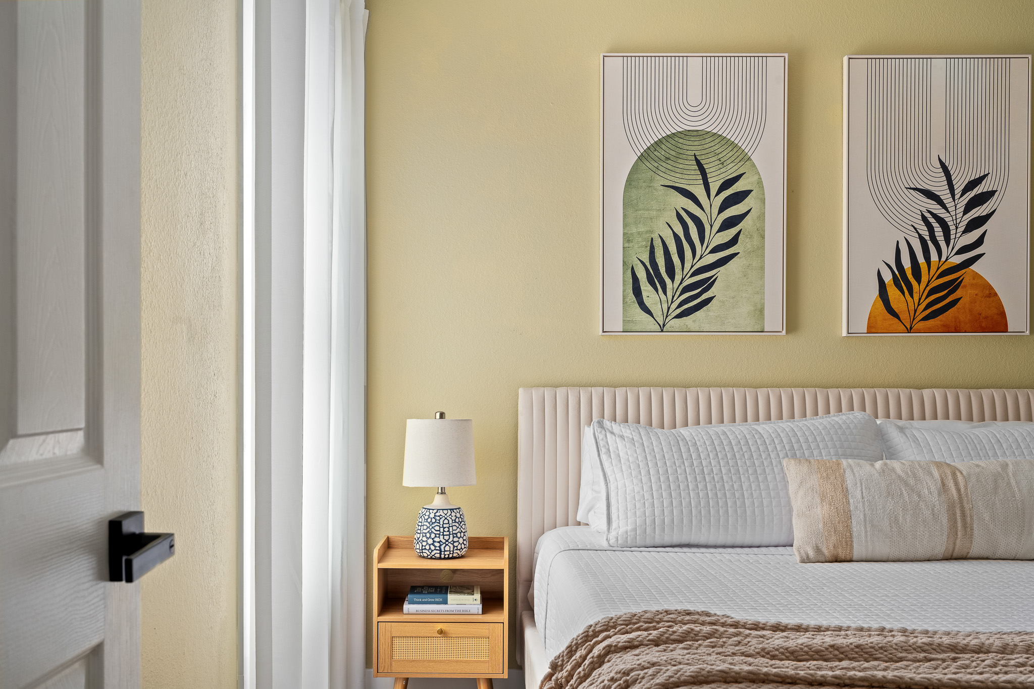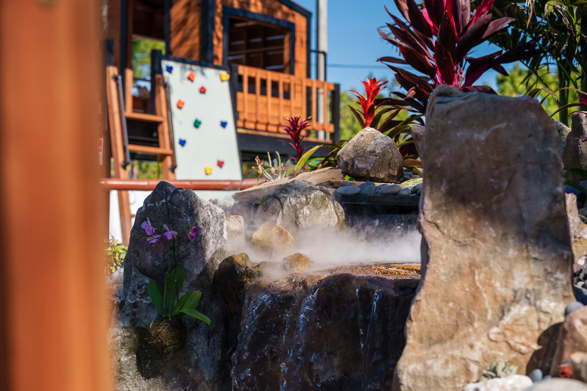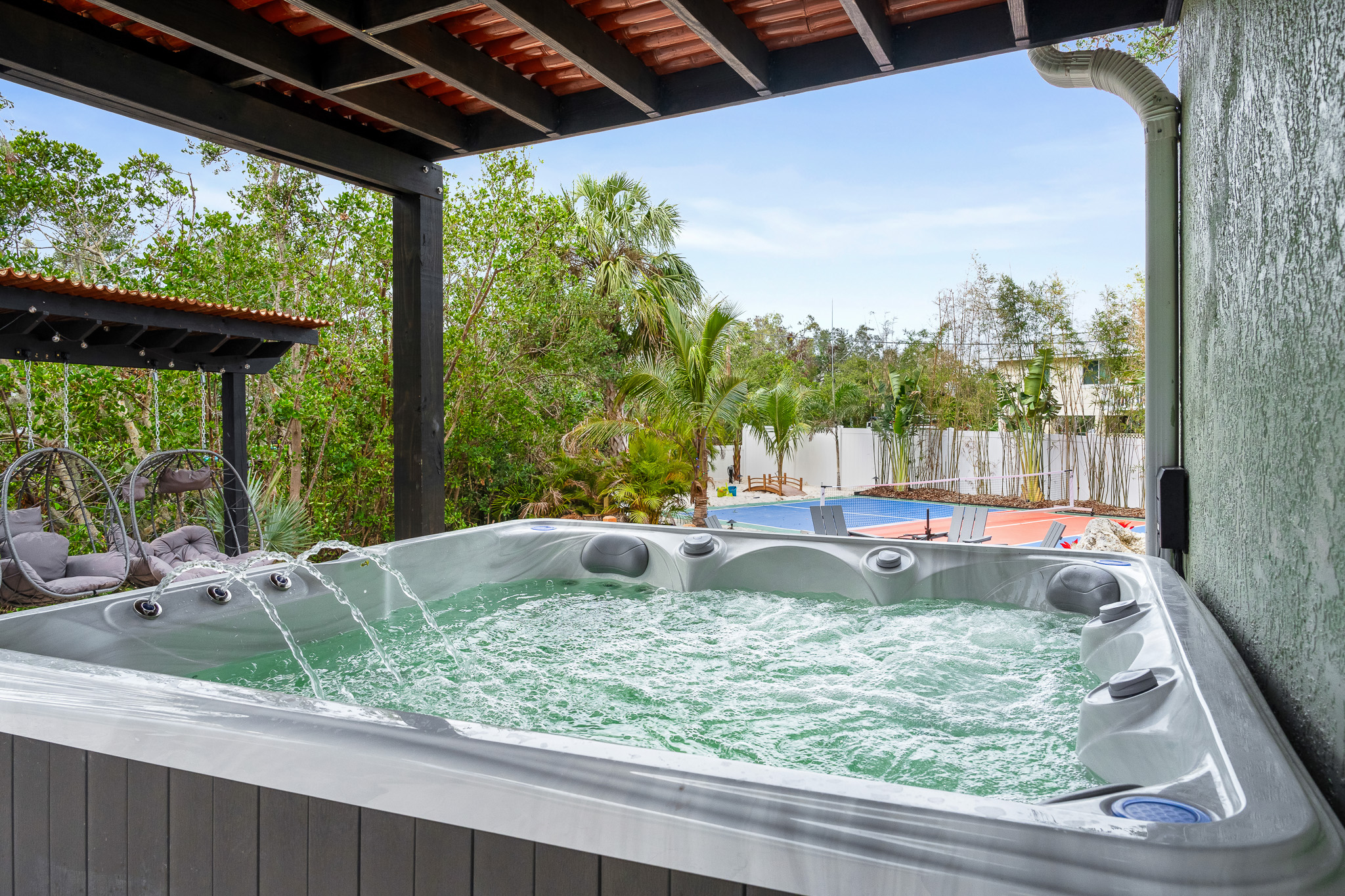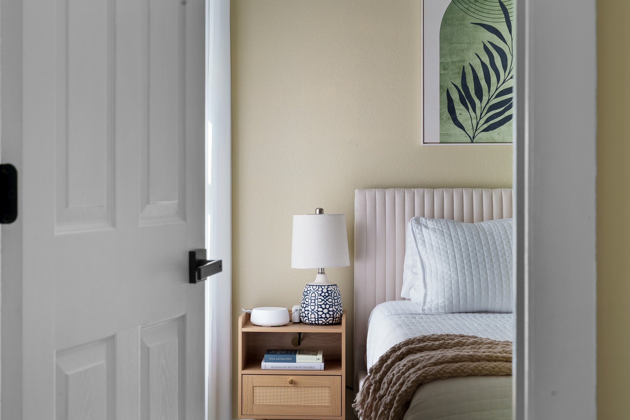By midday, the backyard becomes the heart of the stay. Float in the heated pool, relax in the hot tub beneath the bamboo pergola, or challenge the family to a pickleball match while the grill gets going. As the sun sets, gather around the fire pit, listen to the waterfalls, and watch the lights reflect off the water it feels like your own private resort.
