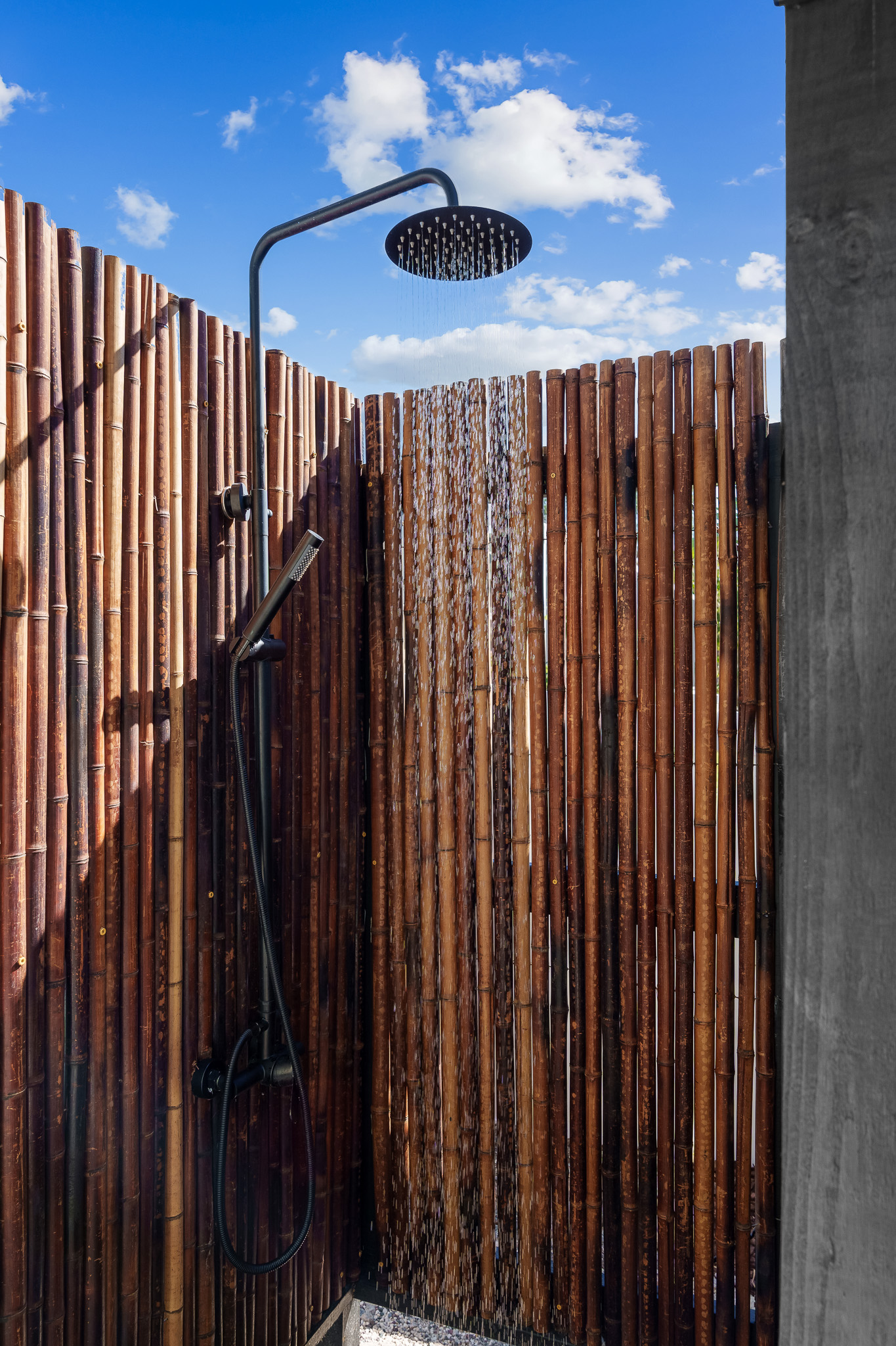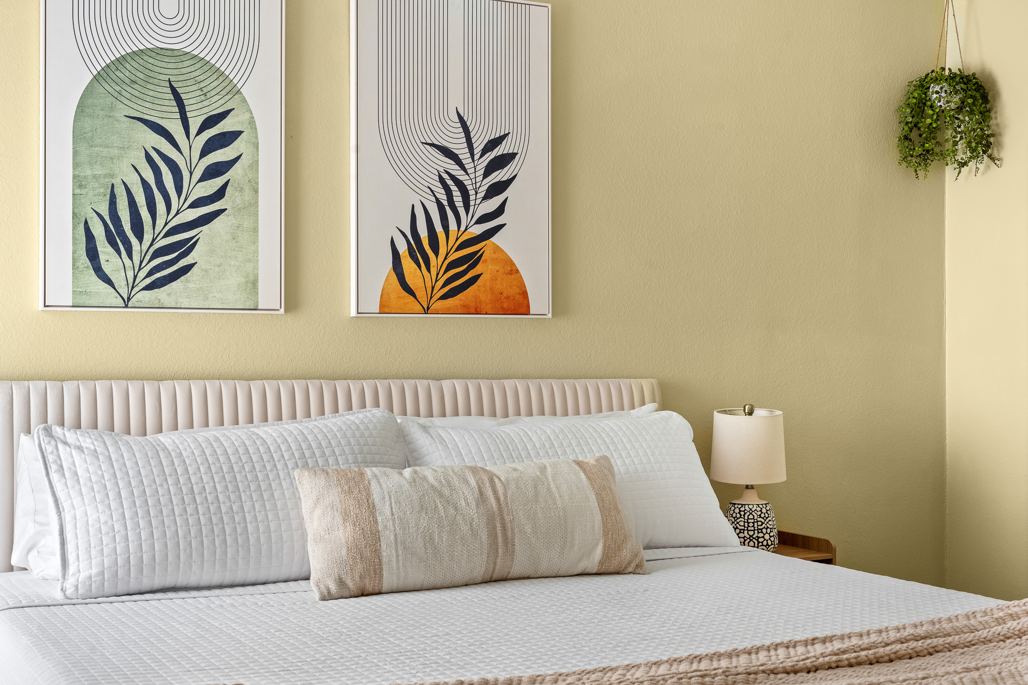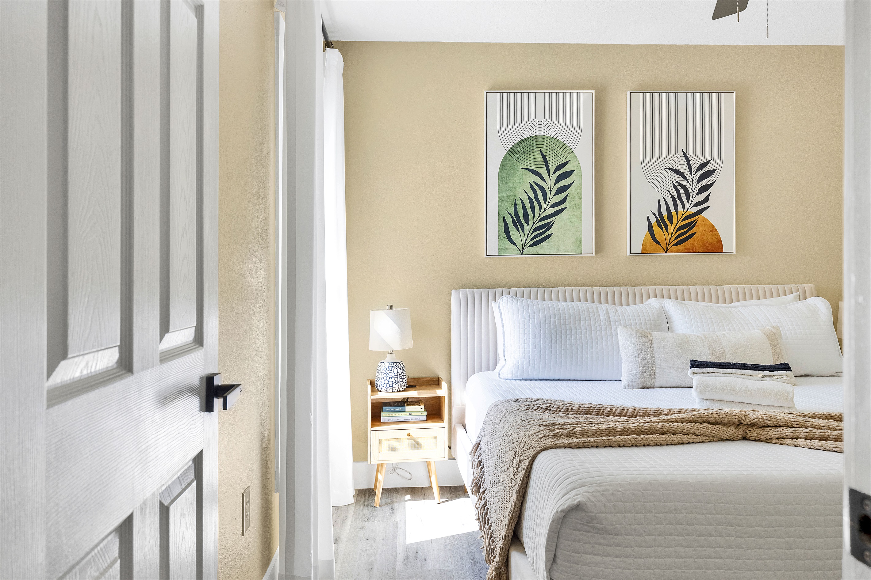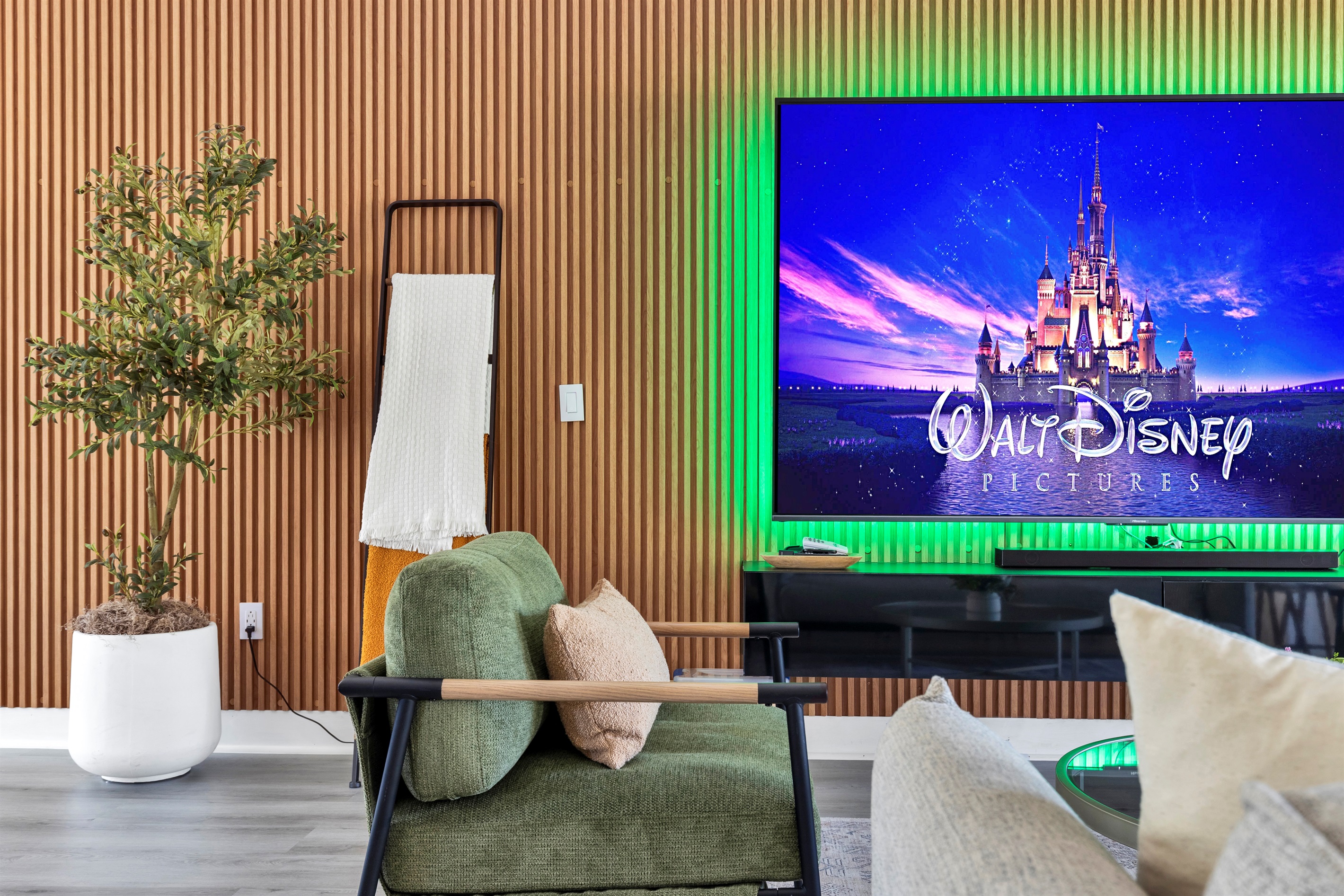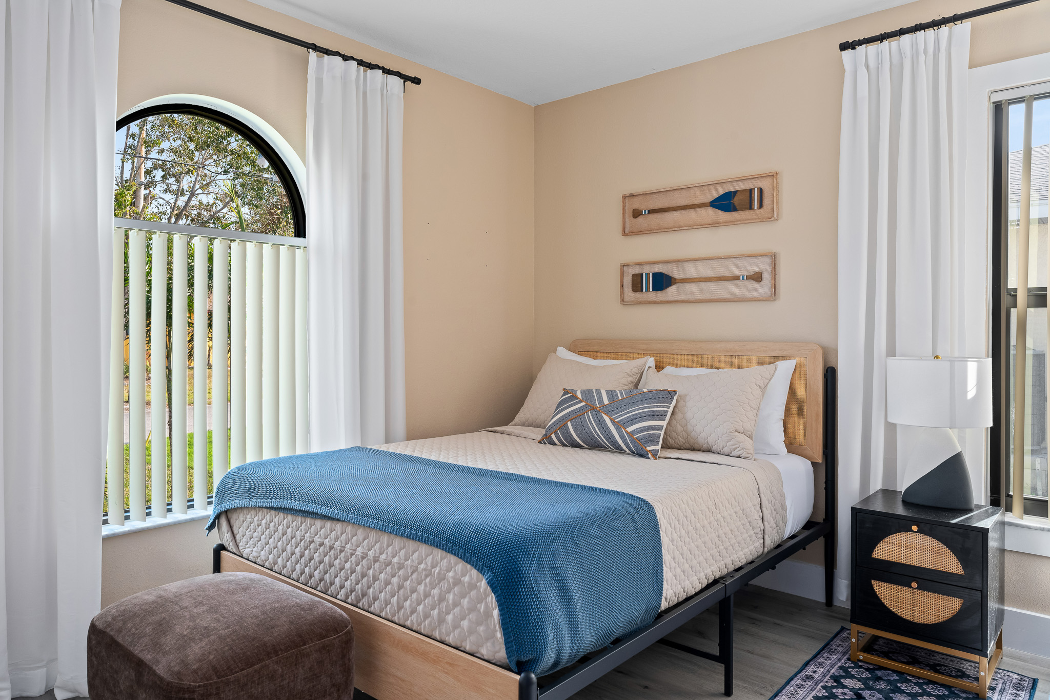 By midday, the backyard becomes the heart of the stay. Float in the heated pool, relax in the hot tub beneath the bamboo pergola, or challenge the family to a pickleball match while the grill gets going. As the sun sets, gather around the fire pit, listen to the waterfalls, and watch the lights reflect off the water it feels like your own private resort.