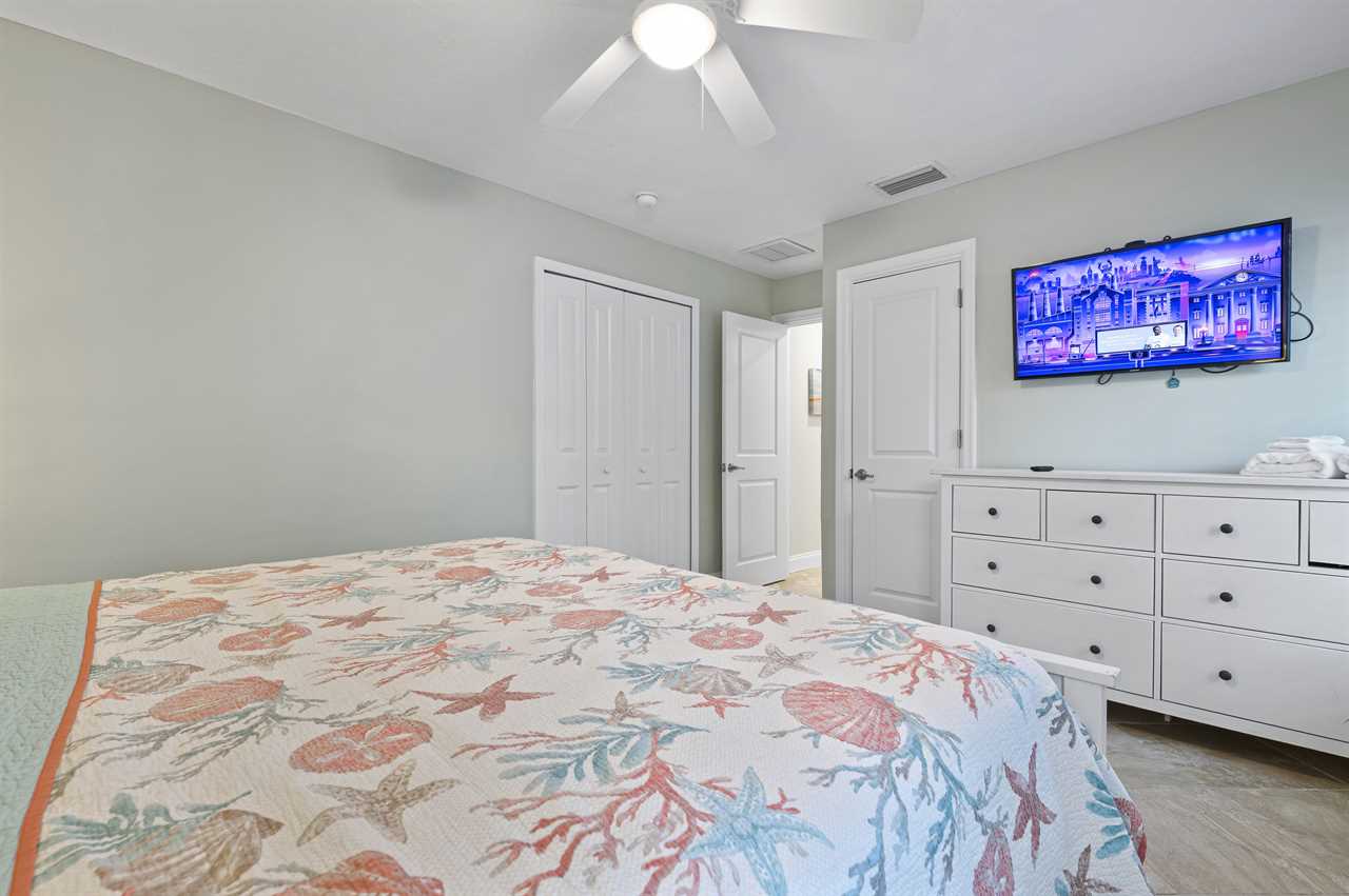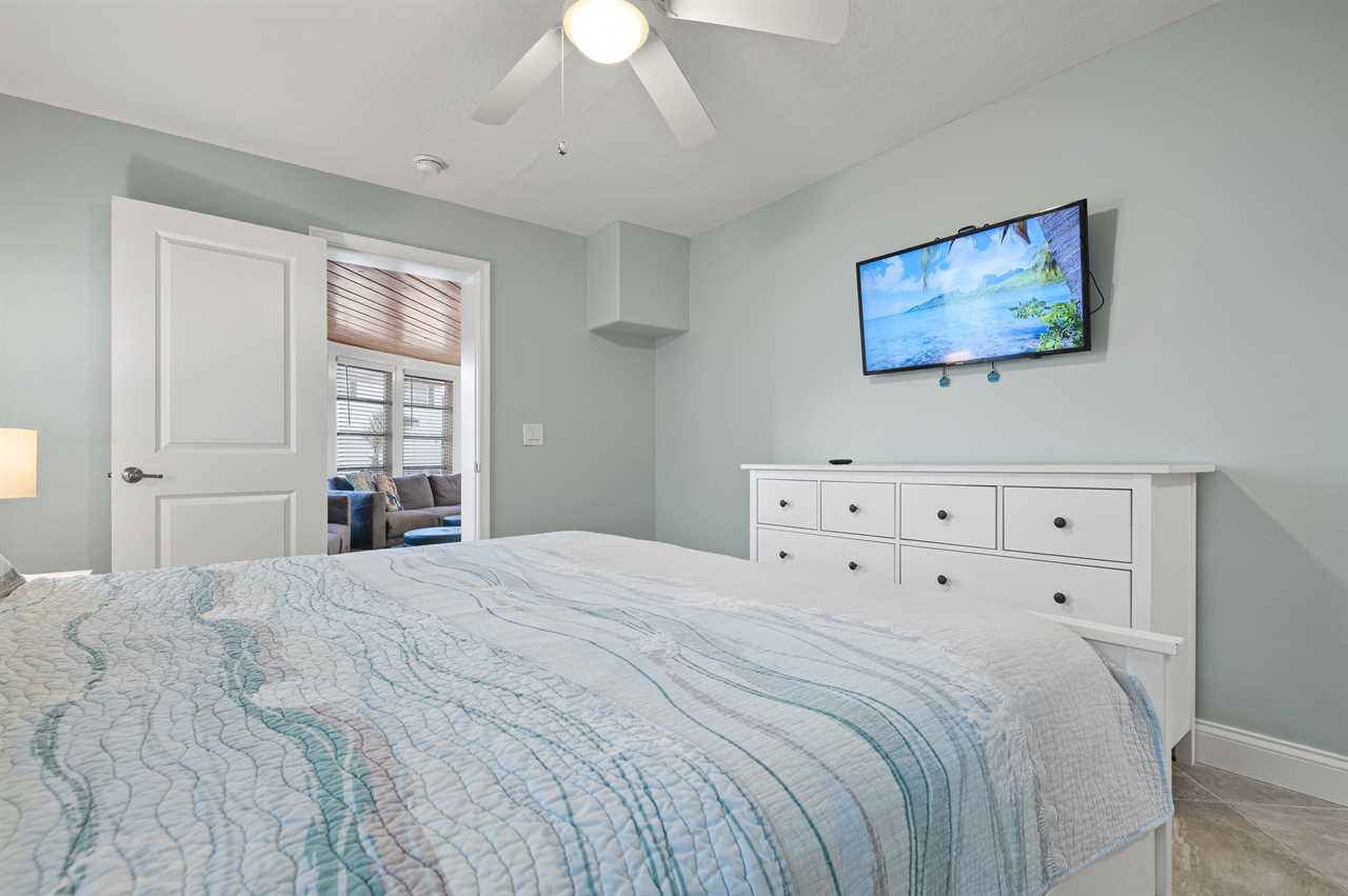 Trying to figure out sleeping arrangements? The Master bedroom sits on the right side of the home and offers a king size bed, ensuite bathroom, and smart TV. Bedroom 2 sits in the middle of the home and offers a twin-over-twin bunk bed as well as a separate twin size bed as well as a smart TV. Bedroom 3 sits on the left of the home just through the kitchen and offers a King size bed as well as a smart TV. Bedrooms 2 & 3 share a bathroom situated between them.