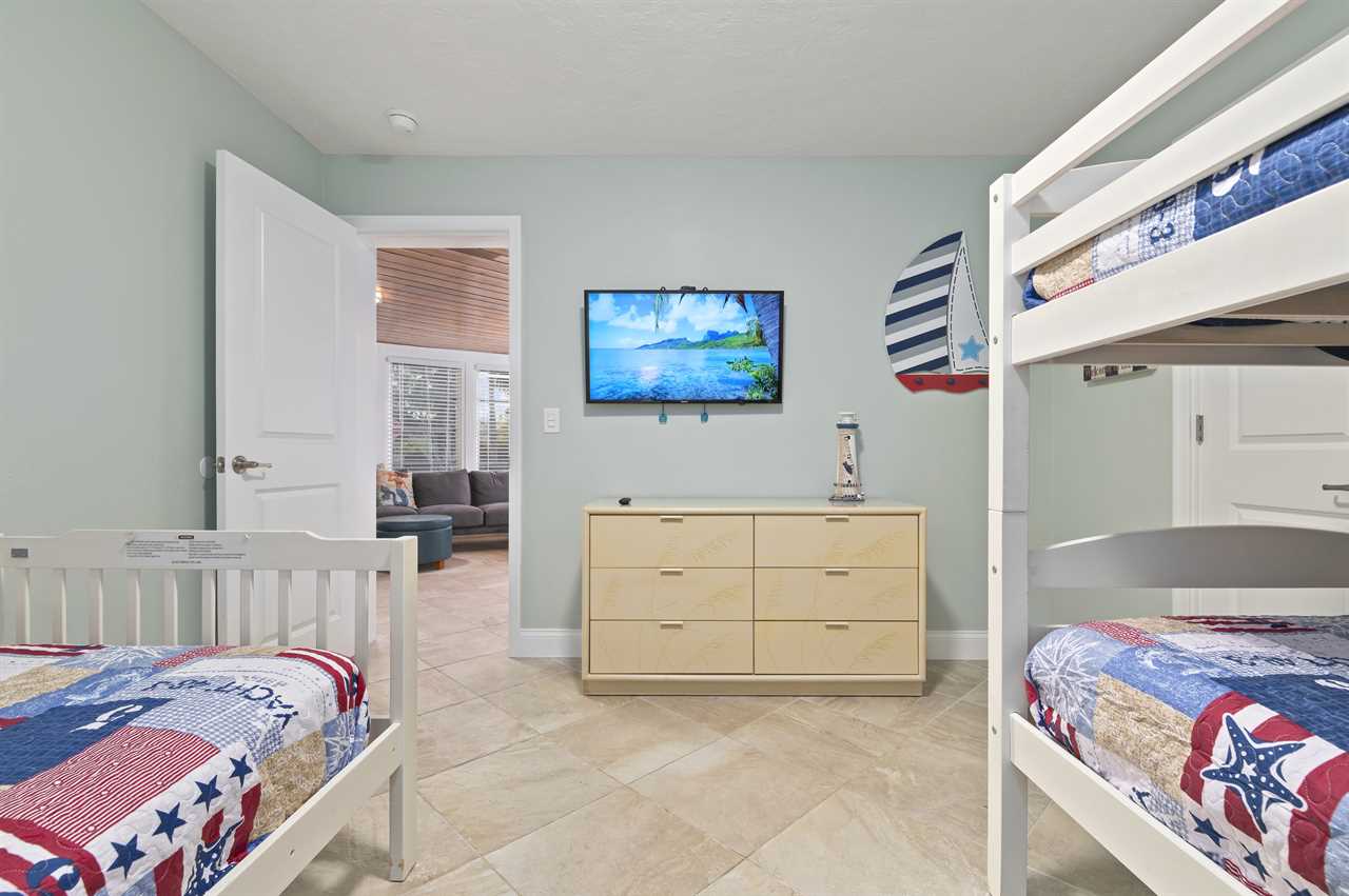 Bedroom 2 – Twin-over-Twin Bunk Bed, Twin Bed, Smart TV