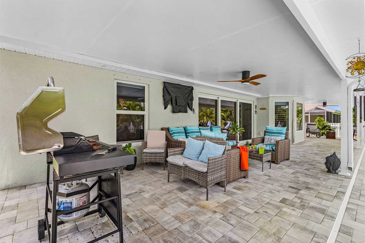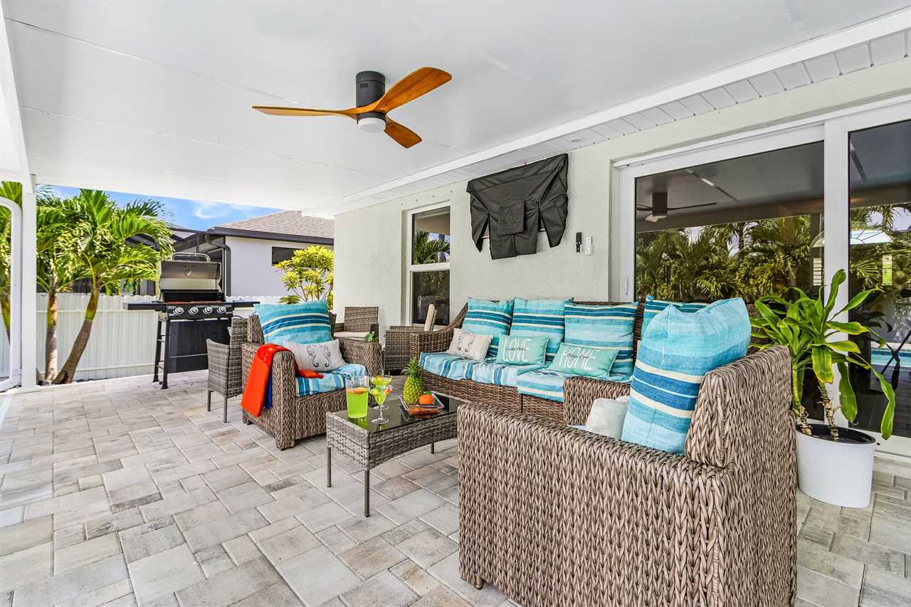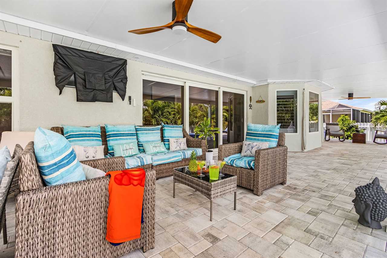 Lanai with TV: Unwind on the lanai with an outdoor TV, a perfect spot for lounging or watching shows in the open air.
