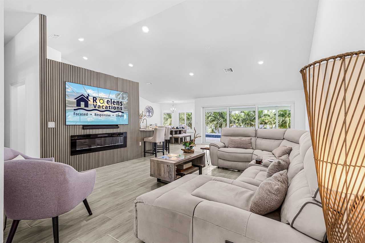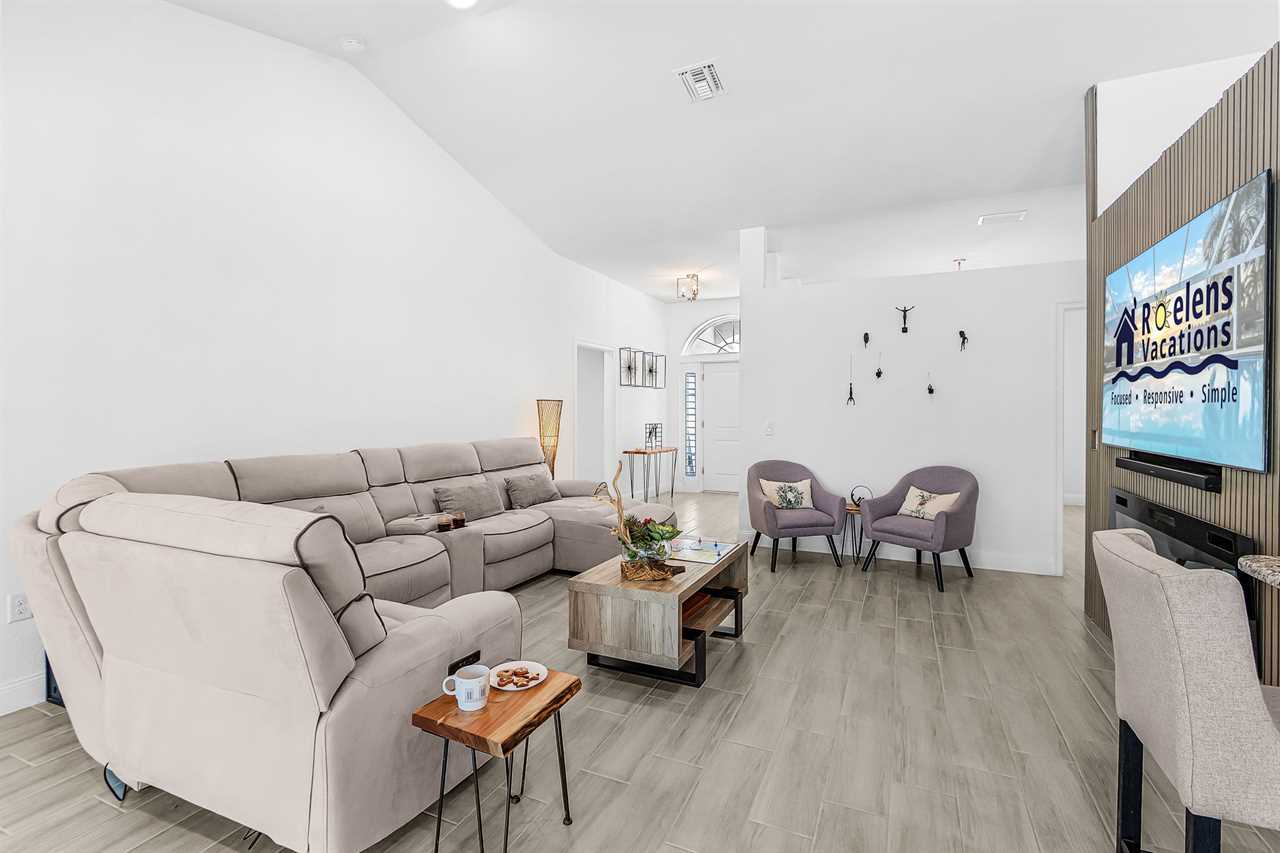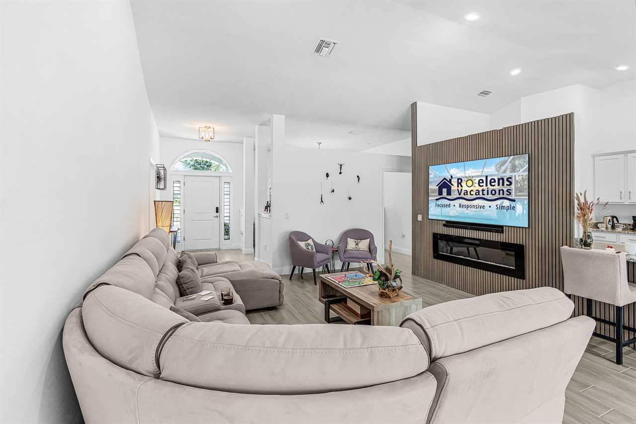 Lanai with TV: Unwind on the lanai with an outdoor TV, a perfect spot for lounging or watching shows in the open air.