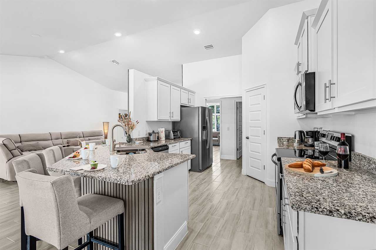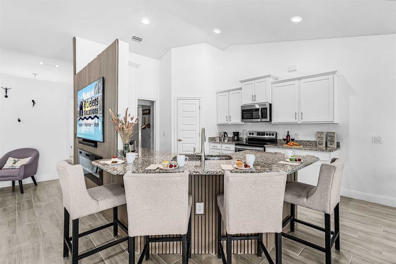 Fully Equipped Indoor Kitchen: Whip up gourmet meals in a modern kitchen, fully stocked for culinary creativity and family feasts.