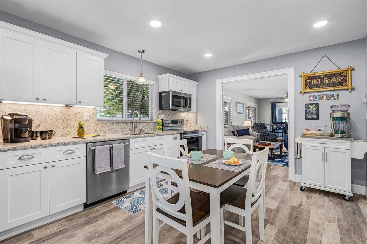 Two Fully Equipped Kitchens with Contemporary Style: Prepare your favorite dishes with ease in two sleek kitchens, each boasting modern appliances, Keurig coffee makers, white cabinetry, and stylish backsplashes. A great place to challenge your inner gourmet and gather with friends and family.