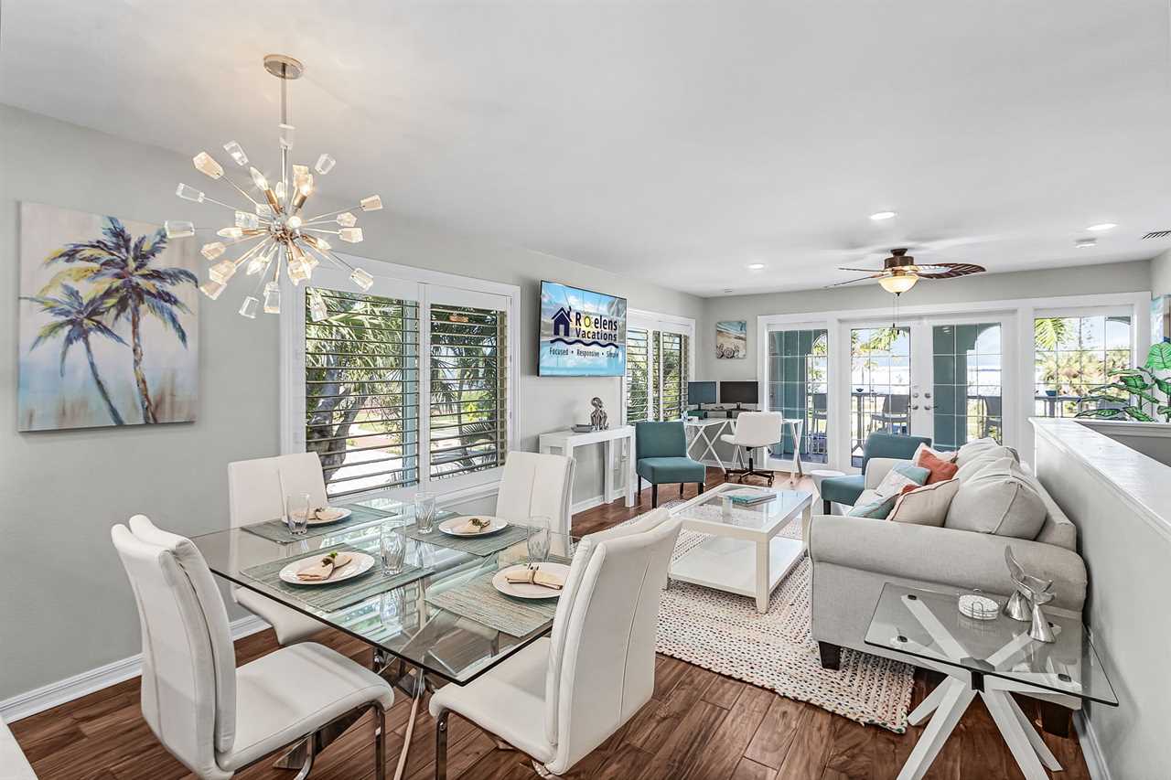 Welcome to Ponce Pointe, a perfect waterfront location at the center of 11-acre Gilchrist Park. Ideally situated just steps from the waterfront, and the Ponce De Leon Statue, the parks centerpiece. A short walk in either direction leads to the shops and waterfront dining at Fisherman's Village or to Punta Gorda's famous downtown eateries and vibrant nightlife. The home's tropical setting and luxurious heated pool area provide the perfect setting for relaxation or cooking your catch of the day. A variety of balconies and patios offer breathtaking harbor views, sunsets or just a quiet place to settle in with a good book. Featuring two levels, each with its own kitchen, laundry, outdoor space and two bedrooms, the layout is perfect for two families, couples, or larger groups seeking space and privacy. Plenty of sporting goods are provided to enjoy the park area activities, including pickleball, tennis, cornhole, children's playground, shelters and more. Fishing is allowed along the seawall so bring your gear. While indoors, you can enjoy a margarita machine, Free Wi-Fi, and 4 large screen smart TVs. For those who need to get a little work done, a harbor facing desk and dual monitors. Completely remodeled in the Fall of 2025 the homes interior boasts all new furniture, décor, bedding, kitchen items and more. Each floor has new central air conditioning and separate thermostats. A newly refinished pool and new pool heater ensure year-round comfort.