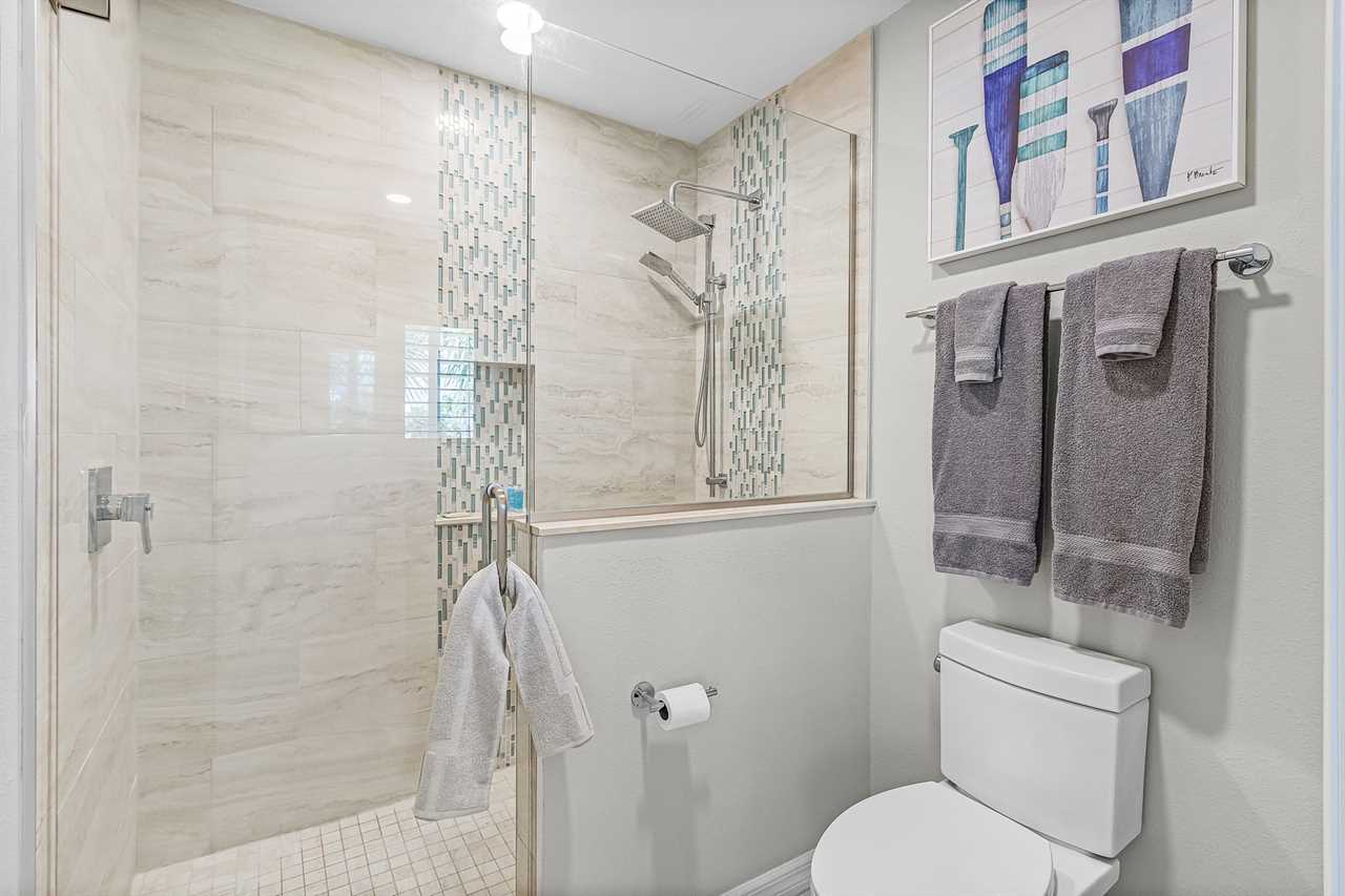 Lower Guest Bedroom: Queen-size bed, Ensuite Bathroom