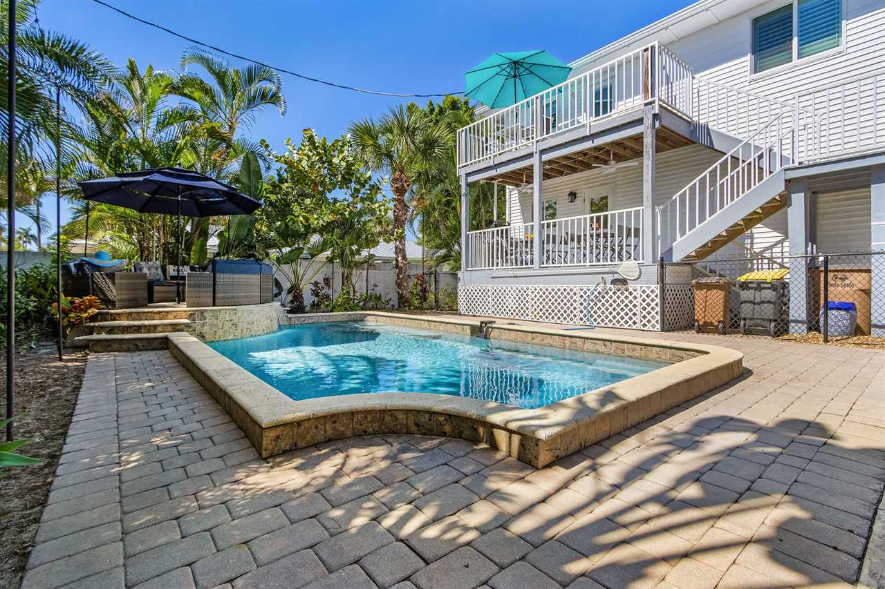 Heated Pool with Tropical Oasis Vibe: Dive into the sparkling heated pool, surrounded by lush palms and tropical landscaping, creating a private sanctuary perfect for swimming, lounging, and soaking up the Florida sunshine.