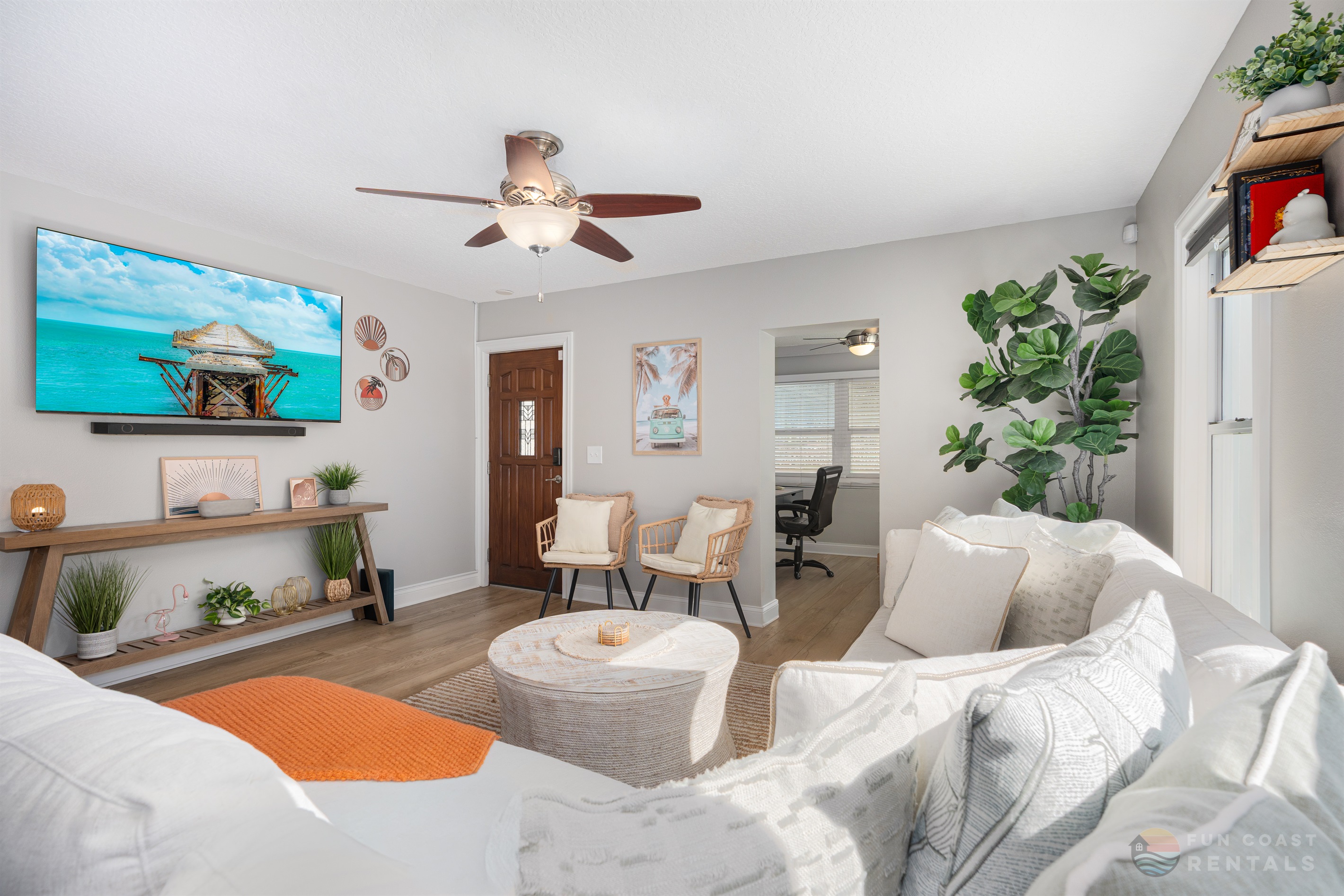 Adorable and full of charm! This beautifully appointed historic home offers the perfect blend of comfort and convenience. Ideally located near Canal Street’s trendy shops and dining and just a short walk from the nearby hospital—it’s perfect for work or play. Enjoy a dedicated home office with plenty of natural light for remote days, a fully fenced yard for your pup, and inviting spaces to unwind. Dog-friendly and thoughtfully designed for a seriously relaxing stay in NSB!